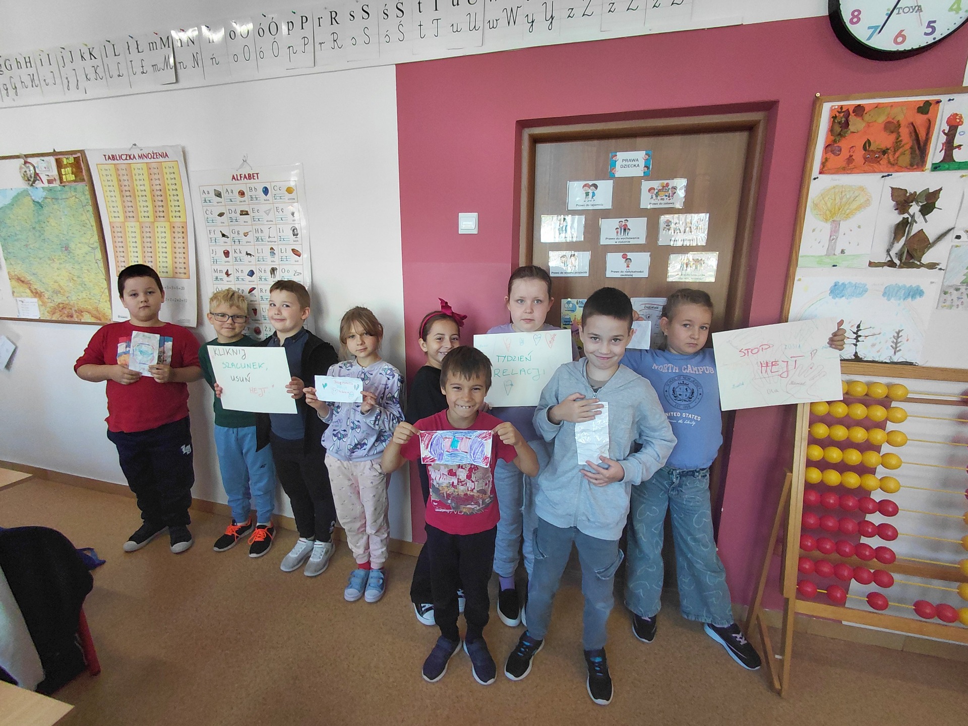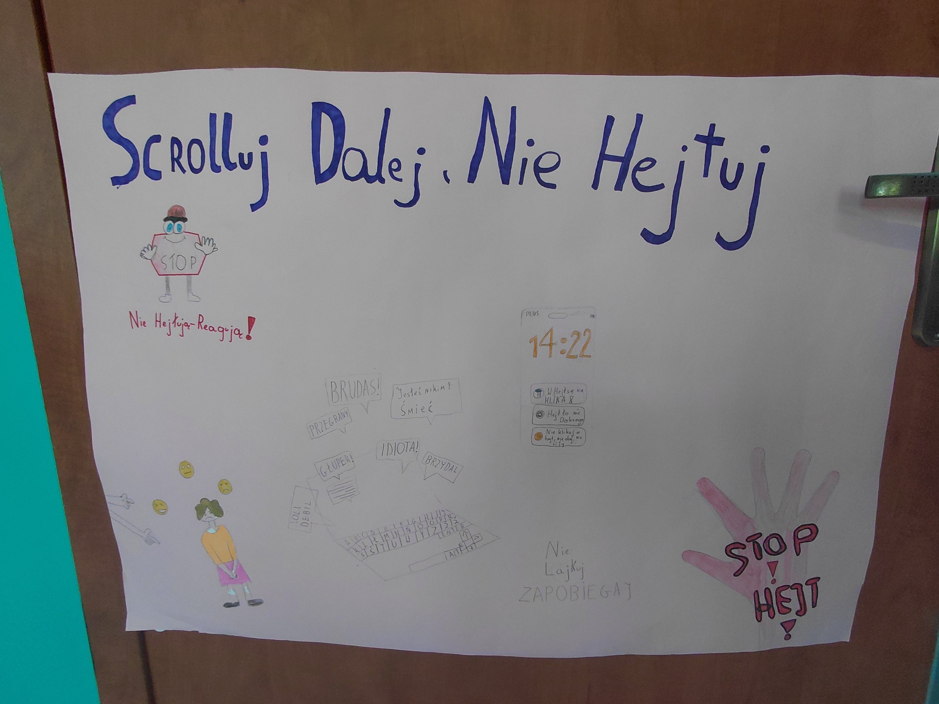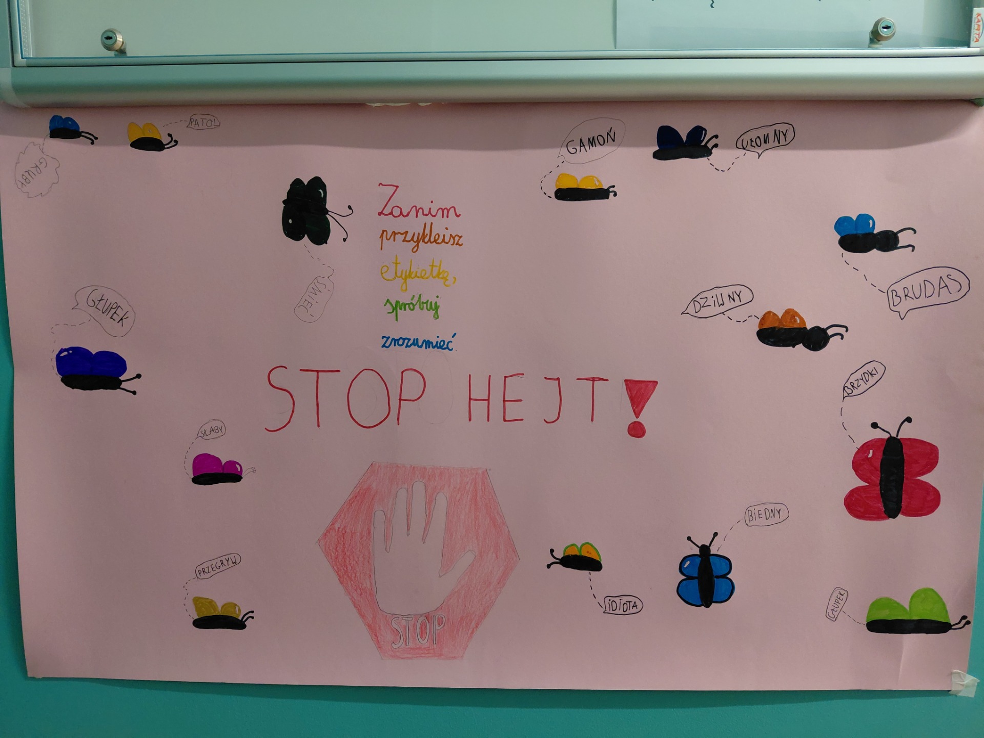 W dniach 29.09.-03.10.2025 r. w naszej szkole obchodziliśmy Tydzień Budowania Relacji oraz Tydzień Przeciwdziałania Przemocy Rówieśniczej. Celem było wzmocnienie relacji rówieśniczych, kształtowanie empatii oraz promowanie wzajemnego szacunku, odpowiedzialności za słowo oraz zachowanie w społeczności szkolnej. Obchody rozpoczęto apelem, podczas którego przypomniano, jak ważne są dobre relacje w klasie, szkole i poza nią. Uczniowie zostali zachęceni do aktywnego udziału w wydarzeniach zaplanowanych na kolejne dni. W kl. I-III p. Adriana Pietrasik i p. Olga Lipińska przeprowadziły warsztaty dotyczące budowania relacji. W kl. IV-VIII odbyły się lekcje wychowawcze na temat m.in. zdrowia psychicznego, komunikacji. Uczniowie zaangażowali się w przygotowanie plakatów poruszających temat hejtu. Powstały ciekawe prace, które zawisły na szkolnych korytarzach. Ważnym elementem obchodów była uczniowska petycja pt. „Kliknij szacunek, usuń hejt!”, której celem było popieranie walki z hejtem. Na szkolnych korytarzach pojawiły się także gazetki dotyczące m.in. radzenia sobie w trudnych sytuacjach, sposobów reagowania w sytuacji hejtowania.