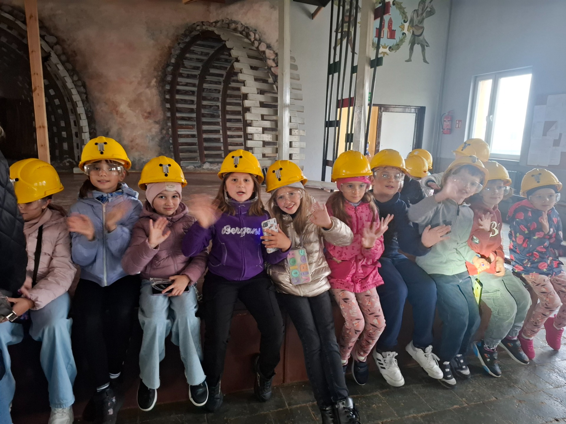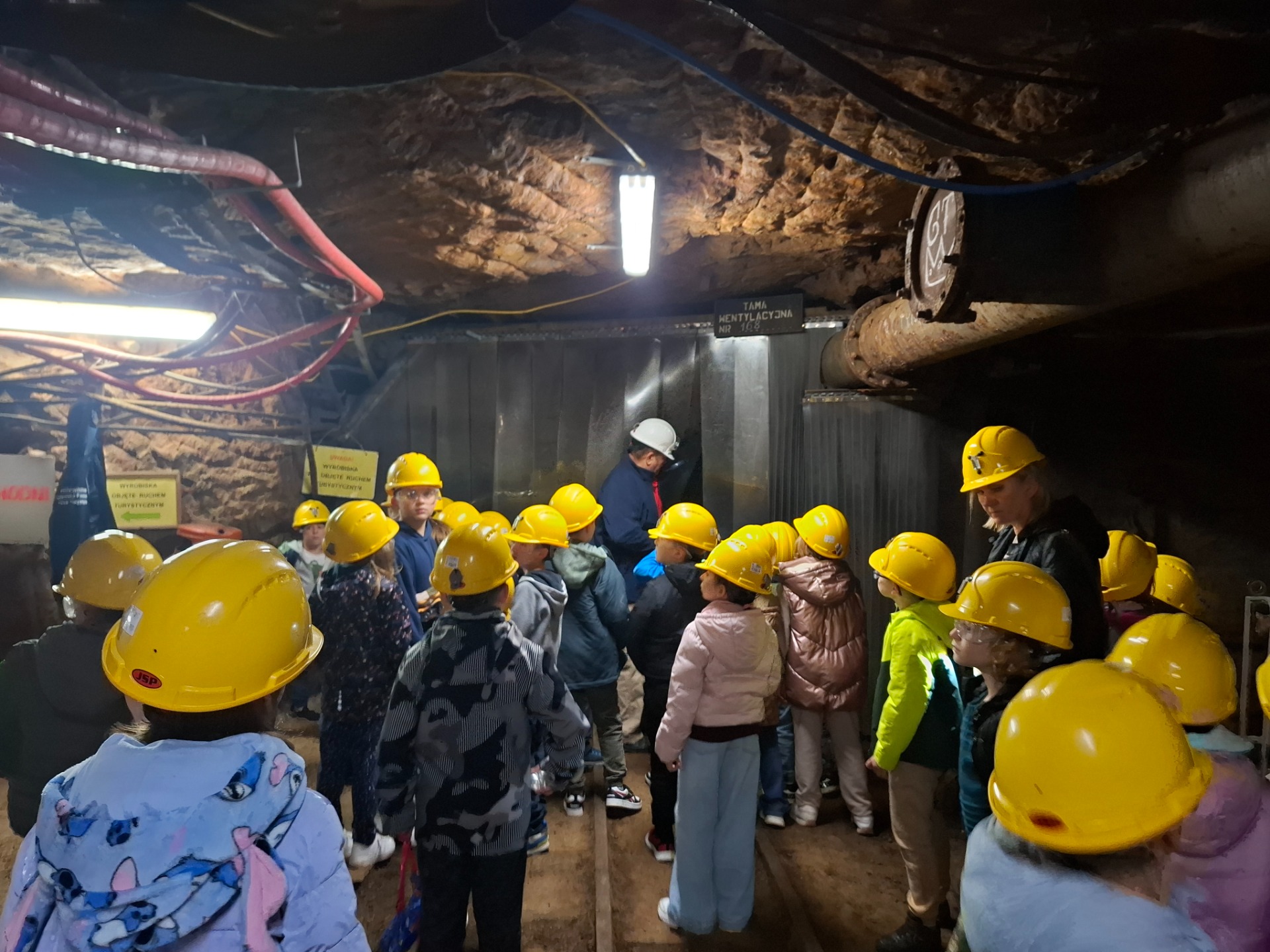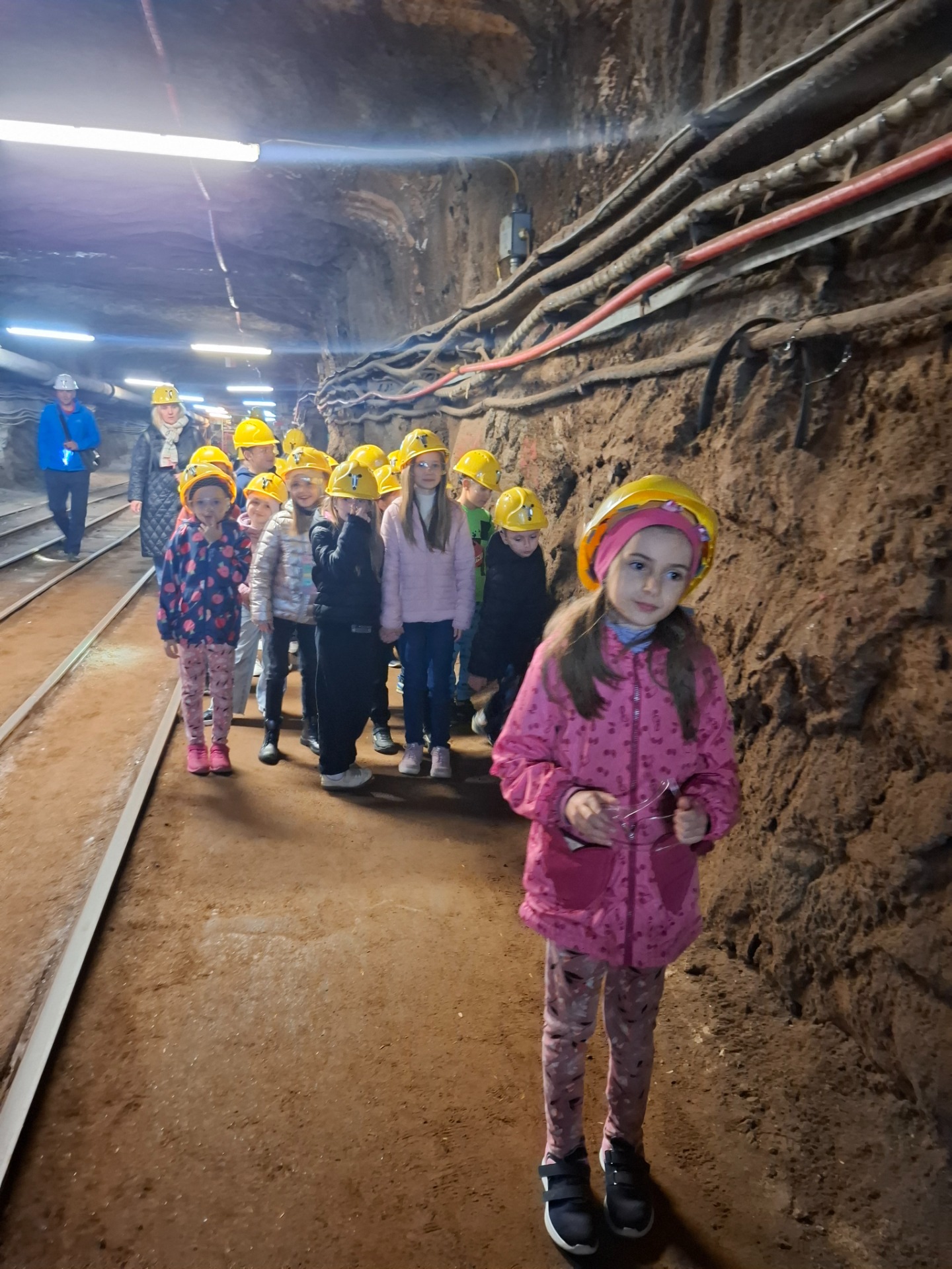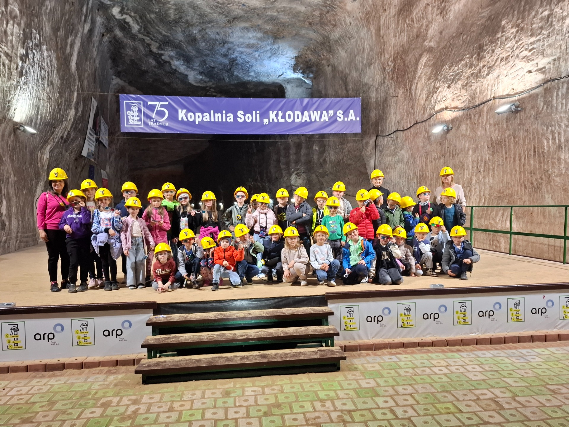 Ostatnim, a zarazem najważniejszym punktem wycieczki była Kopalnia Soli w Kłodawie, to największa i najgłębsza kopalnia soli w Polsce. To tu wydobywa się sól kamienną o barwie białej i unikalnej różowej. Wszyscy z niecierpliwością czekali na ten punkt wycieczki. W kaskach na głowie powędrowaliśmy do windy, gdzie wraz z przewodnikiem zjechaliśmy 600 m w dół. Strachu było co niemiara. Podczas fascynującej podróży odkryliśmy unikalne komory solne, majestatyczną kaplicę św. Kingi w całości wykonaną z soli. To tutaj można było poczuć klimat pracy górników i podziwiać naturalne piękno solnych podziemi. Cały spacer trasą turystyczną trwał ok 3 godzin. Na koniec każdy uczeń na pamiątkę otrzymał bryłkę soli i mógł kupić sobie w miejscowym sklepiku solne pamiątki.