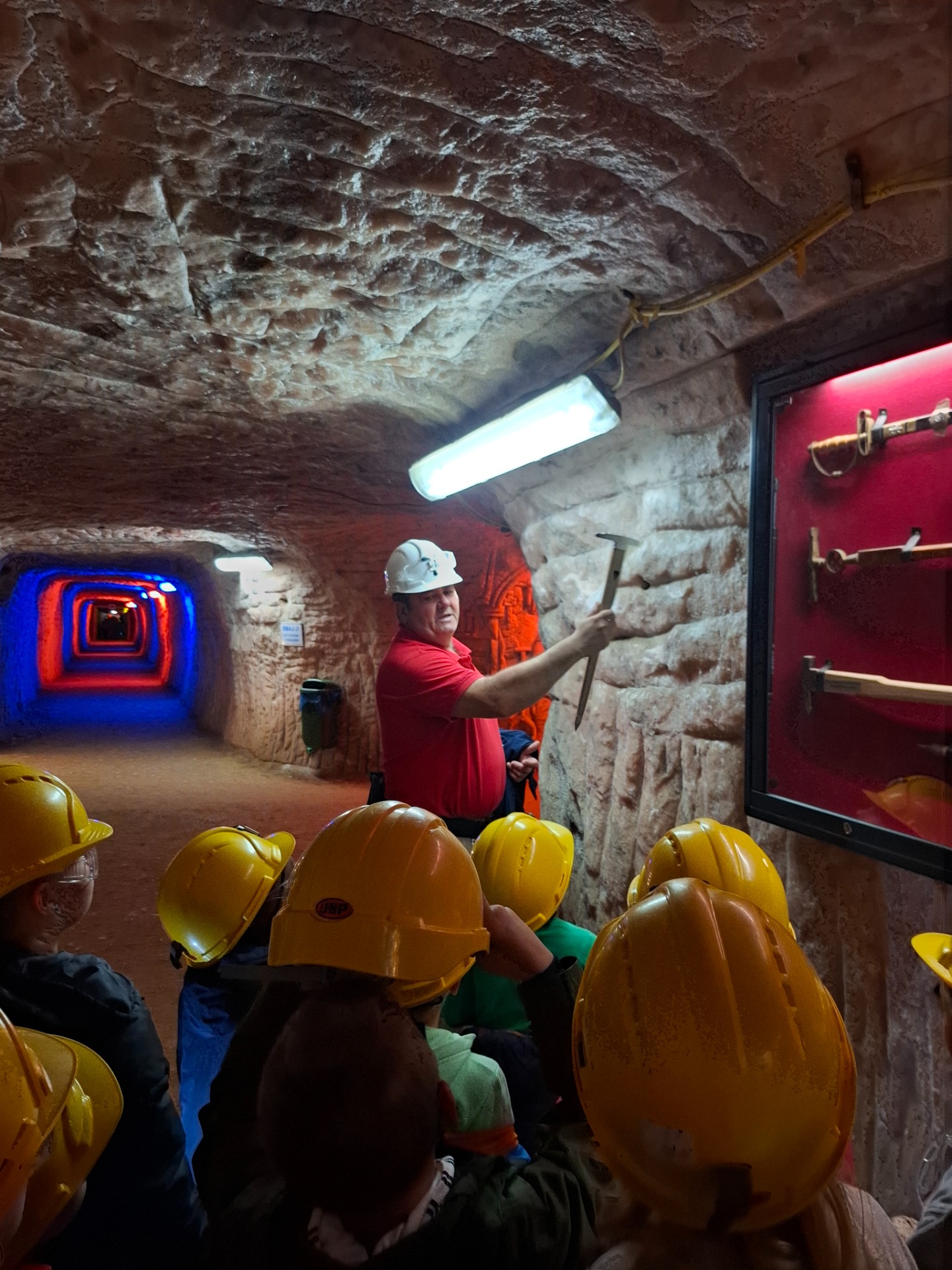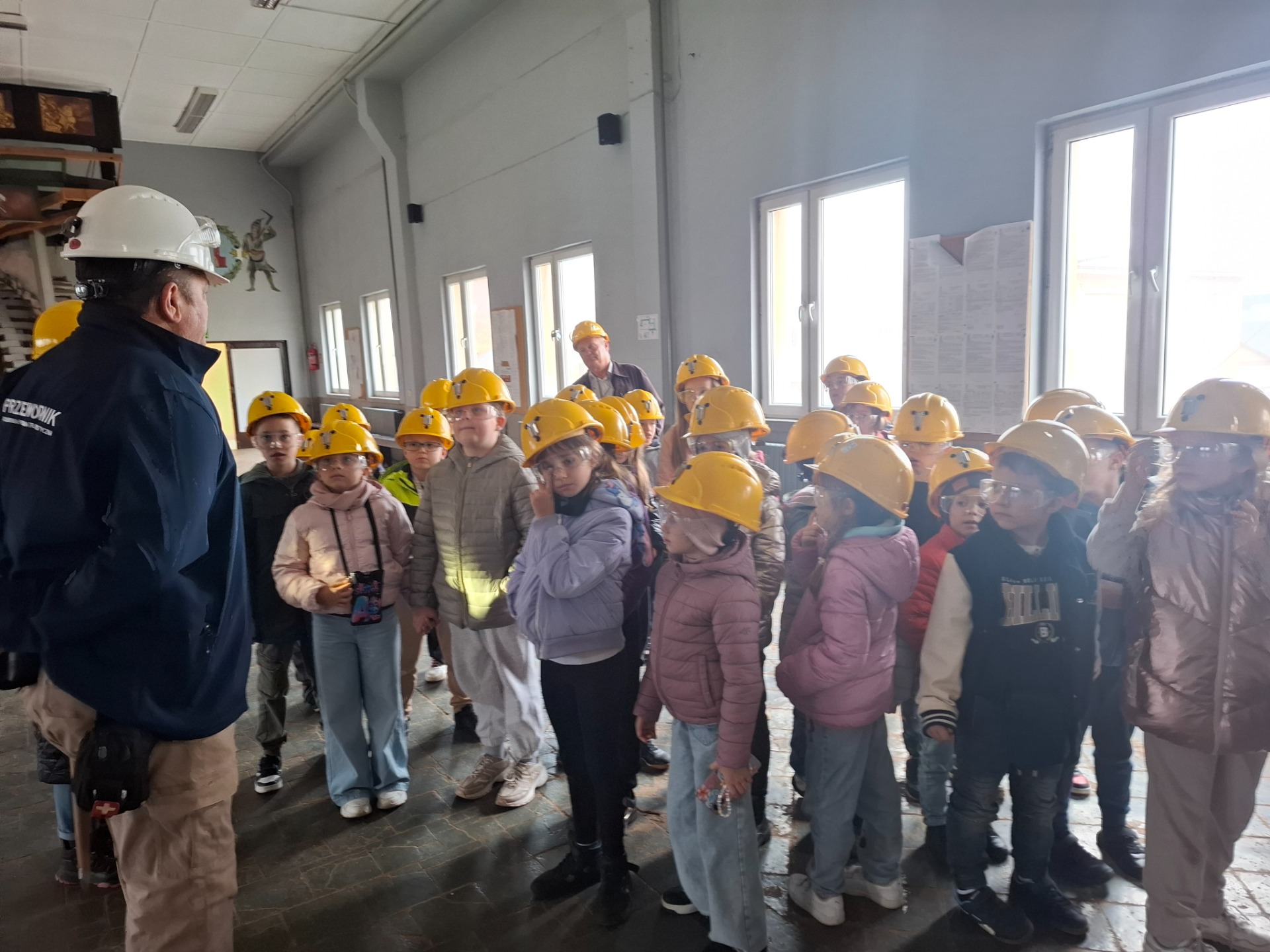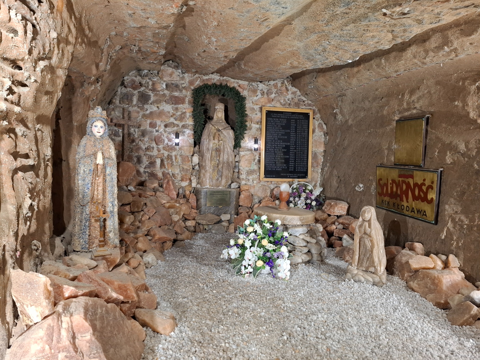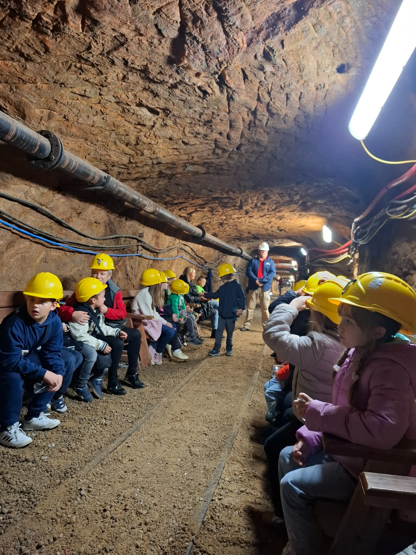 Ostatnim, a zarazem najważniejszym punktem wycieczki była Kopalnia Soli w Kłodawie, to największa i najgłębsza kopalnia soli w Polsce. To tu wydobywa się sól kamienną o barwie białej i unikalnej różowej. Wszyscy z niecierpliwością czekali na ten punkt wycieczki. W kaskach na głowie powędrowaliśmy do windy, gdzie wraz z przewodnikiem zjechaliśmy 600 m w dół. Strachu było co niemiara. Podczas fascynującej podróży odkryliśmy unikalne komory solne, majestatyczną kaplicę św. Kingi w całości wykonaną z soli. To tutaj można było poczuć klimat pracy górników i podziwiać naturalne piękno solnych podziemi. Cały spacer trasą turystyczną trwał ok 3 godzin. Na koniec każdy uczeń na pamiątkę otrzymał bryłkę soli i mógł kupić sobie w miejscowym sklepiku solne pamiątki.