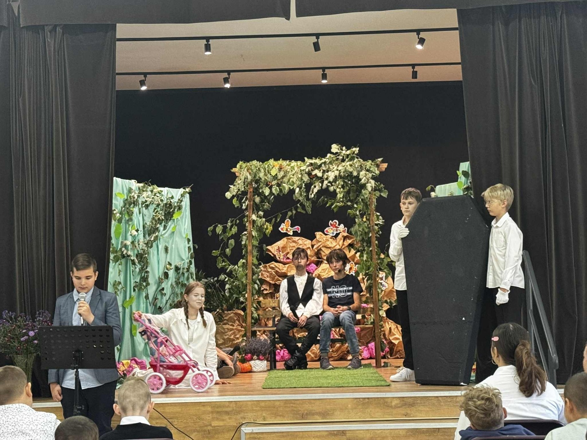 Przedstawieniu towarzyszyły również fragmenty dzieł poety – uczniowie z zaangażowaniem odczytali wybrane Fraszki, Treny i Pieśni, dzięki czemu widzowie mogli lepiej poznać treść utworów.