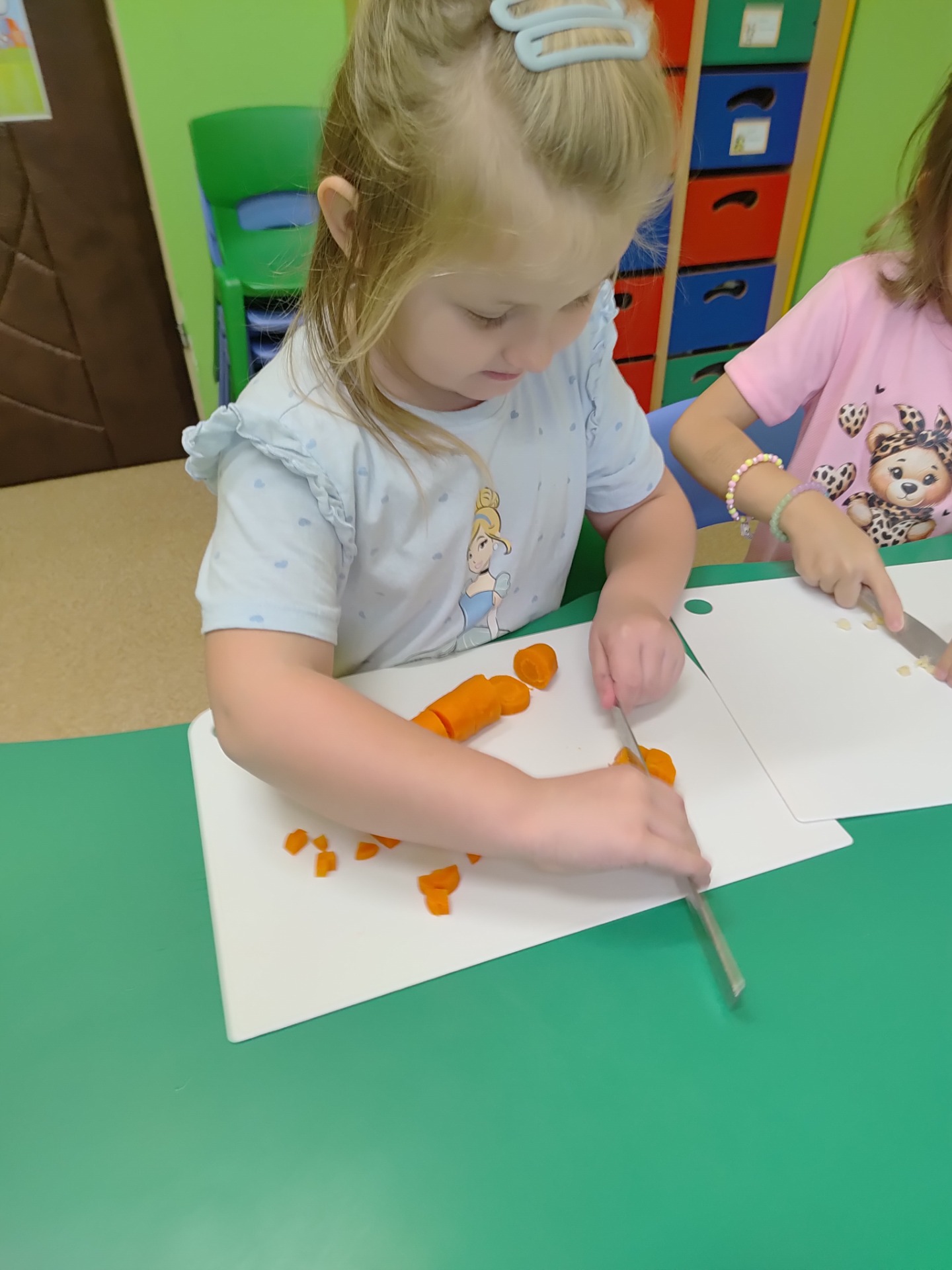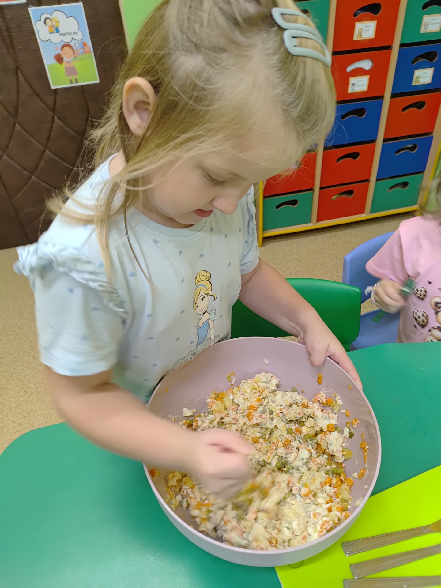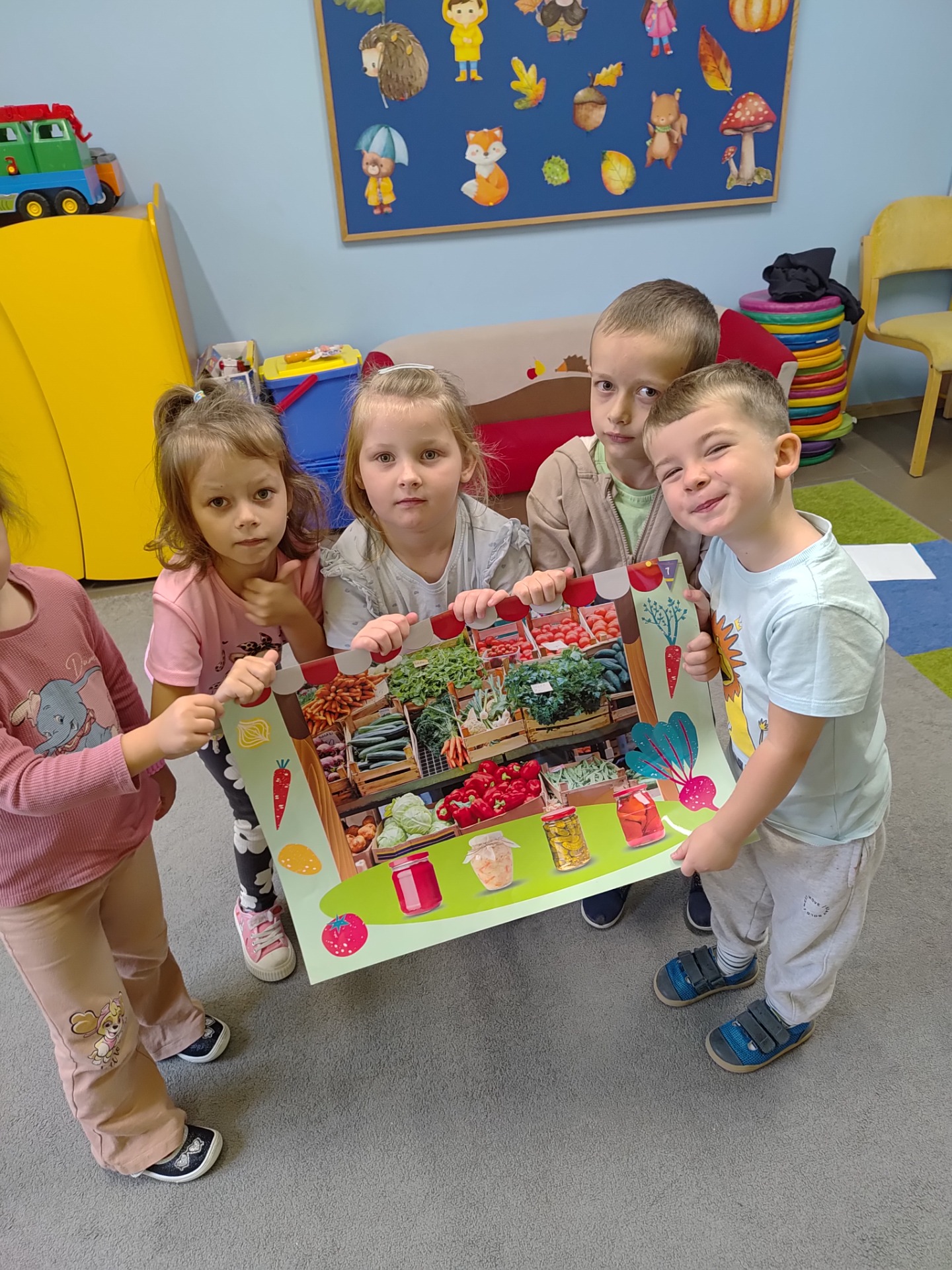 17 października obchodzony jest Światowy Dzień Owoców i Warzyw. To święto, którego głównym celem jest przypomnienie o tym, jak istotnym elementem diety są warzywa i owoce bogate w minerały, witaminy i błonnik. W nawiązaniu do tegoż święta w oddziale przedszkolnym zostały przeprowadzone zajęcia promujące zdrowe nawyki żywieniowe, które należy kształtować już od najmłodszych lat. Dzieci zostały zapoznane talerzem oraz piramidą zdrowego odżywiania. Aktywnie uczestniczyły w zabawach związanych z rozmaitymi warzywami i owocami. Przedszkolaki porównywały wygląd, kolory, smaki i kształty wybranych owoców i warzyw. Wspomniane święto było okazją do przygotowania zdrowej sałatki warzywnej. Dzieci z ogromnym zaangażowanie kroiły warzywa, dodawały i mieszały potrzebne składniki. Na koniec oczywiście odbyła się degustacja. Było smacznie, kolorowo i witaminowo. Od dzisiaj każdy przedszkolak wie co powinien jeść, aby być silnym i zdrowym!