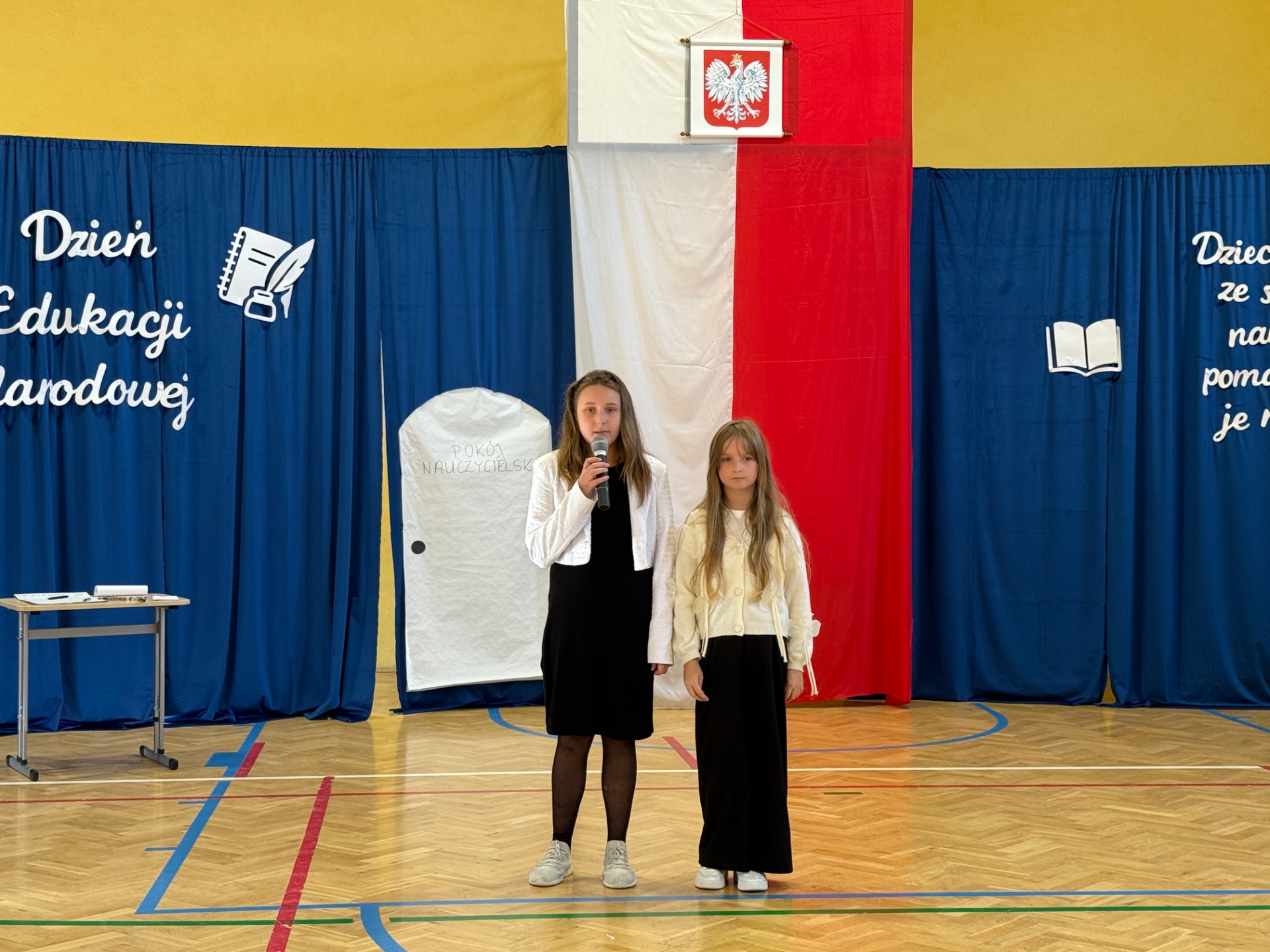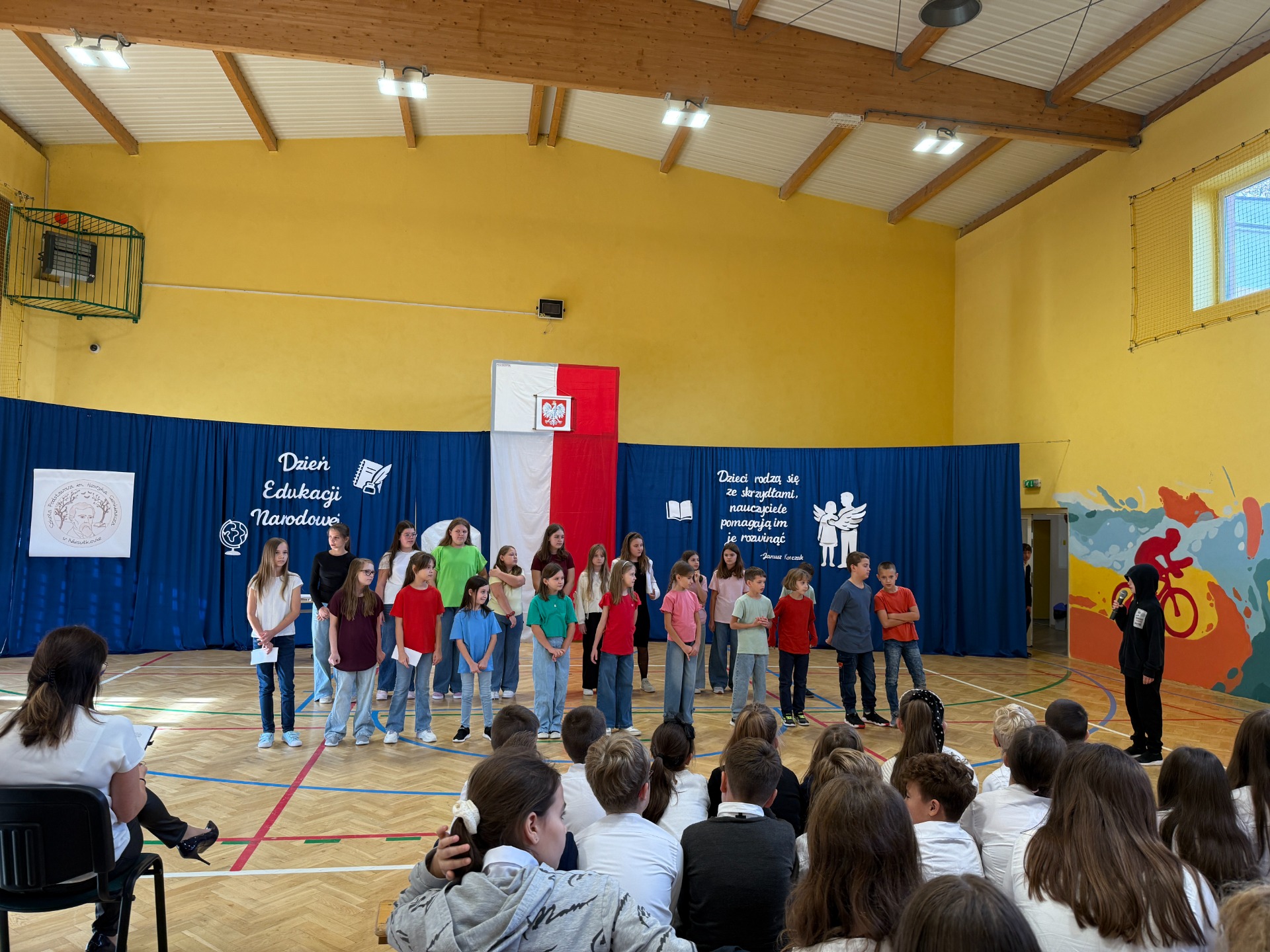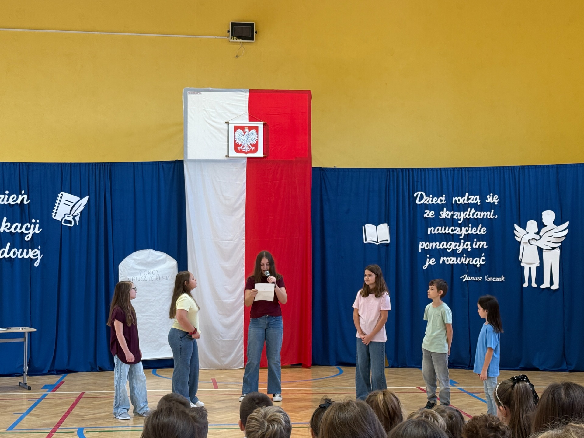 W poniedziałek 13 października w naszej szkole odbyła się uroczystość z okazji Dnia Edukacji Narodowej. Wydarzenie rozpoczął występ artystyczny uczniów, którzy w piękny i wzruszający sposób wyrazili swoją wdzięczność nauczycielom za codzienny trud, cierpliwość i serce wkładane w nauczanie. W programie znalazły się piosenki, przedstawienie, tańce oraz podziękowania dla wszystkich pracowników szkoły, które wywołały uśmiech na twarzach wszystkich obecnych. Pani Dyrektor serdecznie podziękowała całemu Gronu Pedagogicznemu oraz pozostałym pracownikom szkoły za zaangażowanie, pasję i oddanie uczniom. W uznaniu szczególnych osiągnięć zawodowych wręczyła także nagrody dla tych osób, które w mijającym roku szkolnym wyróżniły się wyjątkową pracą i inicjatywami na rzecz szkoły.