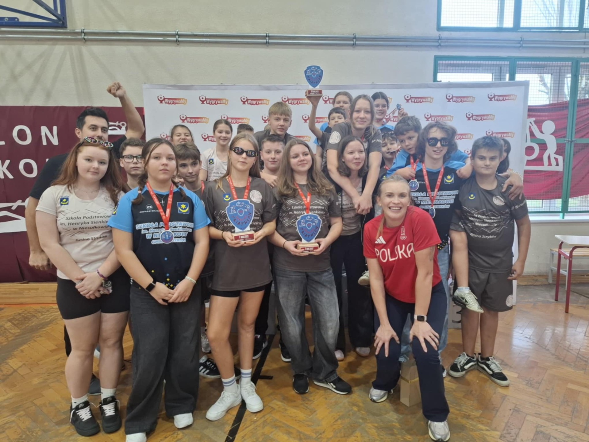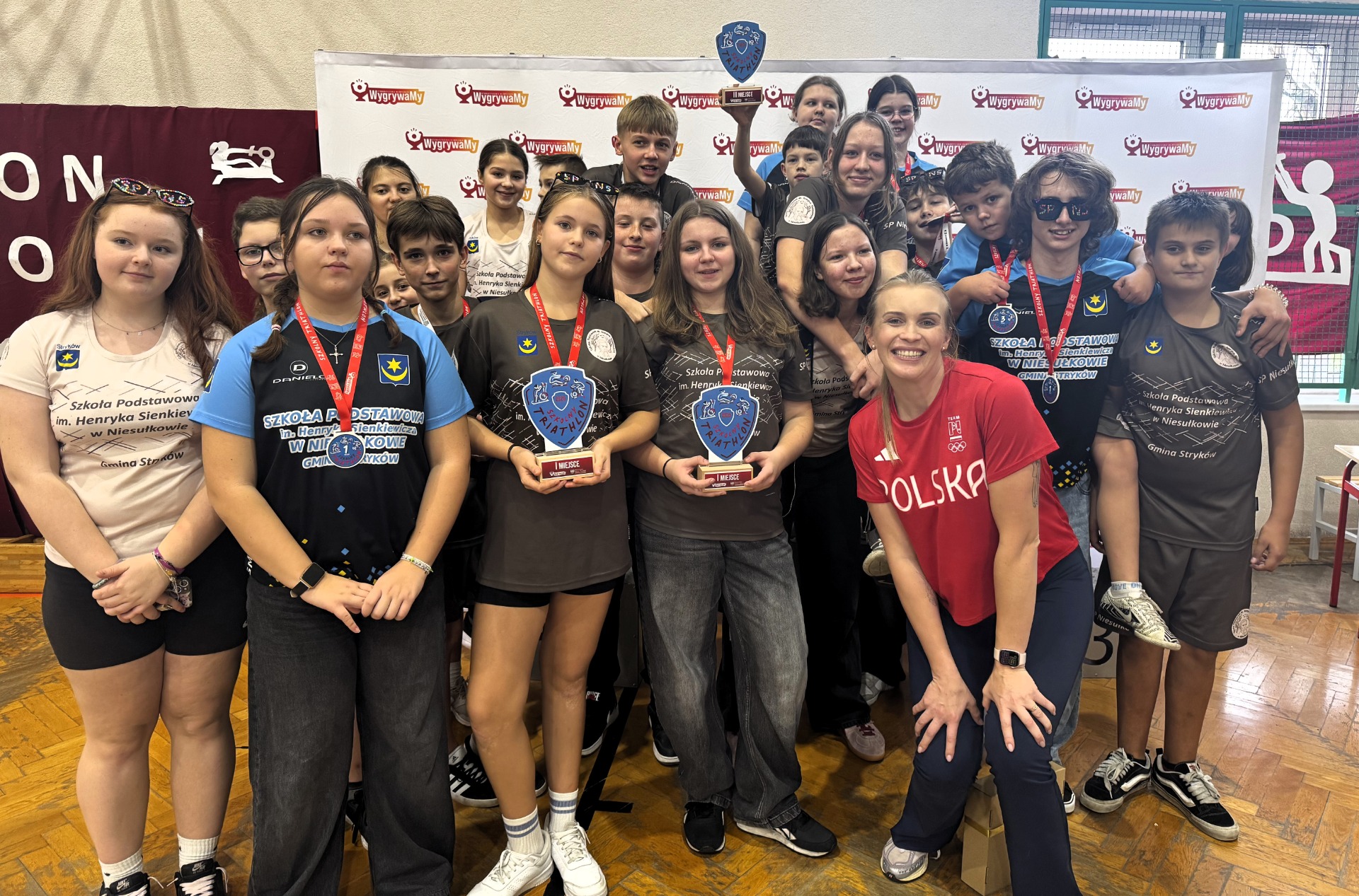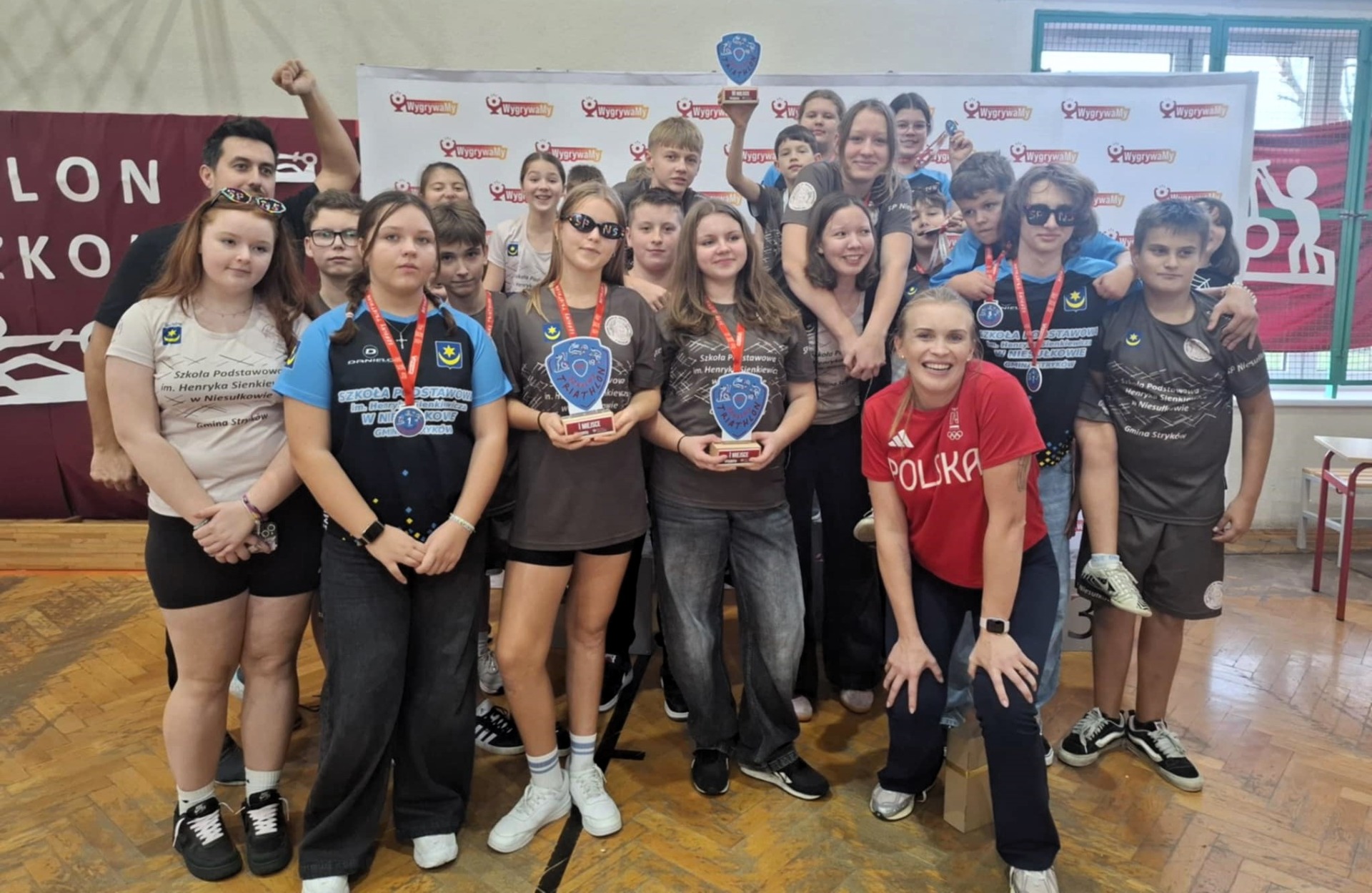 Złote medale wywalczyli: Platon Torianyk, Amelia Lipińska, Marcin Wolanowski, Nadia Sicińska (kl. VIII), Stanisław Kubicki, Katarzyna Wiśniewska, Mateusz Mikołajczuk, Kinga Kowalska (kl. VI), a brąz: Michalina Fijałkowska, Piotr Kłobuszewski, Zofia Kubicka i Franciszek Karliński (kl. V). Ponadto SP Niesułków reprezentowali: Mateusz Anders, Marcelina Darnowska, Stanisław Dobiński, Alan Fiutowski, Nikta Medkov, Anna Tomczak, Julia Trębińska, Marta Wiśniewska, Miłosz Gładys, Kacper Sasin, Julia Szczepaniak, Barbara Kaplińska, Małgorzata Szczepaniak i Szymon Szychowski. Opiekę nad uczniami sprawowali nauczyciele Małgorzata Prusinowska i Wojciech Pożarlik. Nagrodzeni na podium otrzymali pamiątkowe medale, a wszyscy uczestnicy słodki poczęstunek. W 2025 roku czeka nas jeszcze jedno wydarzenie organizowane przez Stowarzyszenie Olimpijskie WygryaMy. Finał Ogólnopolski Wioślarskiej Ligi Mistrzów, który odbędzie się w piątek, 21 listopada na stadionie Legii Warszawa.