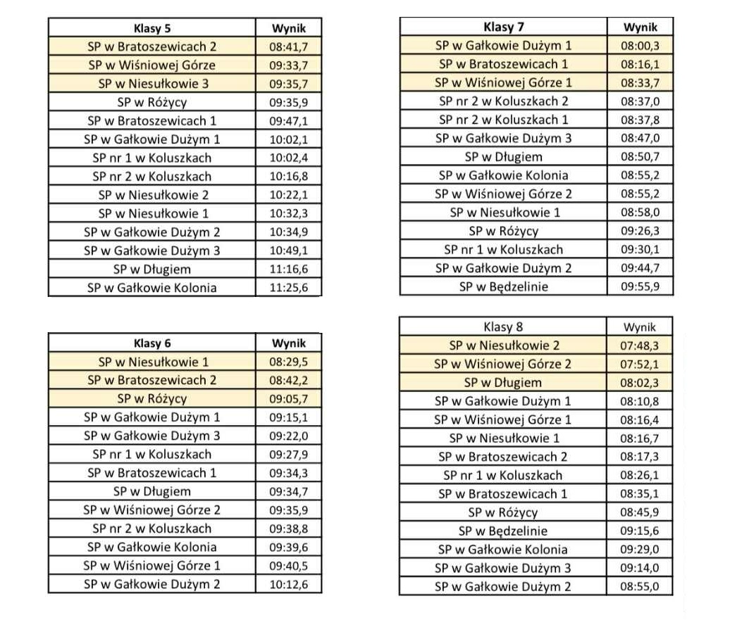 Mimo mocnej obsady pokazaliśmy się ze świetnej strony, co docenili zarówno gospodarze goszczący imprezę, jak i główni organizatorzy w osobach medalistki olimpijskiej i wielokrotnego medalisty międzynarodowych imprez. Nasze sztafety wywalczyły łącznie 3 trofea: 1. miejsce w kategorii klas VIII i najlepszy wynik całej imprezy ze wszystkich sztafet 7 min. 48 sekund, 1. miejsce w kategorii klas VI oraz 3. miejsce w kategorii klas V-tych. Ponadto pozostałe sztafety plasowały się w ścisłej czołówce swoich kategorii, w których startowało po 13-14 szkolnych ekip.