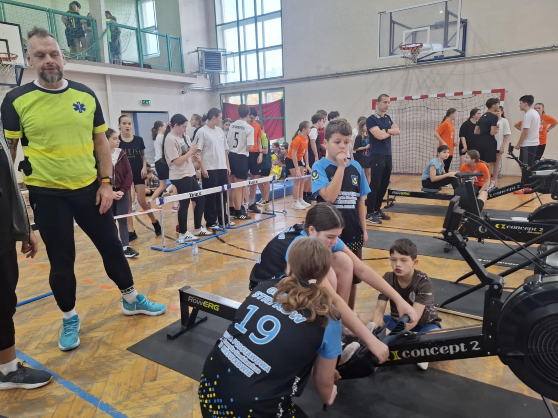Impreza rozegrana była w Szkole Podstawowej w Gałkówku Dużym, która gościła rekordową liczbę ponad 200 uczestników z 10 szkół, łącznie aż 55 sztafet z: SP Gałkówek Duży, SP Gałkówek Kolonia, SP nr 1 Koluszki, SP nr 2 Koluszki, SP Długie, SP Wiśniowa Góra, SP Będzelin, SP Różyca, SP Bratoszewice i my, SP Niesułków. Każda szkoła wystawiła do rywalizacji 4-osobowe sztafety w klasach od V do VIII. Każdy z uczestników miał do pokonania kolejno 200 m na ergometrze wioślarskim, 200 m jazdy na rowerze stacjonarnym oraz 200 m na ergometrze narciarskim. Oprócz wszechstronnych umiejętności ruchowych i kondycji fizycznej liczyła się też technika zmiany, oraz, a może przede wszystkim odporność psychiczna na stres i działanie pod presją. Tutaj kluczowe było też wsparcie i doping kolegów i koleżanek ze szkoły, oczekujących na swój start.