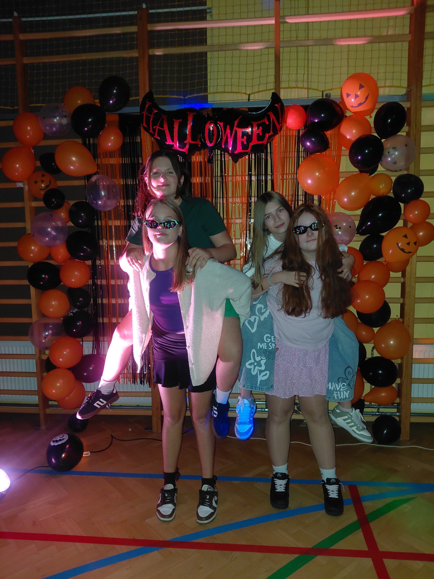 31 października w godzinach popołudniowych szkołę opanowały postacie z bajek, duszki, czarownice i kowboje. To mogło tylko oznaczać, że odbyła się jesienna dyskoteka dla uczniów klas IV – VIII. Siódmoklasiści, jako organizatorzy imprezy, dołożyli wszelkich starań, aby zabawa była udana. Dekoracje zrobiły odpowiedni klimat, a konkursy urozmaiciły czas wspólnych pląsów. Rodzice klasy VII zadbali o bufet, co pomogło uczniom zregenerować siły. Dziękujemy bardzo p. B. Bigos, p. A. Szczepaniak oraz p. R. Olczykowi za pomoc w obsłudze naszych łakomczuchów, a także opiekunom i uczniom za wspaniałą zabawę. Czekamy już
