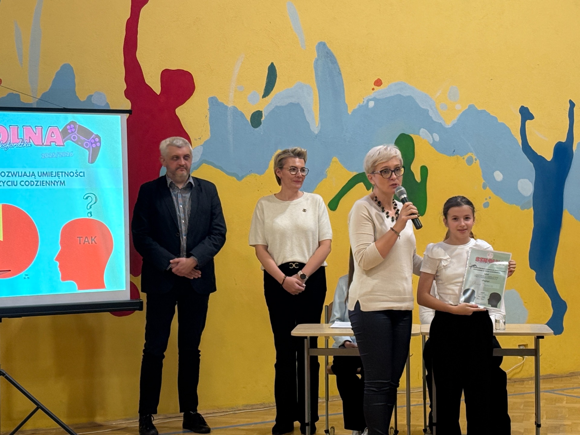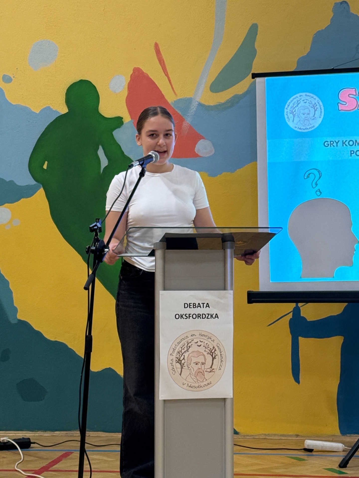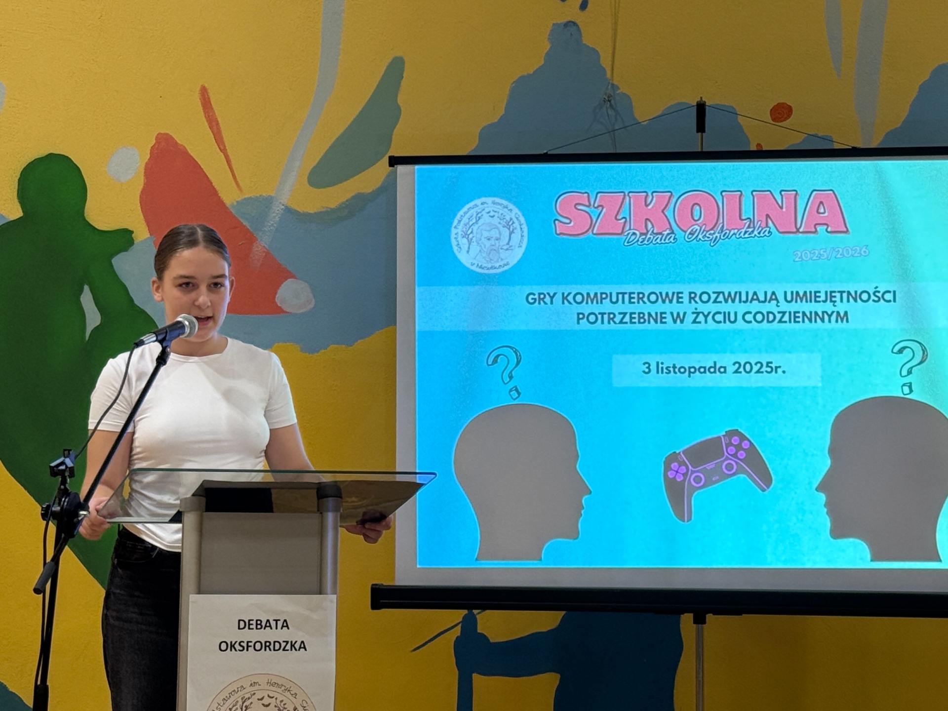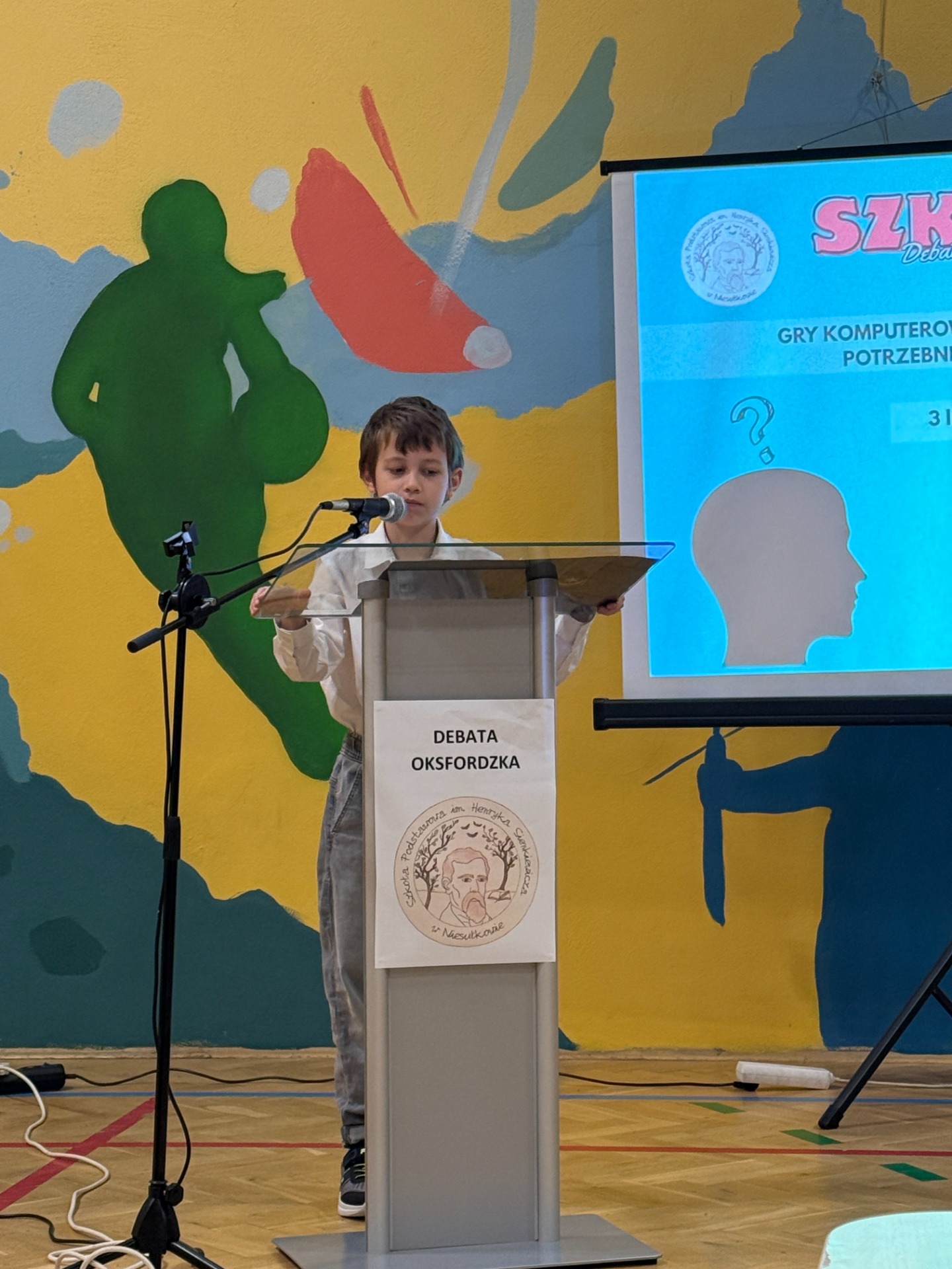 Dziś klasa piąta zamieniła się w prawdziwych mówców i uczestniczyła w pierwszej w tym roku szkolnym debacie oksfordzkiej. Temat, który rozpalił dyskusję brzmiał: „Gry komputerowe rozwijają umiejętności potrzebne w życiu codziennym.” Nie będziemy ukrywać – na początku był stres! Serce biło jak szalone, gdy trzeba było stanąć przed całą szkołą i mówić do mikrofonu. Ale z każdą minutą było coraz lepiej, a kiedy zaczęliśmy przedstawiać nasze argumenty, stres zamienił się w prawdziwe emocje i dumę.