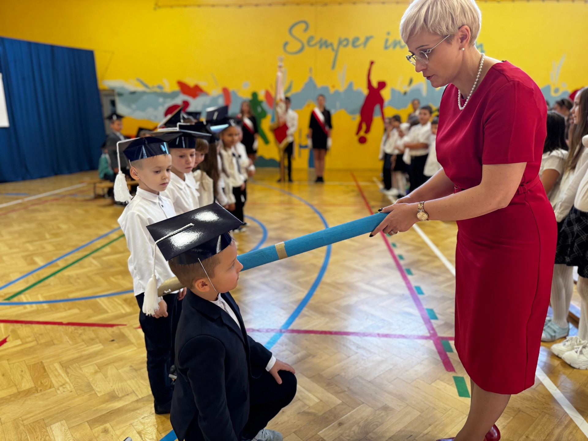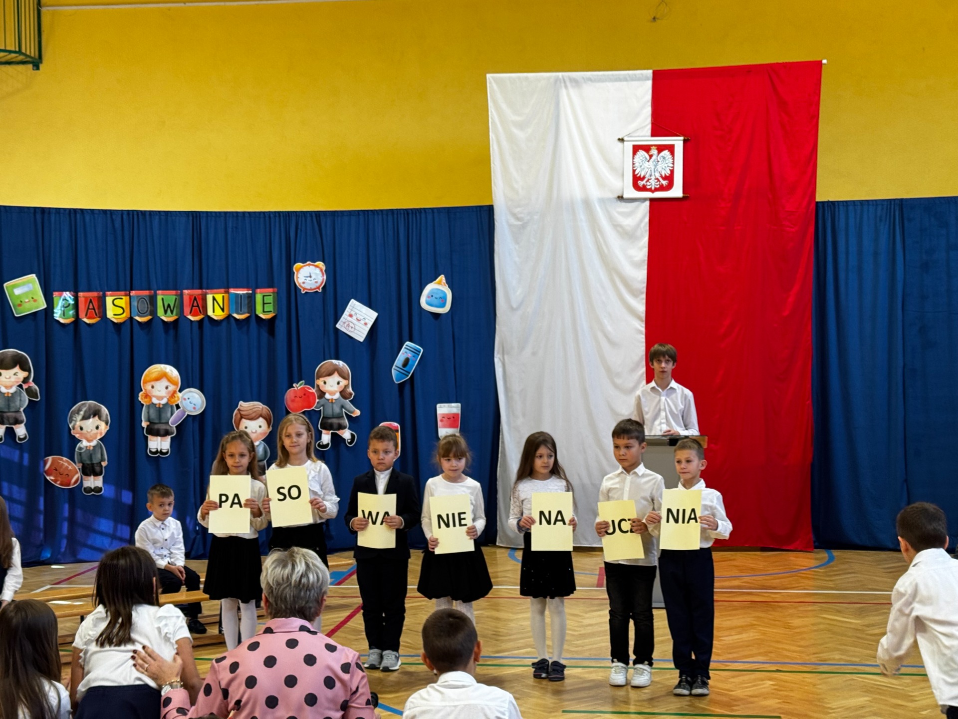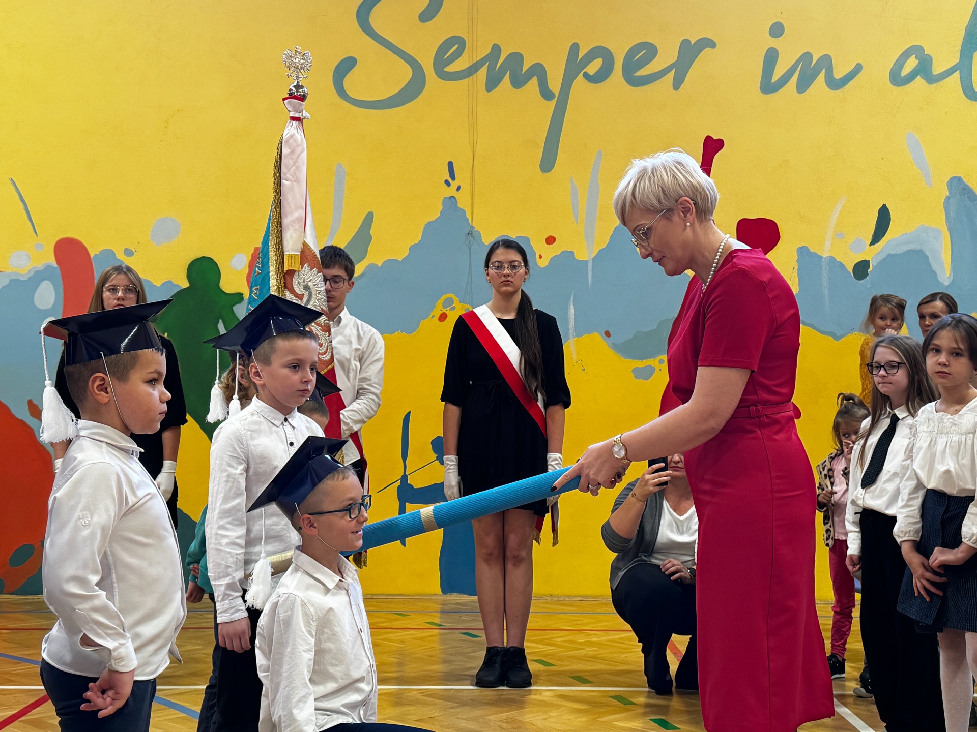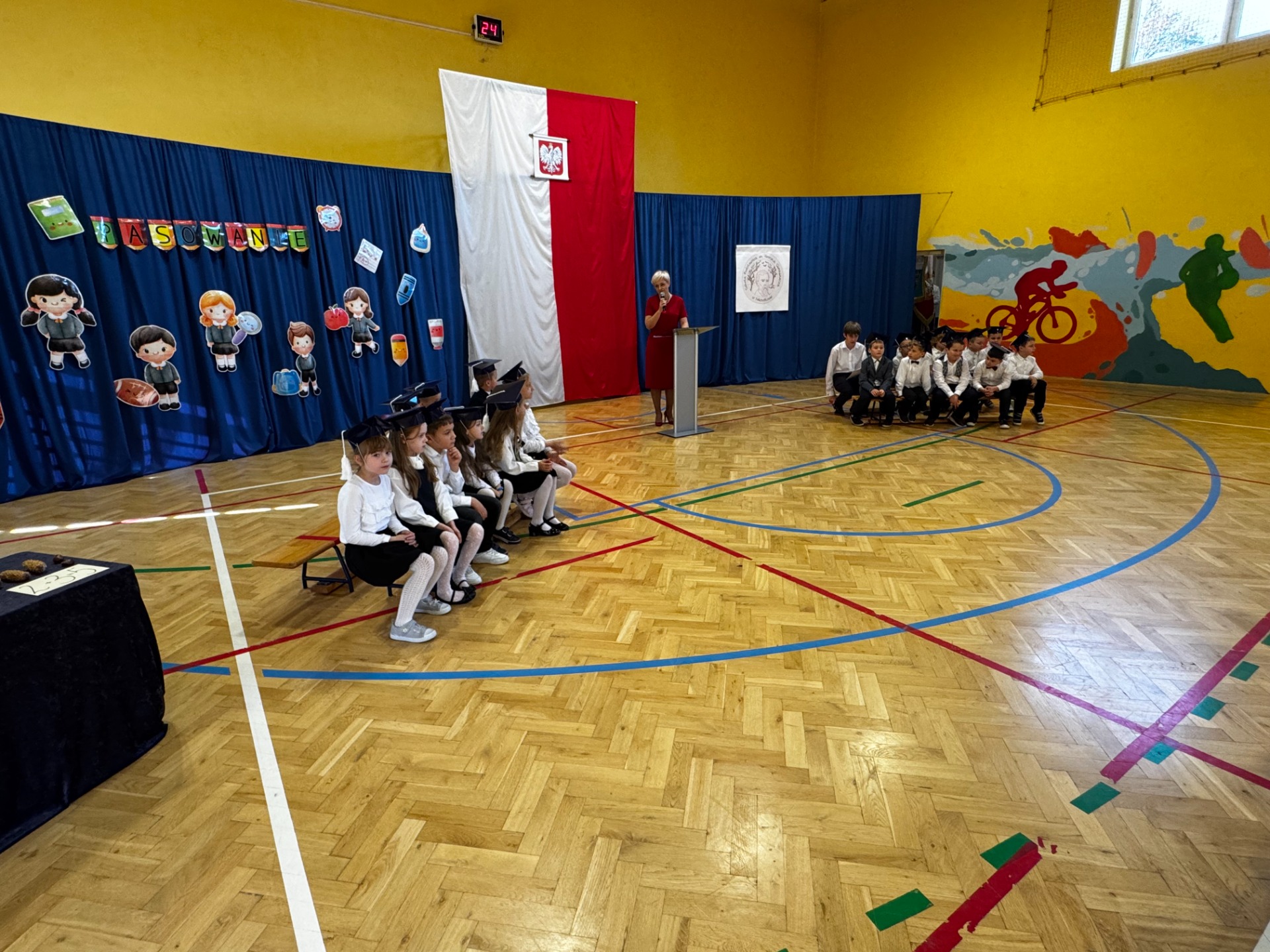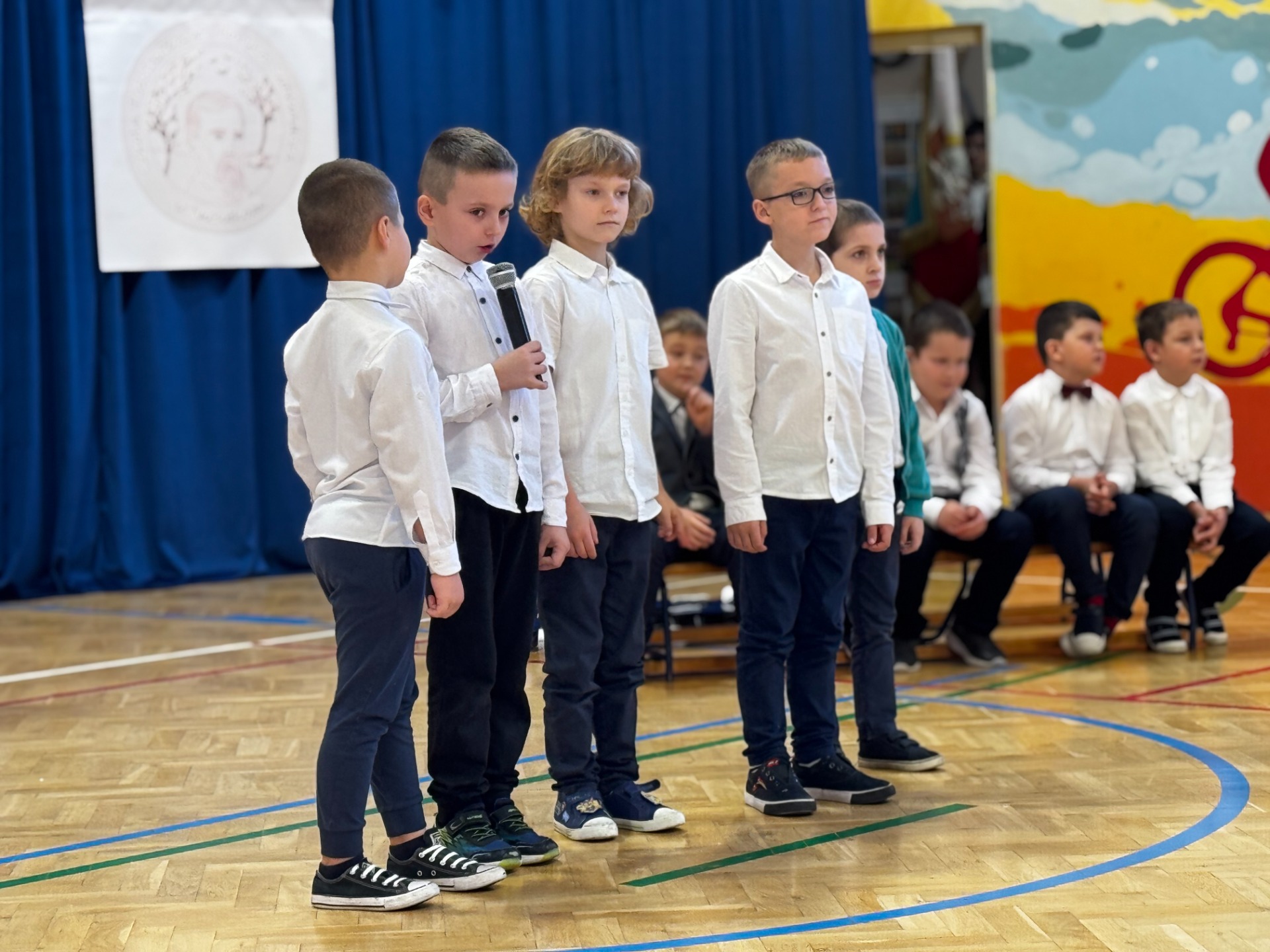 Uroczystość rozpoczęła się częścią artystyczną przygotowaną przez uczniów klasy pierwszej. Pierwszoklasiści zaprezentowali wiersze, piosenki i krótkie scenki, w których pokazali, że są już gotowi, by wstąpić w szeregi szkolnej społeczności.