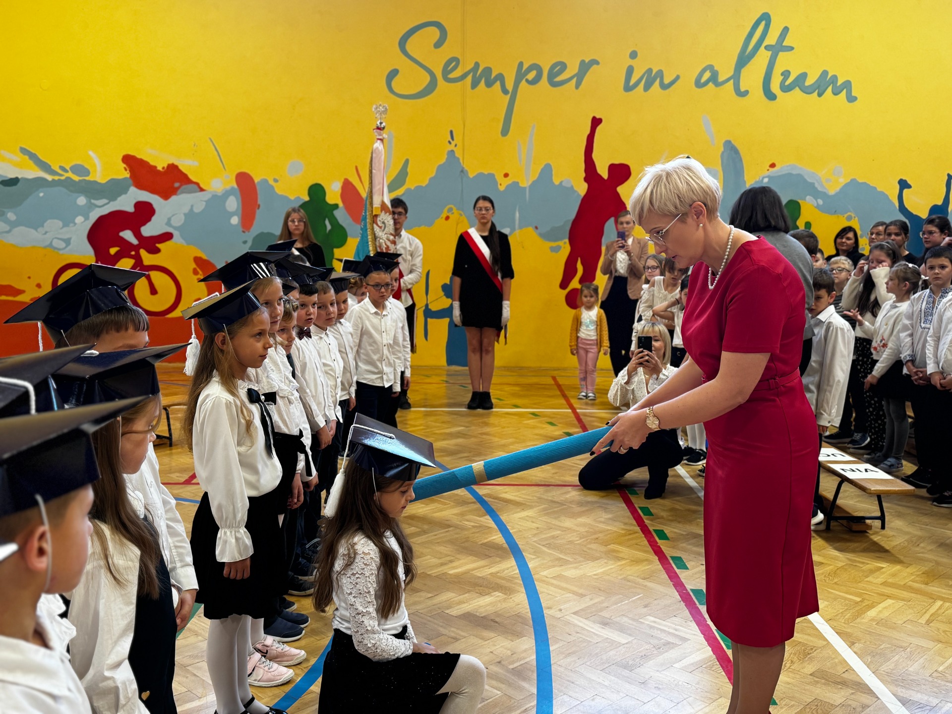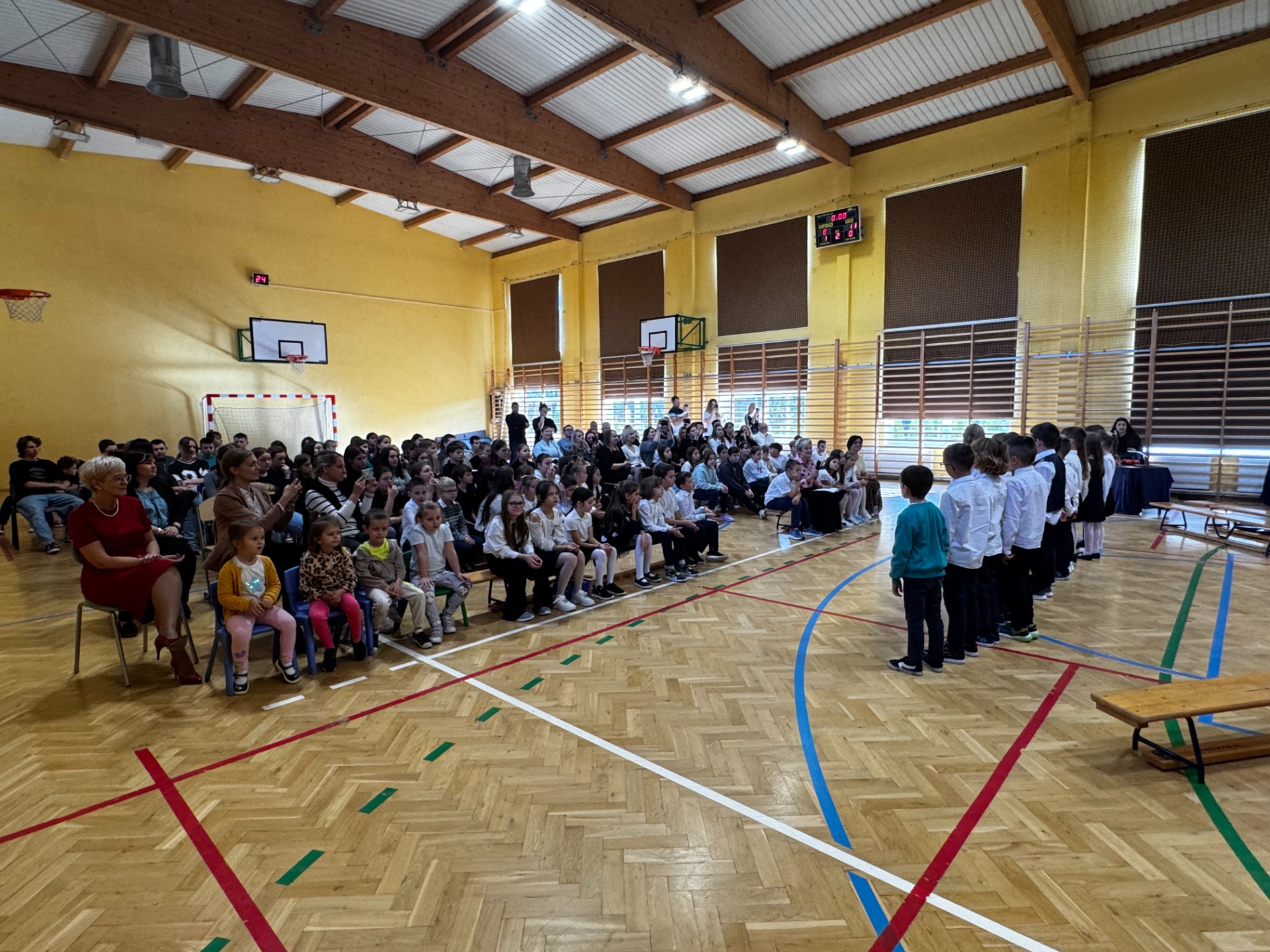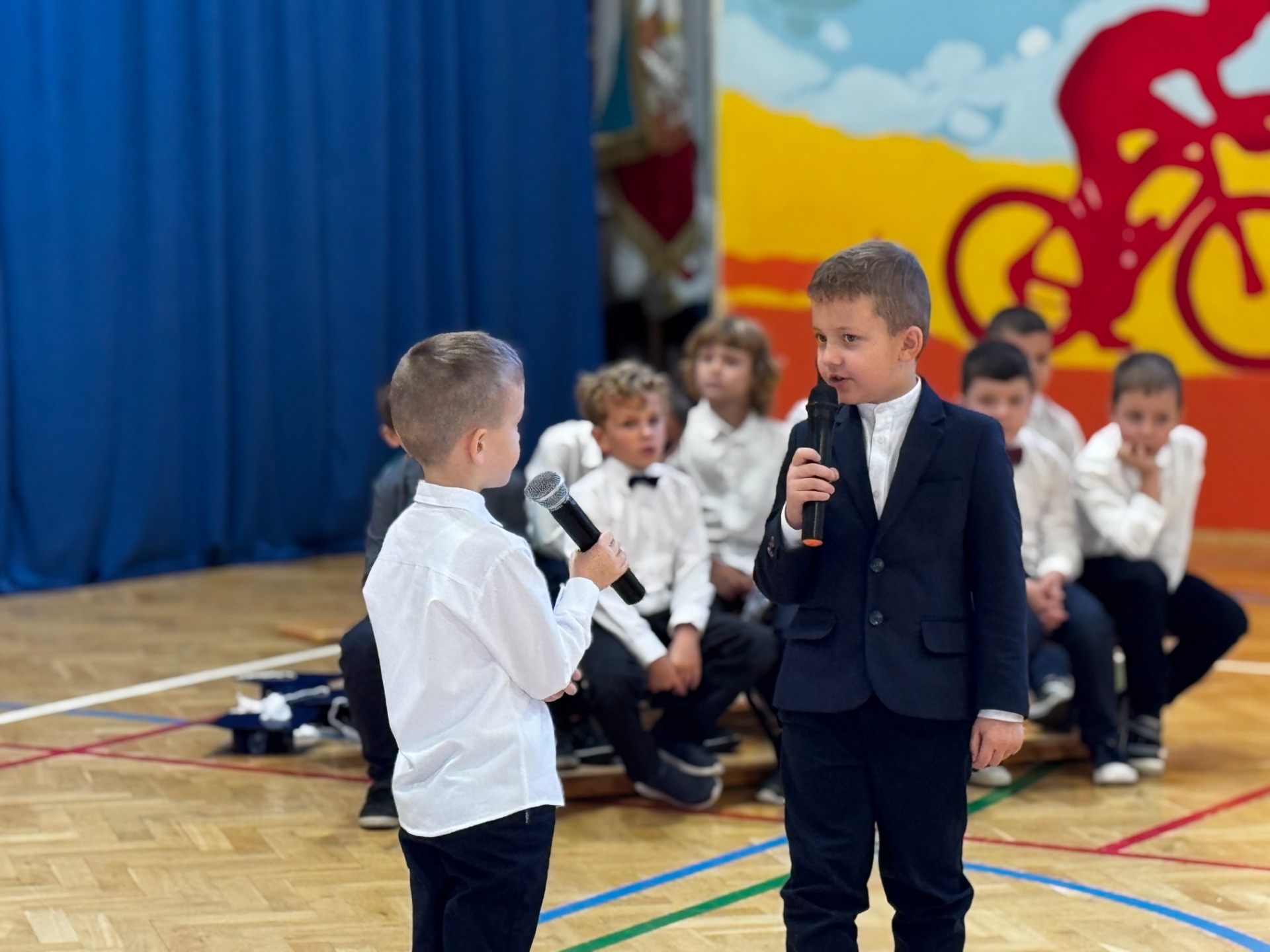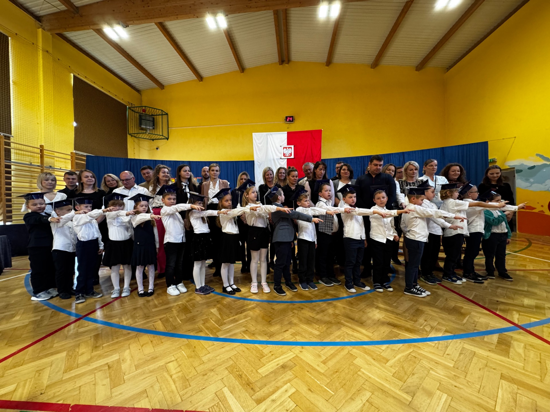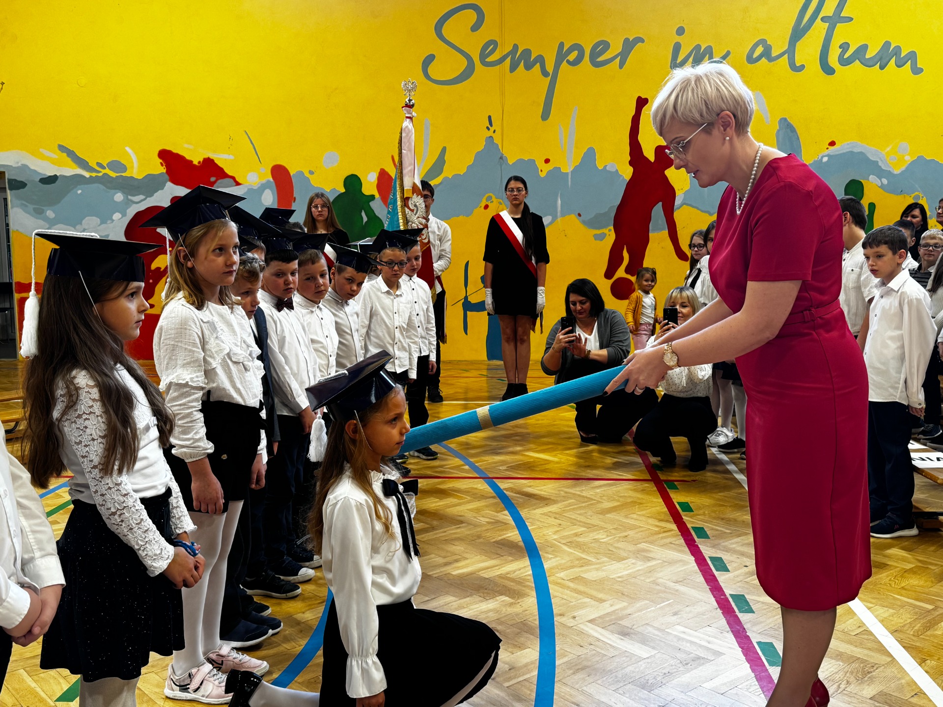 Uroczystość rozpoczęła się częścią artystyczną przygotowaną przez uczniów klasy pierwszej. Pierwszoklasiści zaprezentowali wiersze, piosenki i krótkie scenki, w których pokazali, że są już gotowi, by wstąpić w szeregi szkolnej społeczności.