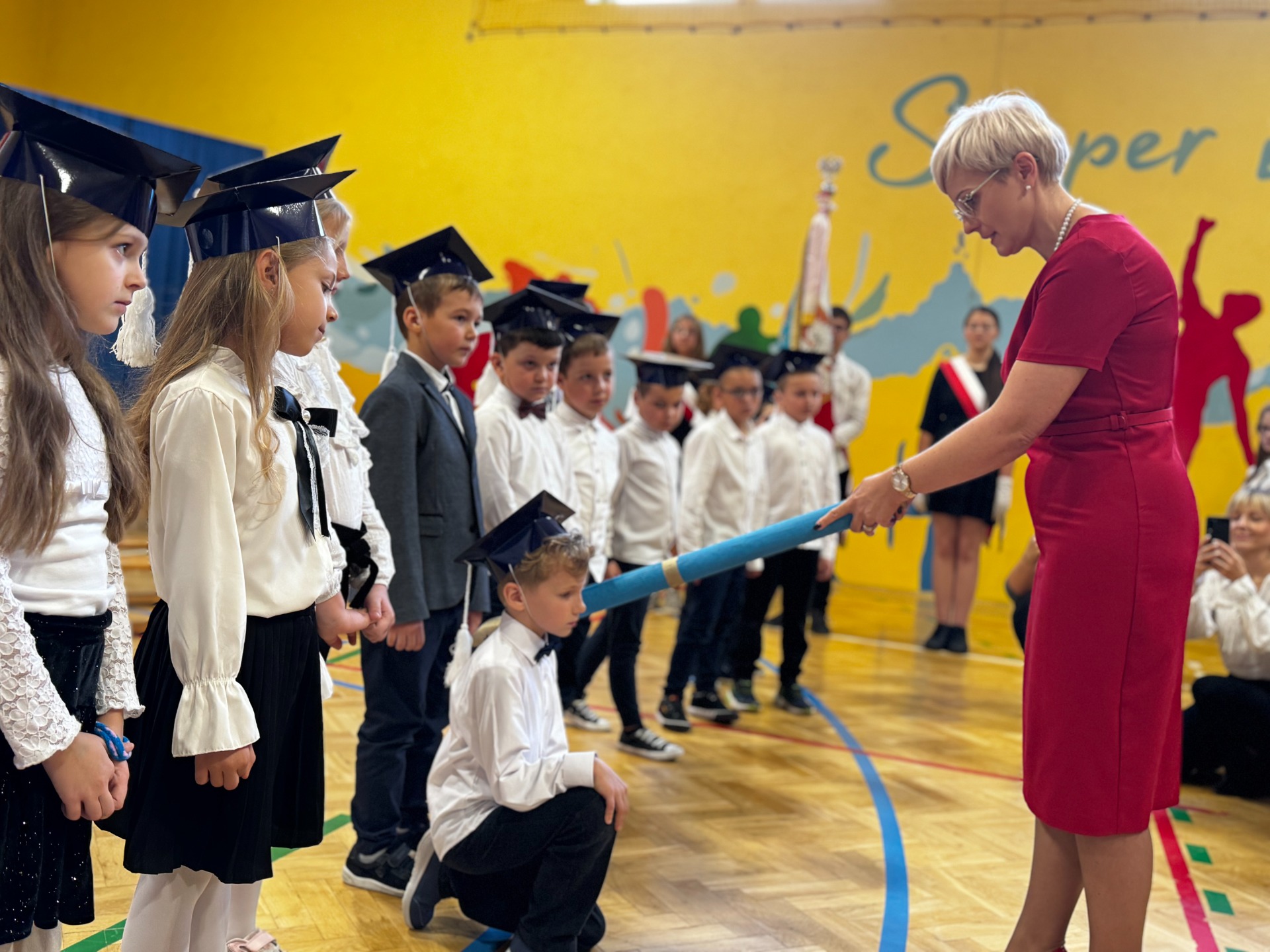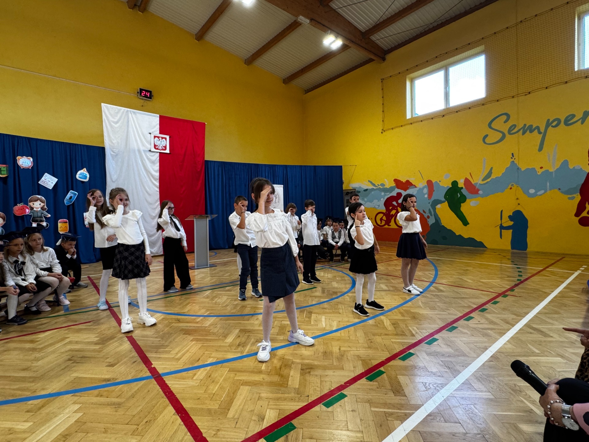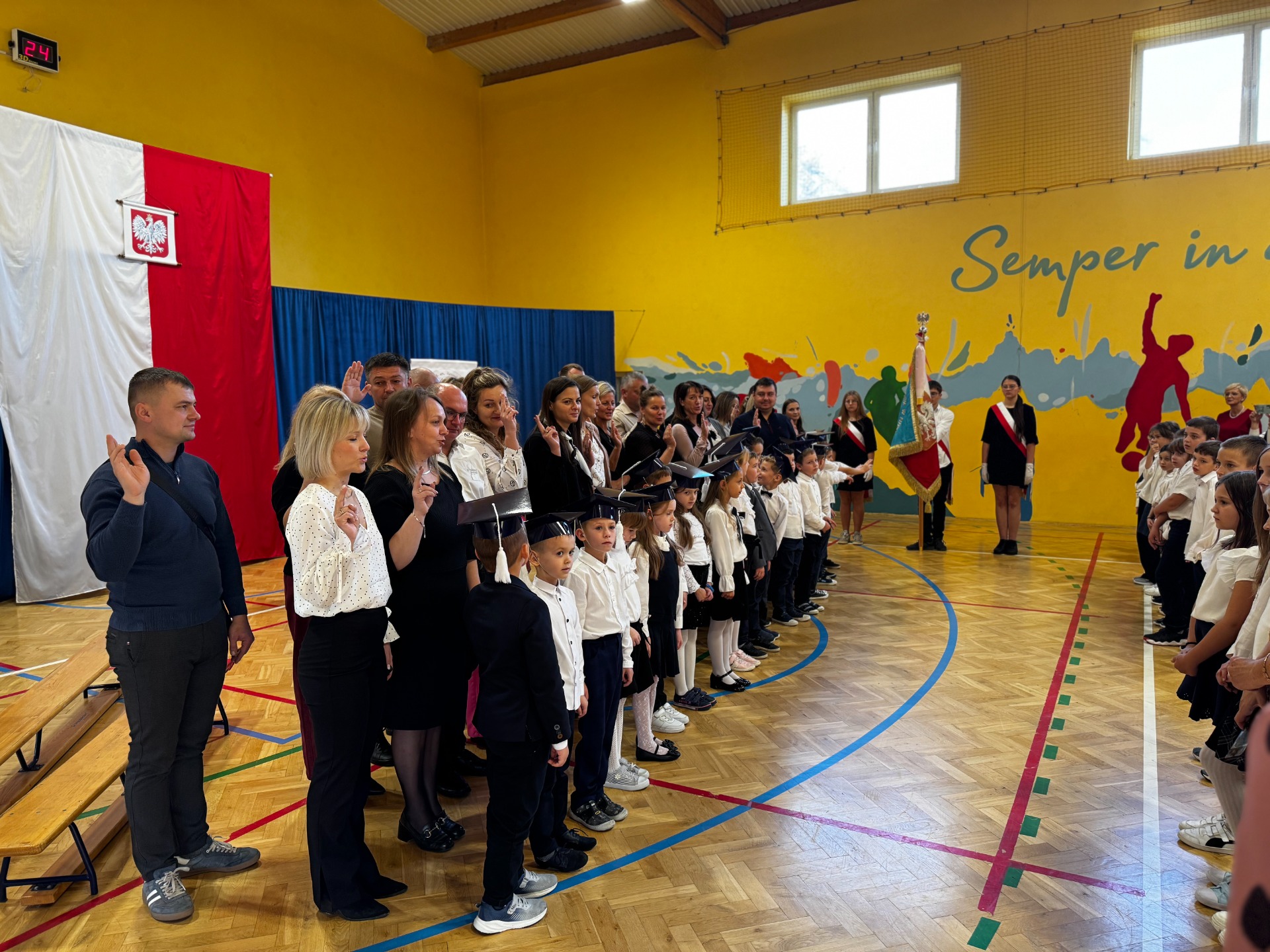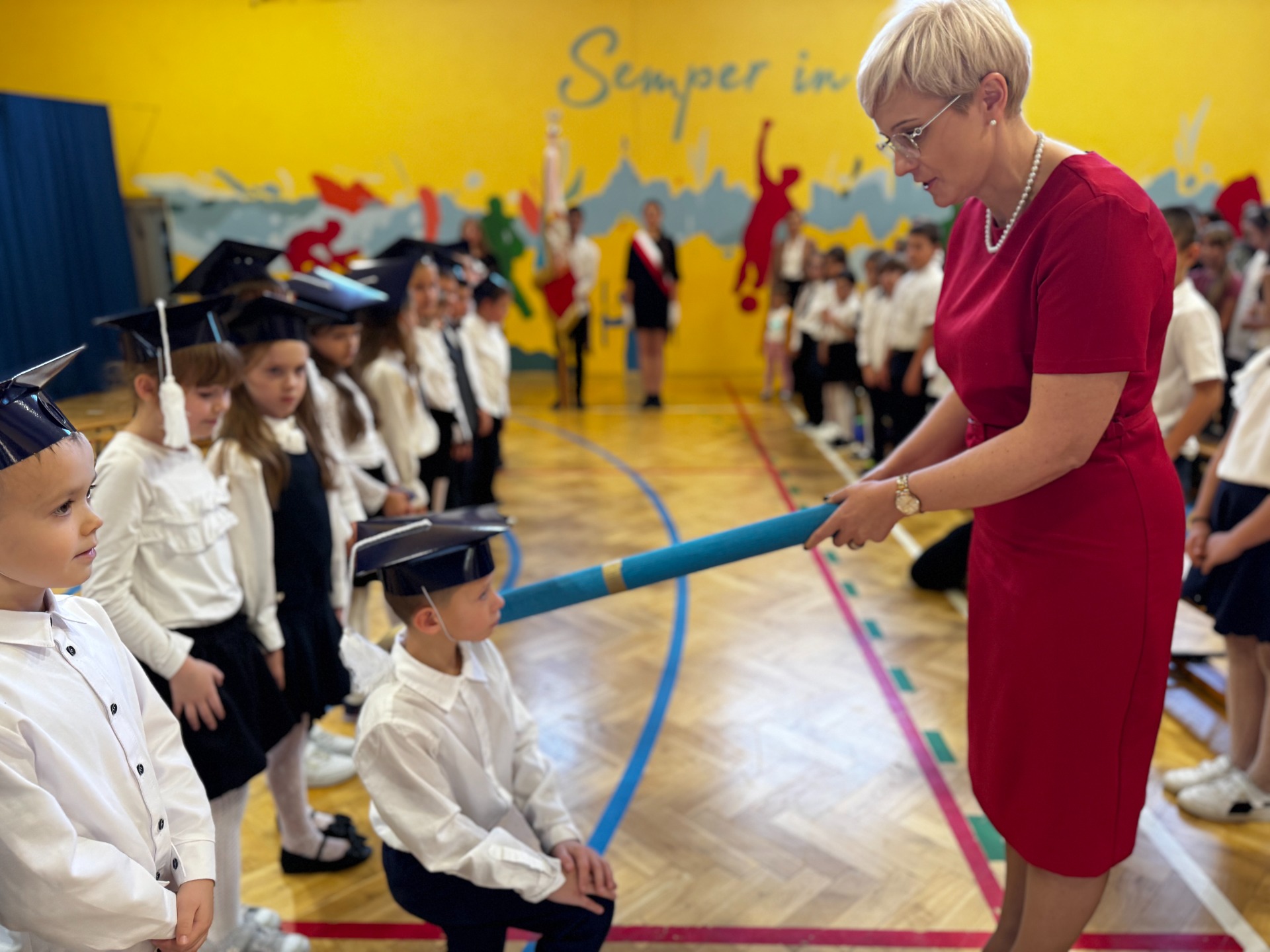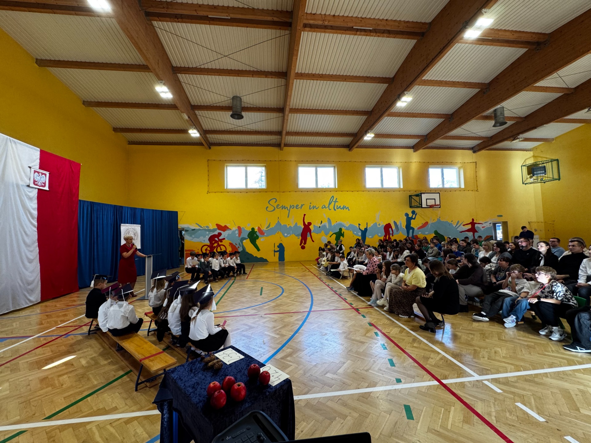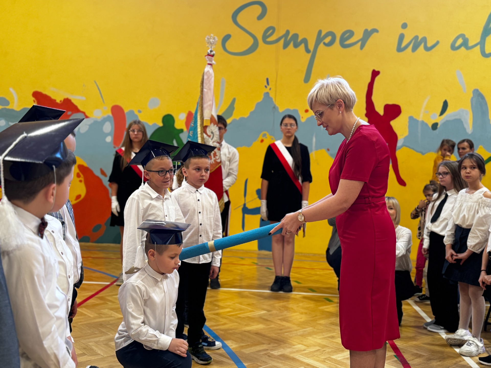 Uroczystość rozpoczęła się częścią artystyczną przygotowaną przez uczniów klasy pierwszej. Pierwszoklasiści zaprezentowali wiersze, piosenki i krótkie scenki, w których pokazali, że są już gotowi, by wstąpić w szeregi szkolnej społeczności.