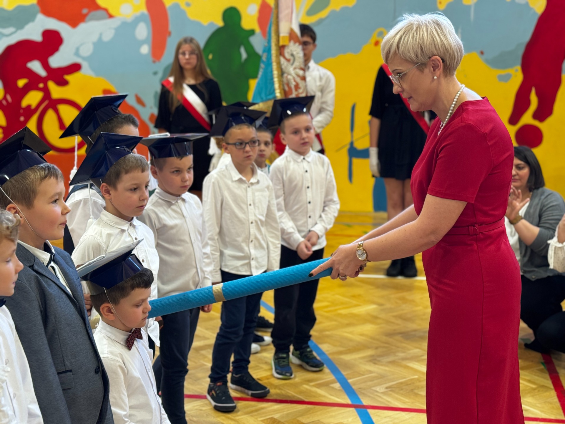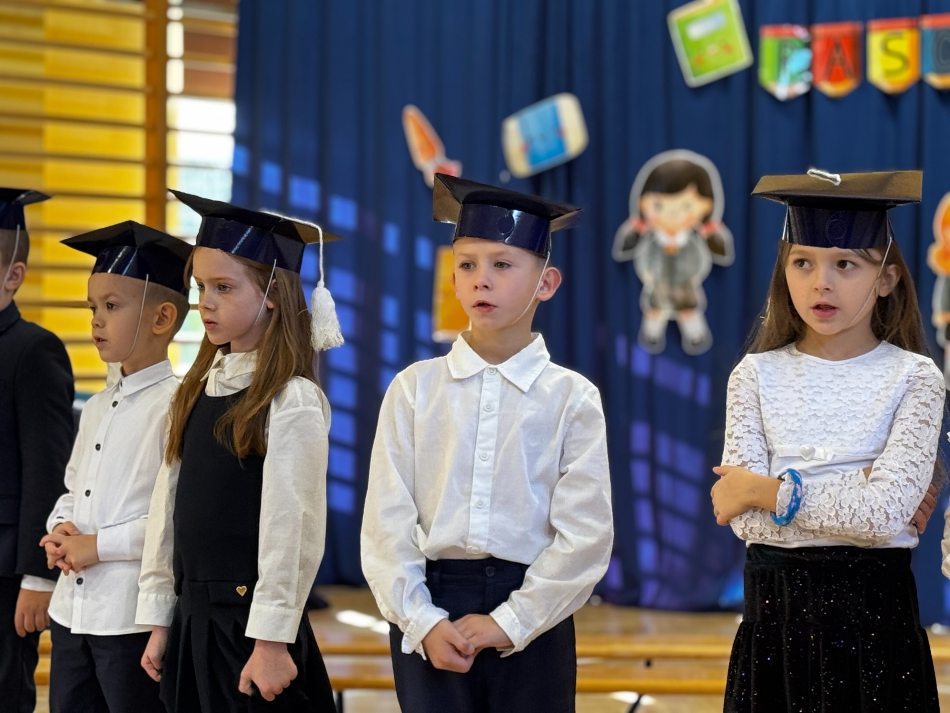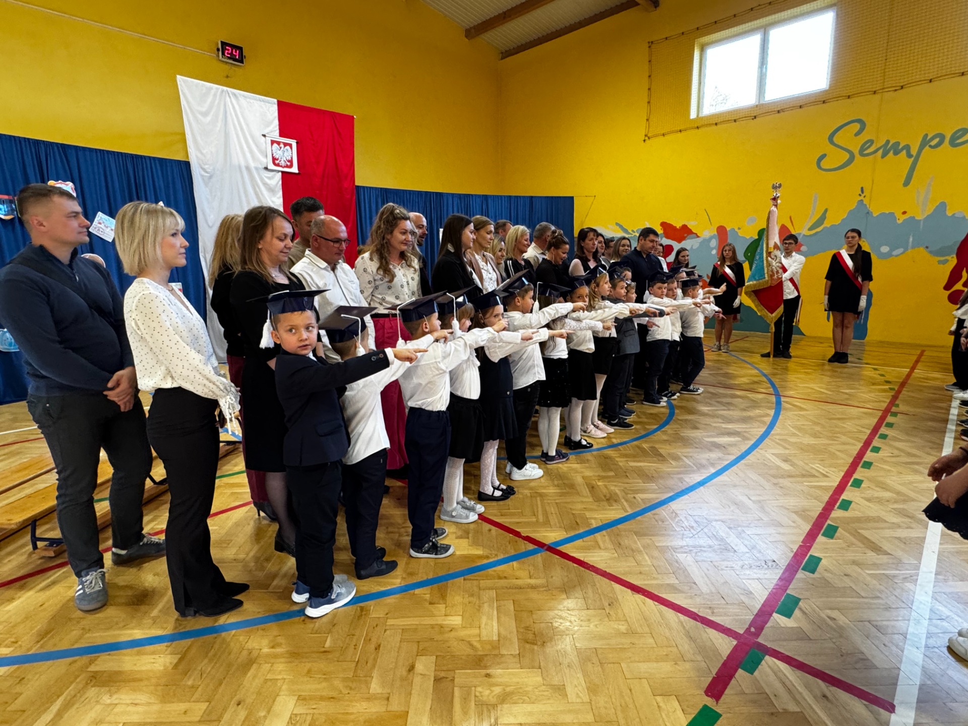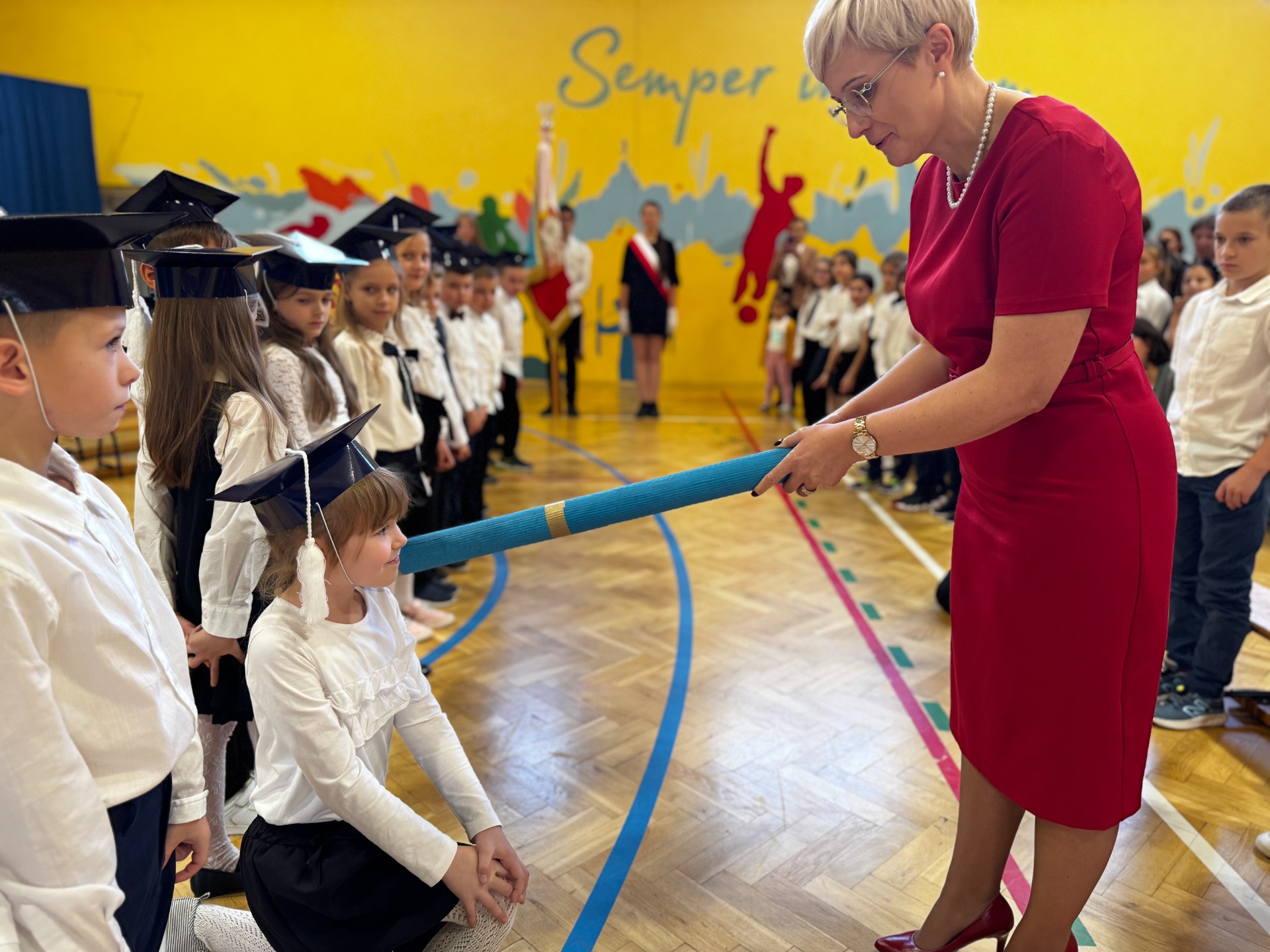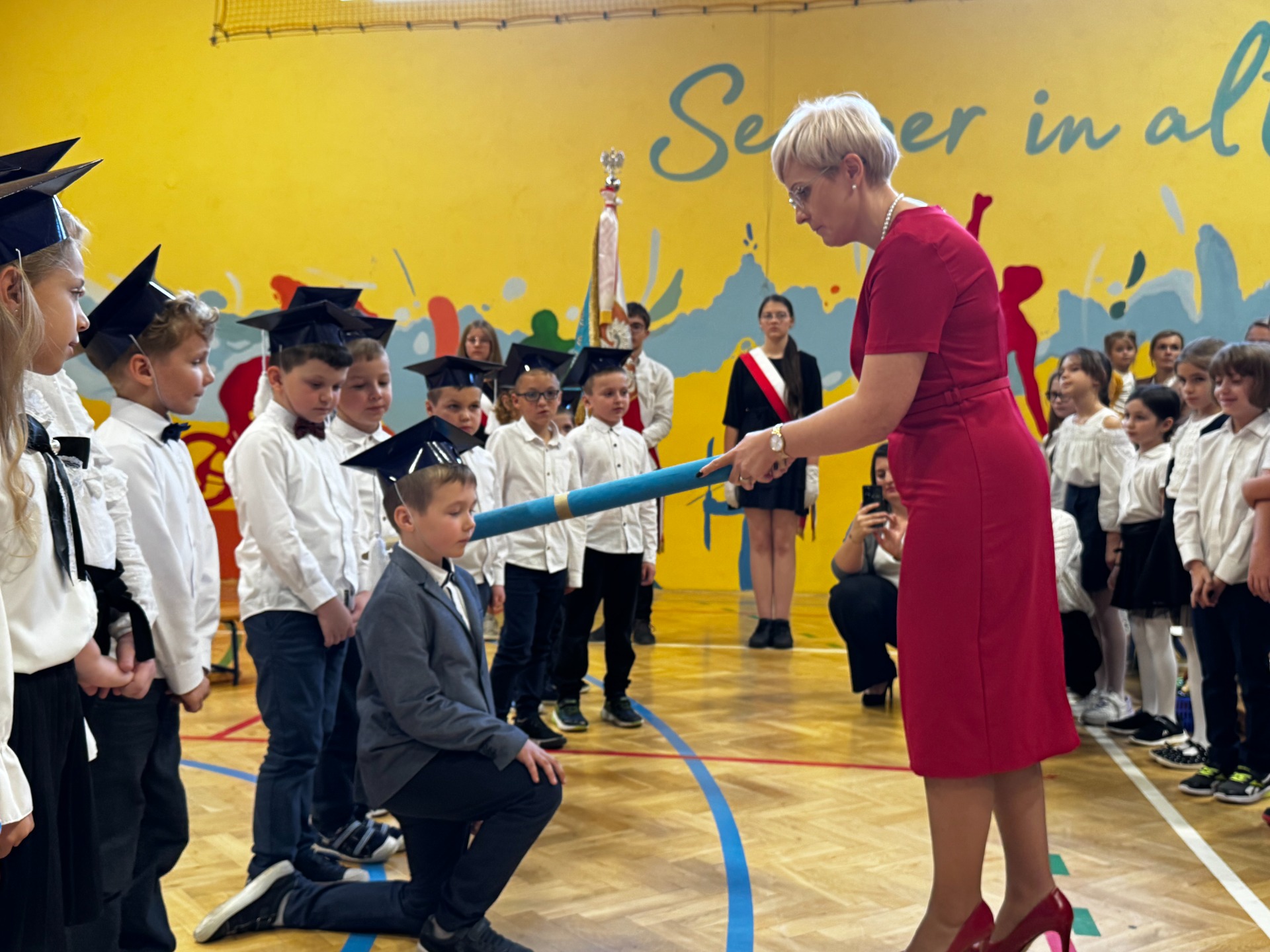 Uroczystość rozpoczęła się częścią artystyczną przygotowaną przez uczniów klasy pierwszej. Pierwszoklasiści zaprezentowali wiersze, piosenki i krótkie scenki, w których pokazali, że są już gotowi, by wstąpić w szeregi szkolnej społeczności.