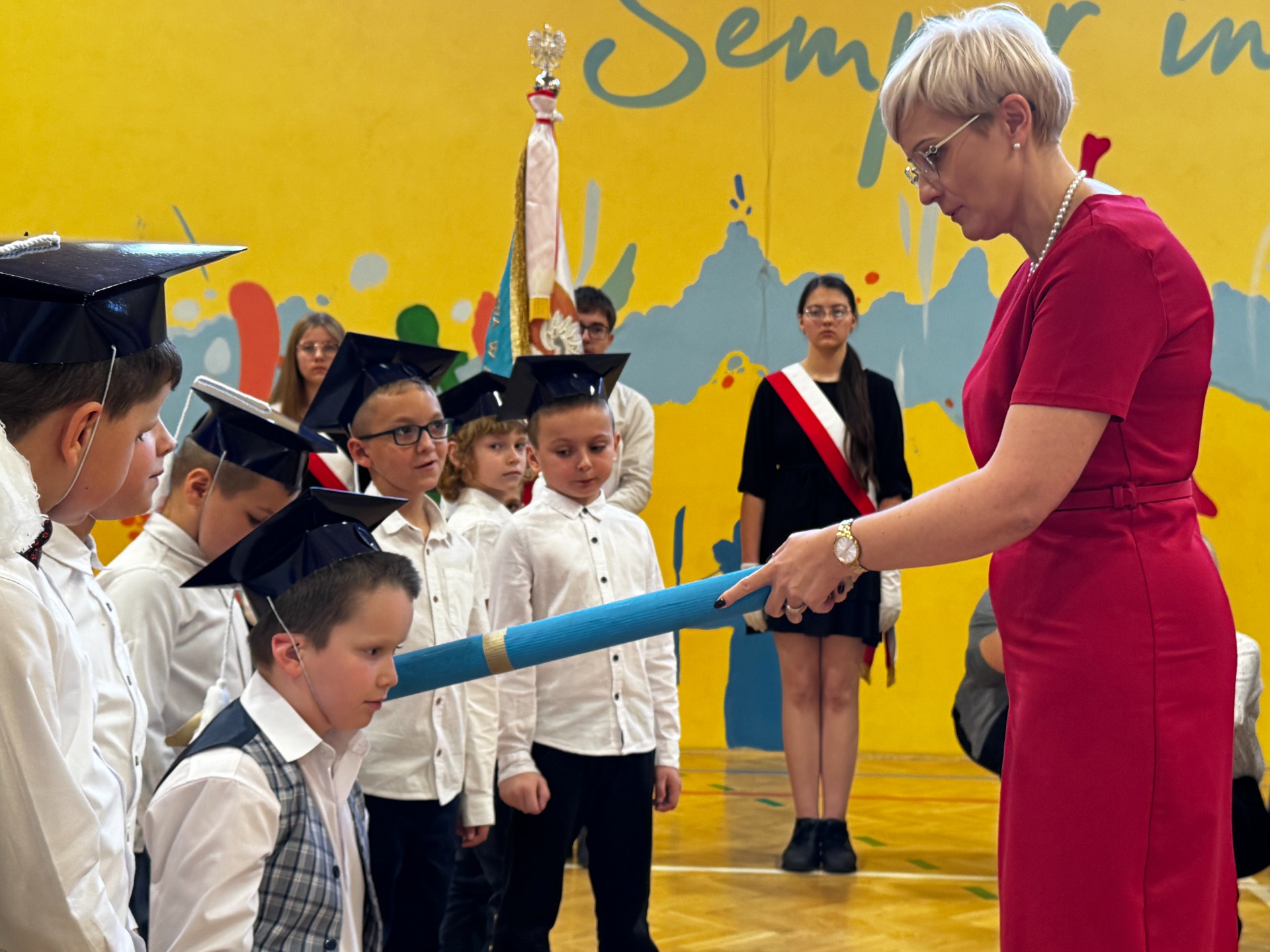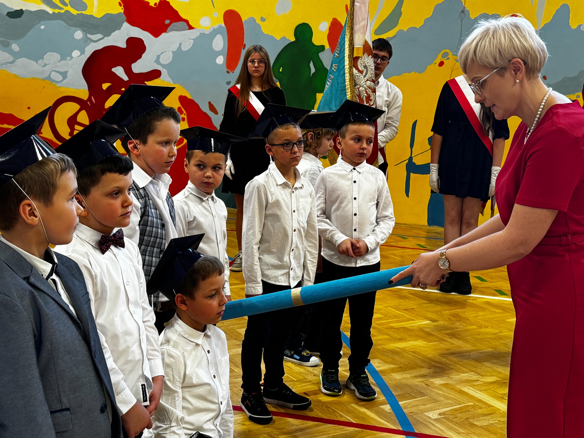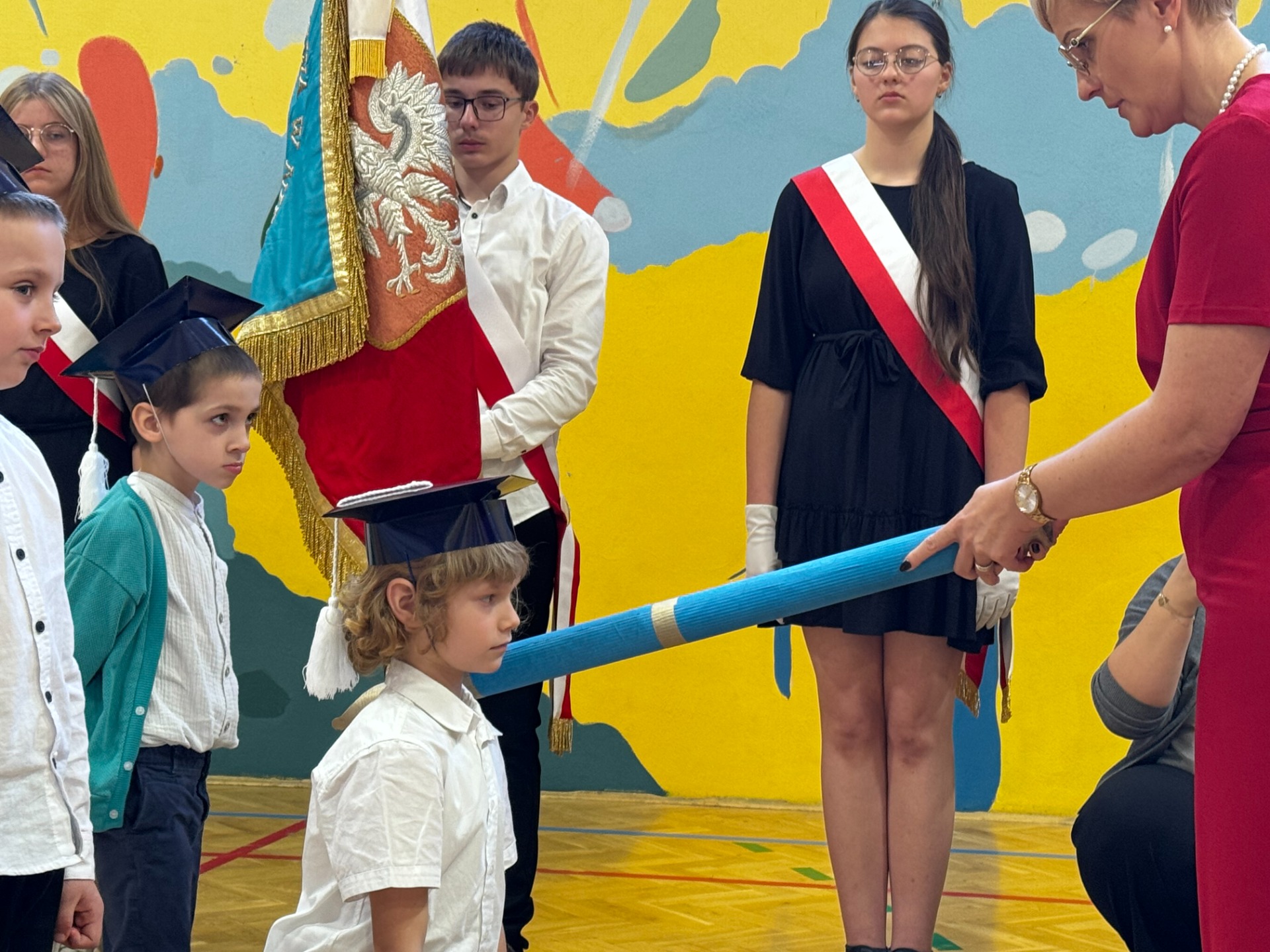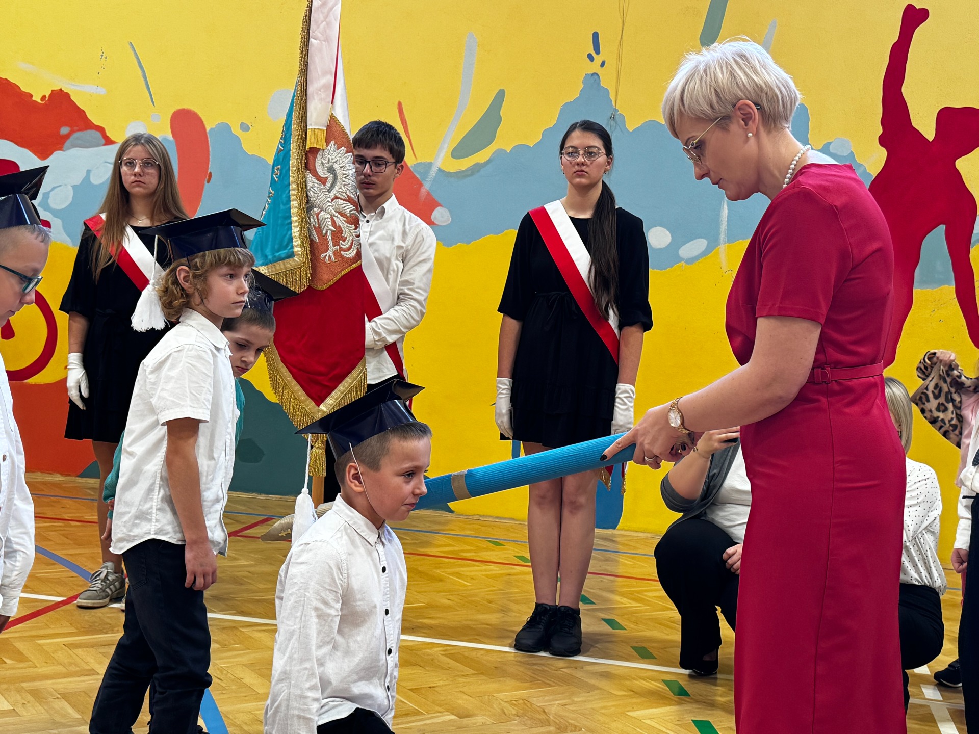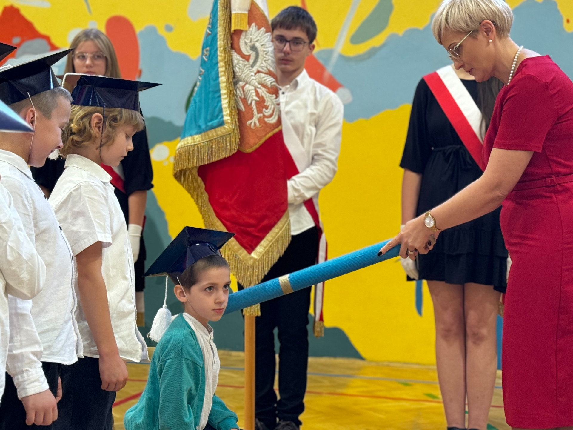 Uroczystość rozpoczęła się częścią artystyczną przygotowaną przez uczniów klasy pierwszej. Pierwszoklasiści zaprezentowali wiersze, piosenki i krótkie scenki, w których pokazali, że są już gotowi, by wstąpić w szeregi szkolnej społeczności.