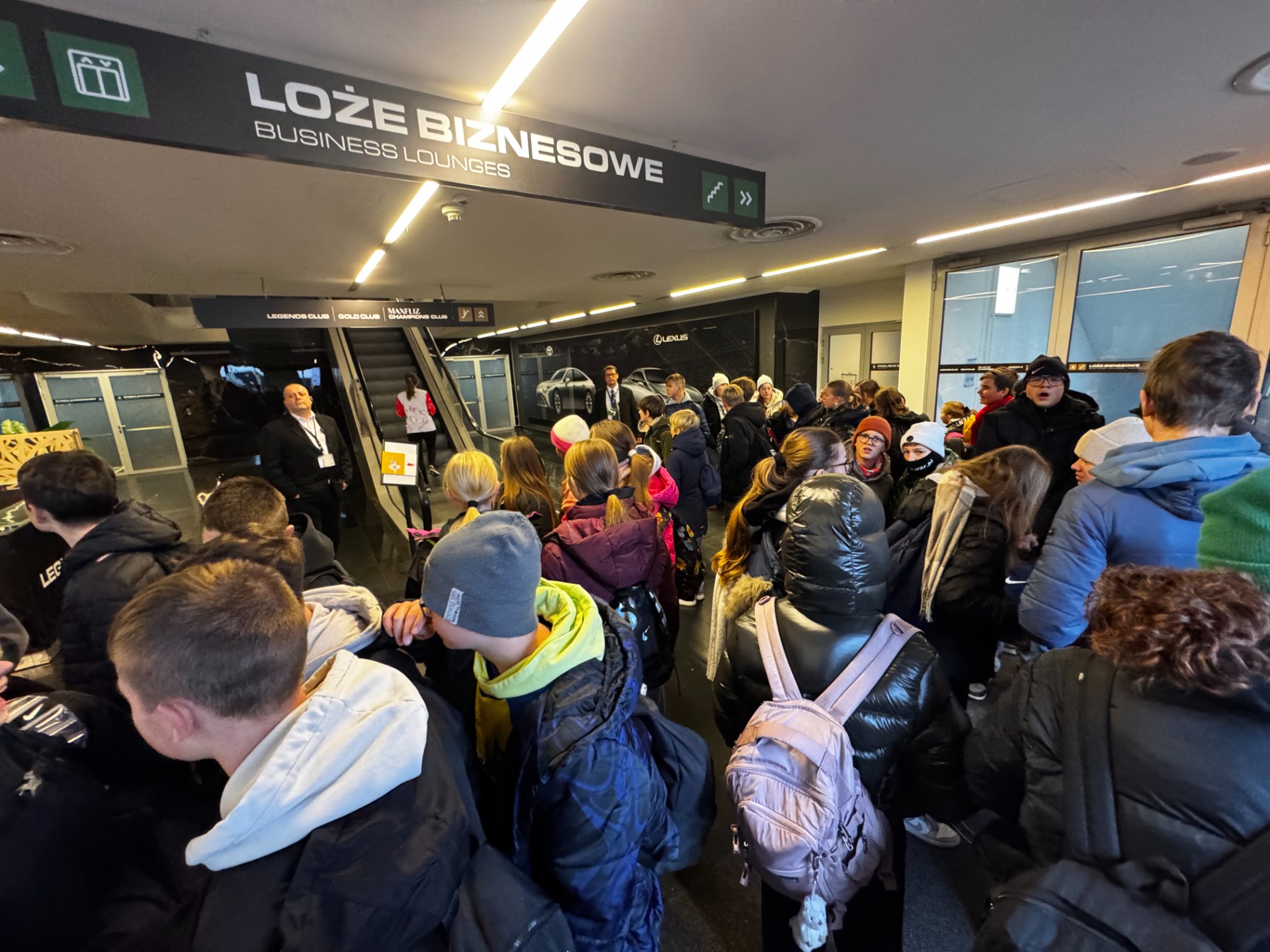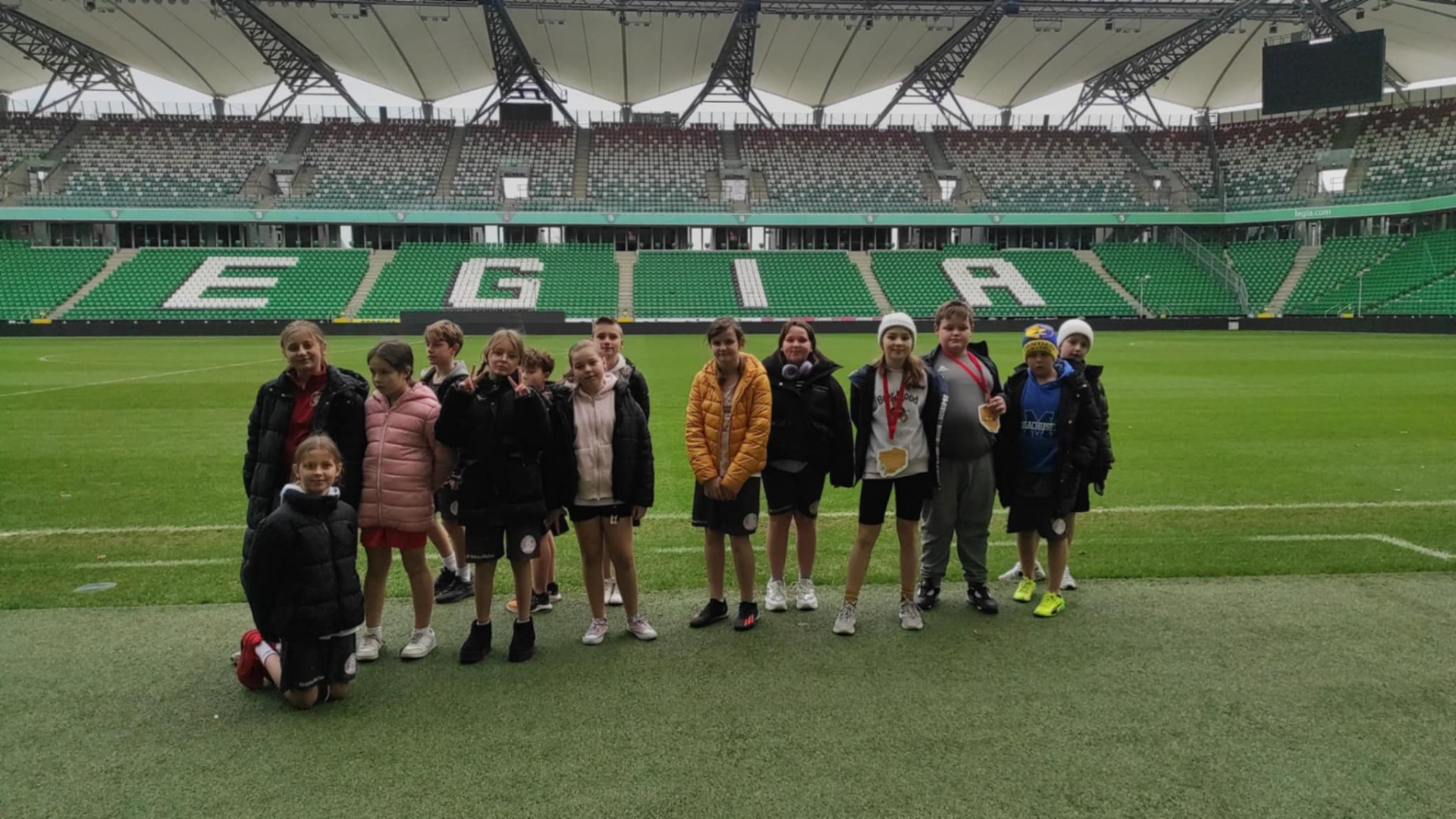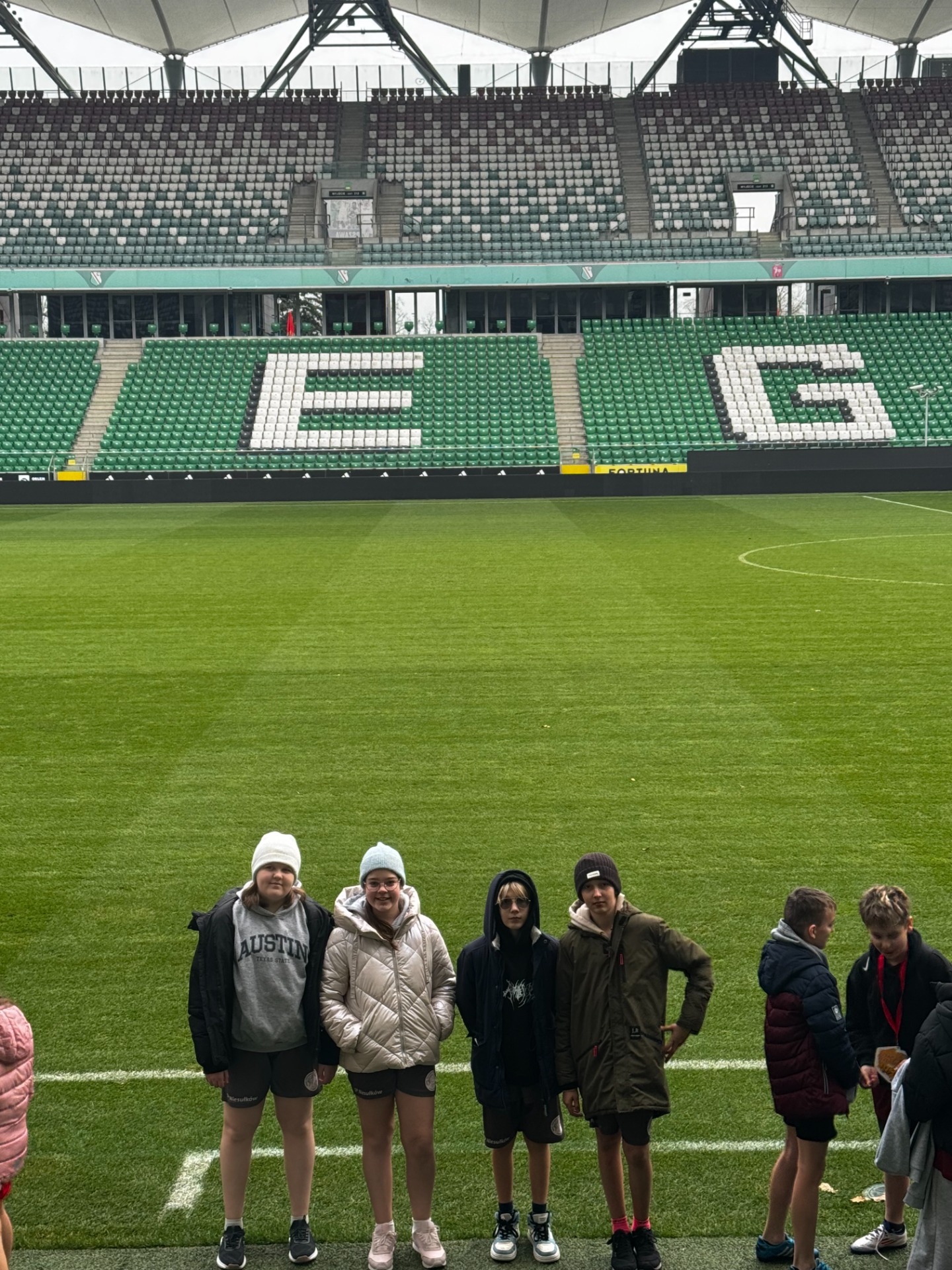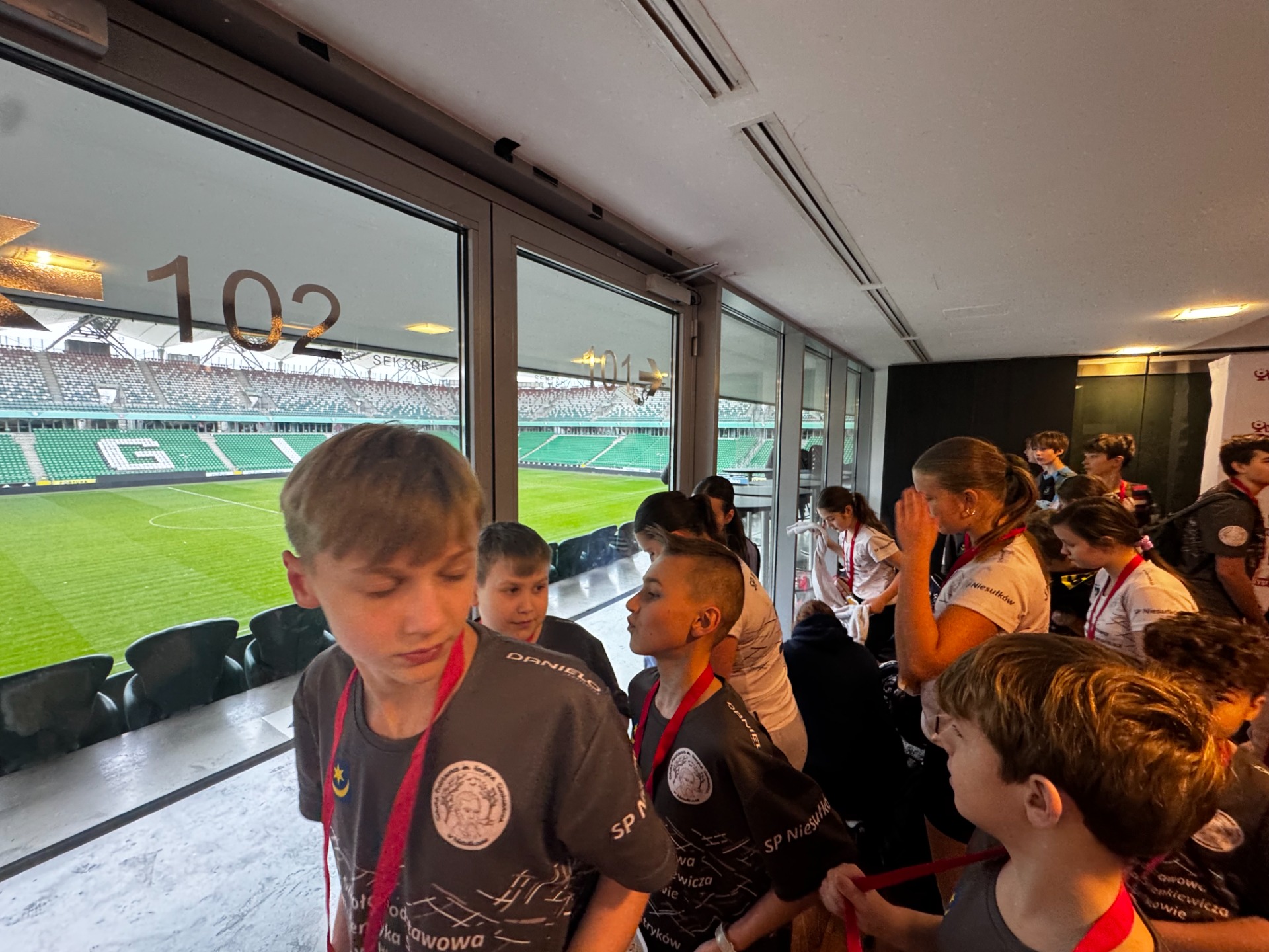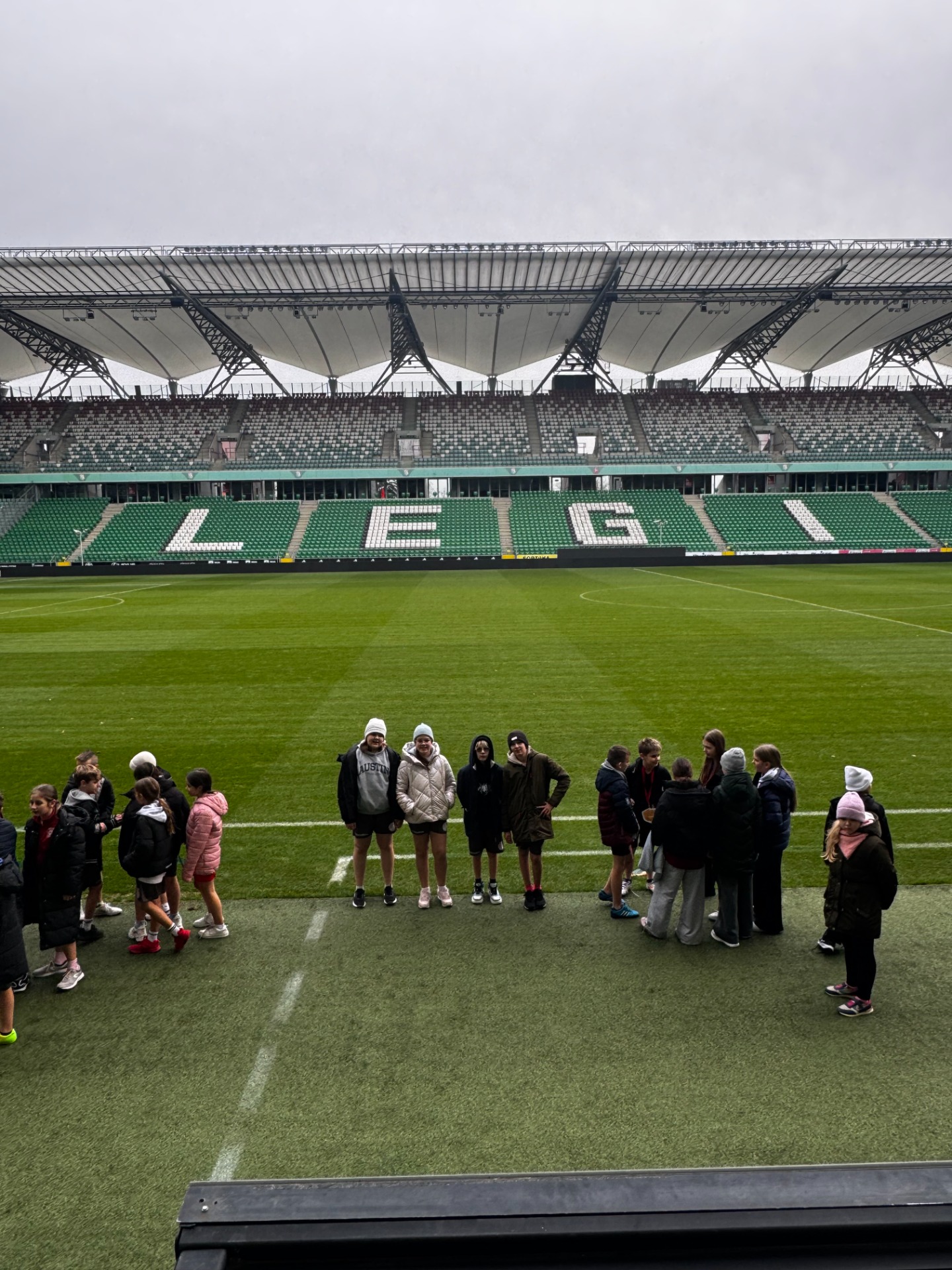 Nasi uczniowie spisali się znakomicie, plasując się kilkukrotnie w pierwszej dziesiątce w swoich kategoriach wiekowych. Co ważne, wiele osób poprawiło swoje rekordy życiowe, a poziom sportowy zawodów był naprawdę – jak mówili sami uczestnicy – kosmiczny. Walka była zacięta do ostatnich sekund, a emocje towarzyszyły nam od pierwszego do ostatniego wyścigu. Udział w tak prestiżowej imprezie sportowej to nie tylko rywalizacja, ale również ogromna dawka motywacji, integracji i sportowego ducha fair play. Dla naszych uczniów było to wyjątkowe przeżycie, które na długo pozostanie w ich pamięci. Poza sportową rywalizacją nasi uczniowie mieli również okazję zwiedzić Stadion Legii Warszawa i poznać jego najważniejsze części od zaplecza. Zobaczyli m.in. szatnię piłkarską, lożę VIP, boksy medialne oraz salę konferencyjną. Kulminacyjnym momentem było wyjście na murawę stadionu, skąd mogli spojrzeć na obiekt z perspektywy zawodowych piłkarzy. Dla wielu uczestników była to niezapomniana przygoda i wyjątkowa lekcja sportowych marzeń.