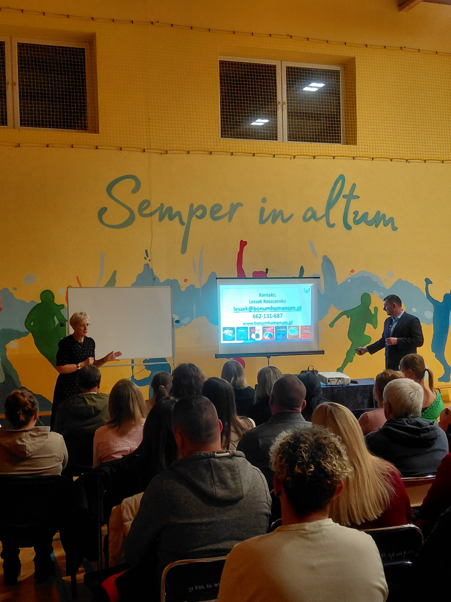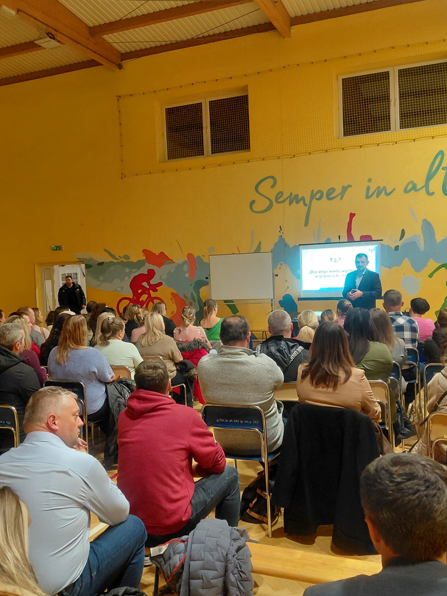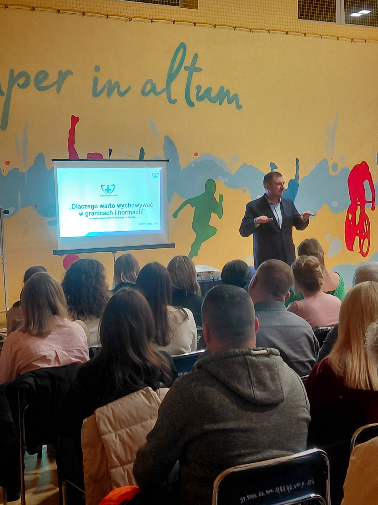Rodzice oraz nauczyciele mieli przyjemność i zaszczyt uczestniczenia w warsztatach profilaktycznych prowadzonych przez pana Leszka Roszczenko z Fundacji BONUM HUMANUM. Tytuł spotkania to „Dlaczego warto wychowywać w granicach i normach” Jak technologie cyfrowe wpływają na dziecko. Dzisiejszy świat cyfrowy niesie ze sobą wiele dobrodziejstw, ale należy też pamiętać o zagrożeniach, którym mogą ulec wszyscy, a przede wszystkim dzieci i nastolatkowie. Prowadzący uświadomił zebranym słuchaczom, jak ważną rolę odgrywa dorosły, wyznaczenie granic oraz ustalenie norm, w bezpiecznym poruszaniu się dzieci po świecie wirtualnym. Podkreślił znaczenie rodziny i kontaktów międzyludzkich w rozwoju młodych ludzi zarówno w znaczeniu psychicznym i fizycznym. Ustalone zasady mogą zmniejszyć wśród dzieci takie rzeczy jak: problemy ze wzrokiem, problemy z koncentracją, izolacją społeczną, a także zaniżone poczucie własnej wartości, które często podważane jest wzorcami promowanymi przez media społecznościowe. Pamiętajmy, że dzieci potrzebują granic, aby czuć się bezpiecznie. Mamy nadzieję, że to spotkanie było interesujące i każdy z zebranych dorosłych zabrał coś cennego i pouczającego dla siebie.