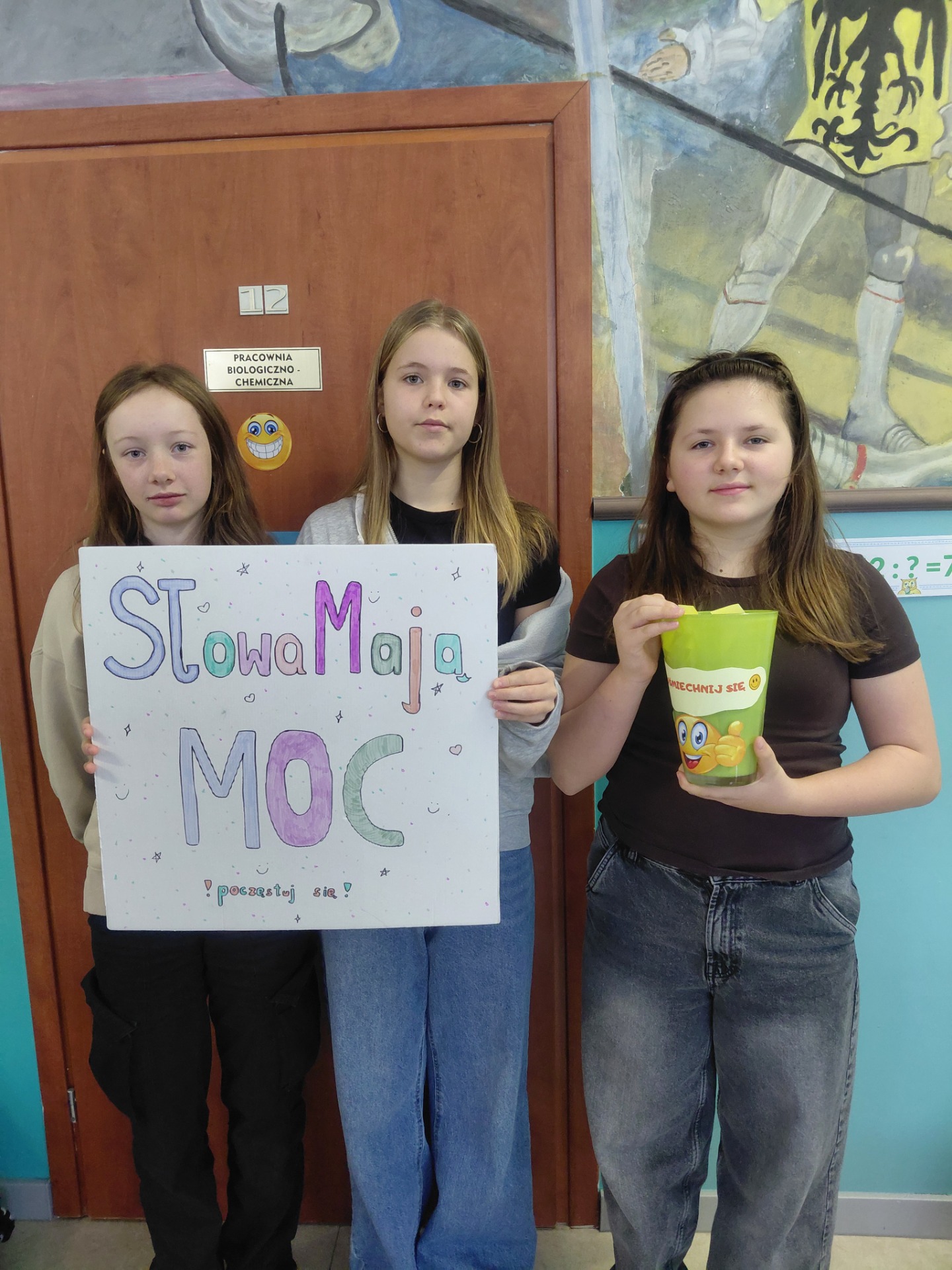 i budowanie pozytywnych relacji. W ramach obchodów Samorząd Uczniowski przygotował szereg działań, które zachęcały uczniów do okazywania dobroci na co dzień. Jak co roku jednym z wydarzeń był plebiscyt na Życzliwego Ucznia bądź Życzliwą Uczennicę, w którym społeczność szkolna mogła wyróżnić osoby wyróżniające się empatią, pomocą innym i uśmiechem na co dzień. Medale zdobyli: Laura Lipińska kl. III i Maja Olczyk kl. IV. Tydzień życzliwości nie mógł się odbyć bez losowania miłych słów – każdy mógł wylosować pozytywną wiadomość, która nie tylko poprawiała humor, ale również inspirowała do dzielenia się dobrem i wspierała poczucie własnej wartości. Dużym zainteresowaniem cieszyła się również „Skrzynka życzliwości”, do której uczniowie wrzucali napisane przez siebie krótkie listy, pełne serdecznych wiadomości