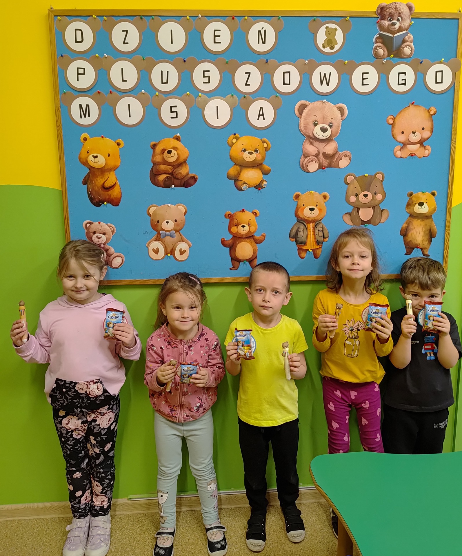 26 listopada świętowaliśmy w naszym przedszkolu Dzień Pluszowego Misia. Tego dnia każde dziecko przyszło z ukochanym pluszakiem, który towarzyszył mu podczas zabaw i zajęć. Przedszkolaki wysłuchały historii o powstaniu pluszowego misia, brały udział w misiowych konkurencjach ruchowych, rozwiązywały zagadki oraz wykonywały prace plastyczne z motywem misia.