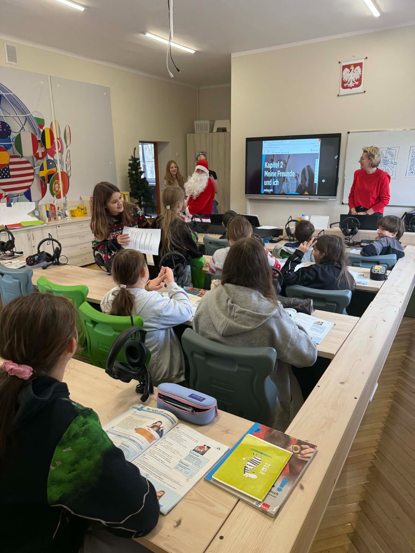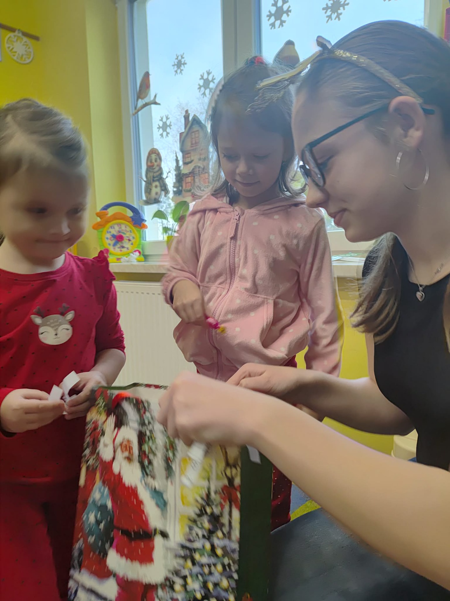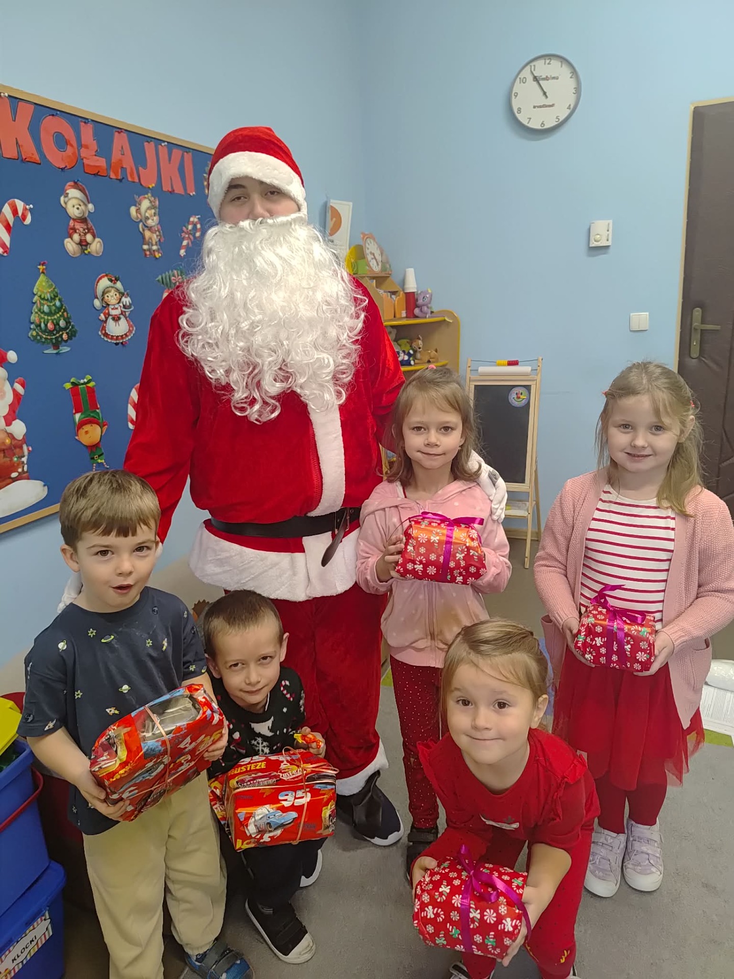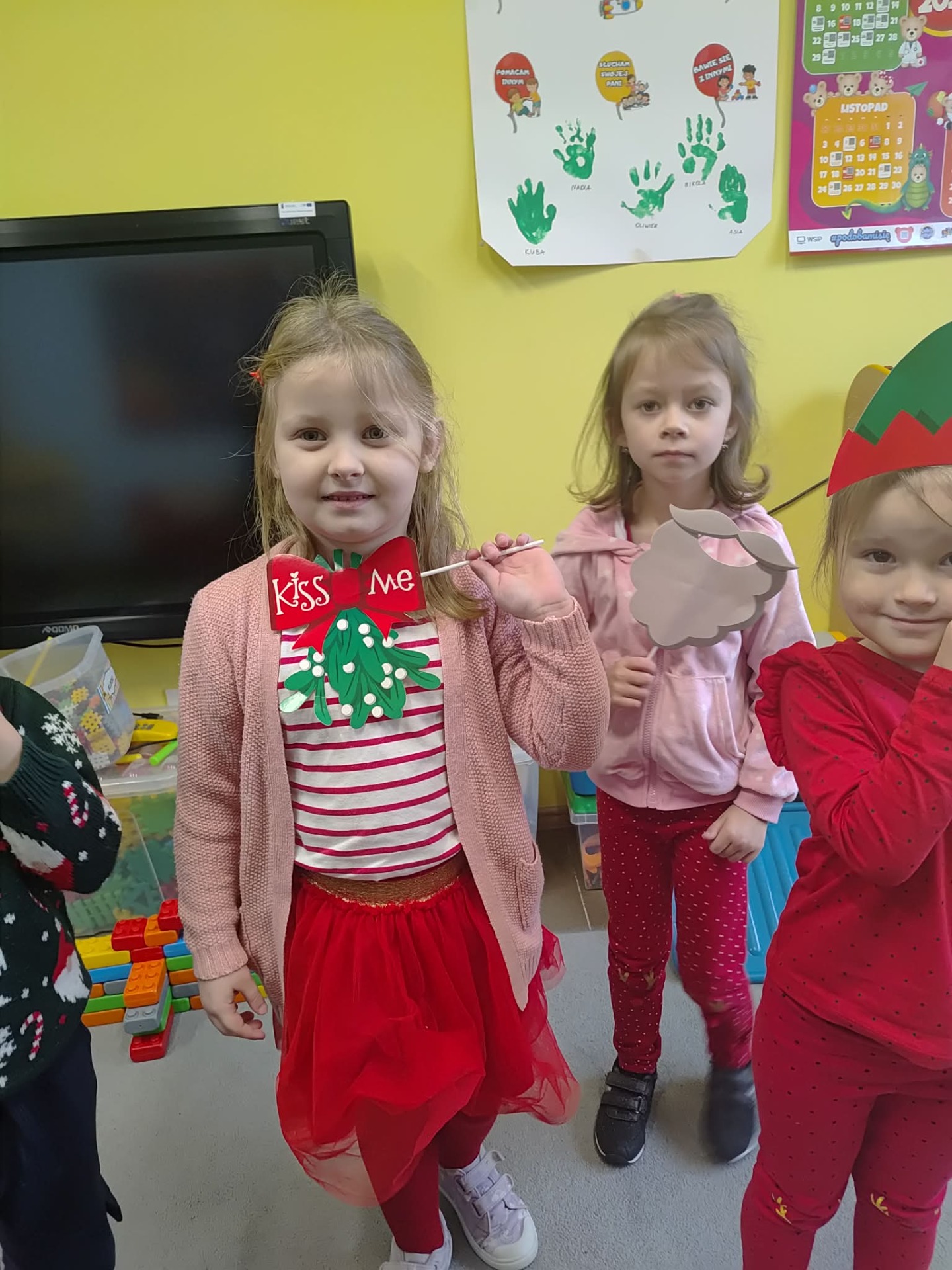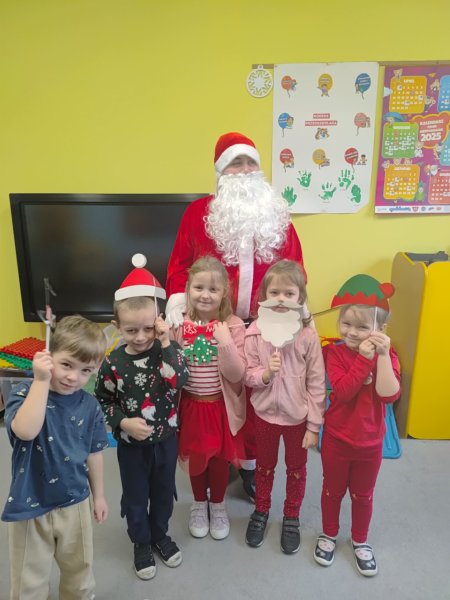 i niespodzianek. Uczniowie mogli spróbować swoich sił w quizie dotyczącym Świąt Bożego Narodzenia. Każda poprawna odpowiedź nagradzana była słodkim upominkiem, co wywoływało wiele radości. W programie nie zabrakło również atrakcji tanecznych – pojawiły się wesołe układy z udziałem Grincha w roli głównej, który tym razem postanowił bawić się razem z uczniami, zamiast psotnie psuć święta. Na szkolnych korytarzach gościł także Mikołaj, rozdając słodkie poczęstunki wszystkim, którzy napotkali go na swojej drodze. To był dzień pełen pozytywnej energii, wspólnej zabawy i świątecznego nastroju.