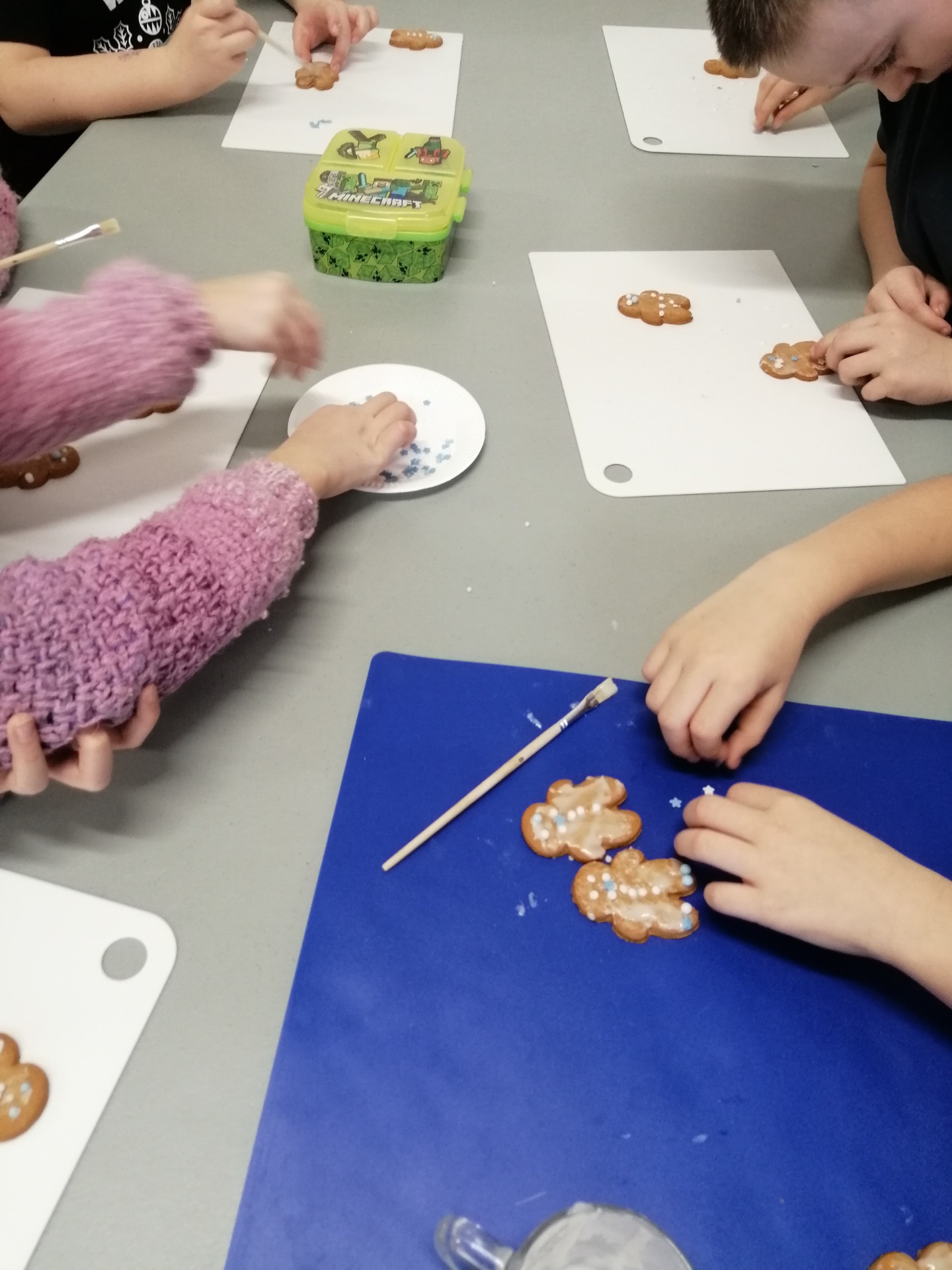 W okresie przedświątecznym w świetlicy szkolnej zapanowała wyjątkowa, pełna radości i twórczej energii atmosfera. Uczniowie z dużym zaangażowaniem uczestniczyli w różnorodnych aktywnościach plastycznych i kulinarnych, które wprowadziły nas w magiczny klimat świąt.