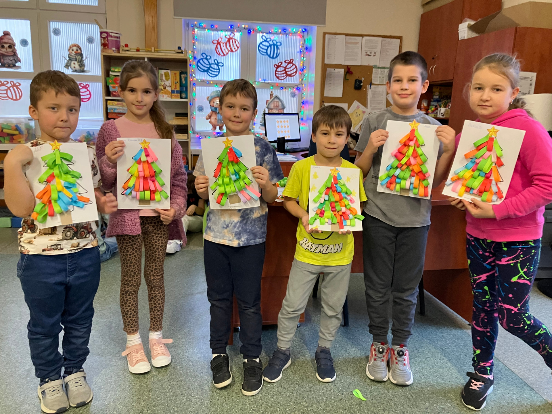 W świetlicy ozdabialiśmy pierniczki, ćwicząc kreatywność i zdolności manualne, tworzyliśmy choinkę z papierowych bombek, która stała się piękną dekoracją, a także wykonywaliśmy przestrzenne choinki oraz wiele, wiele świątecznych kolorowanek.