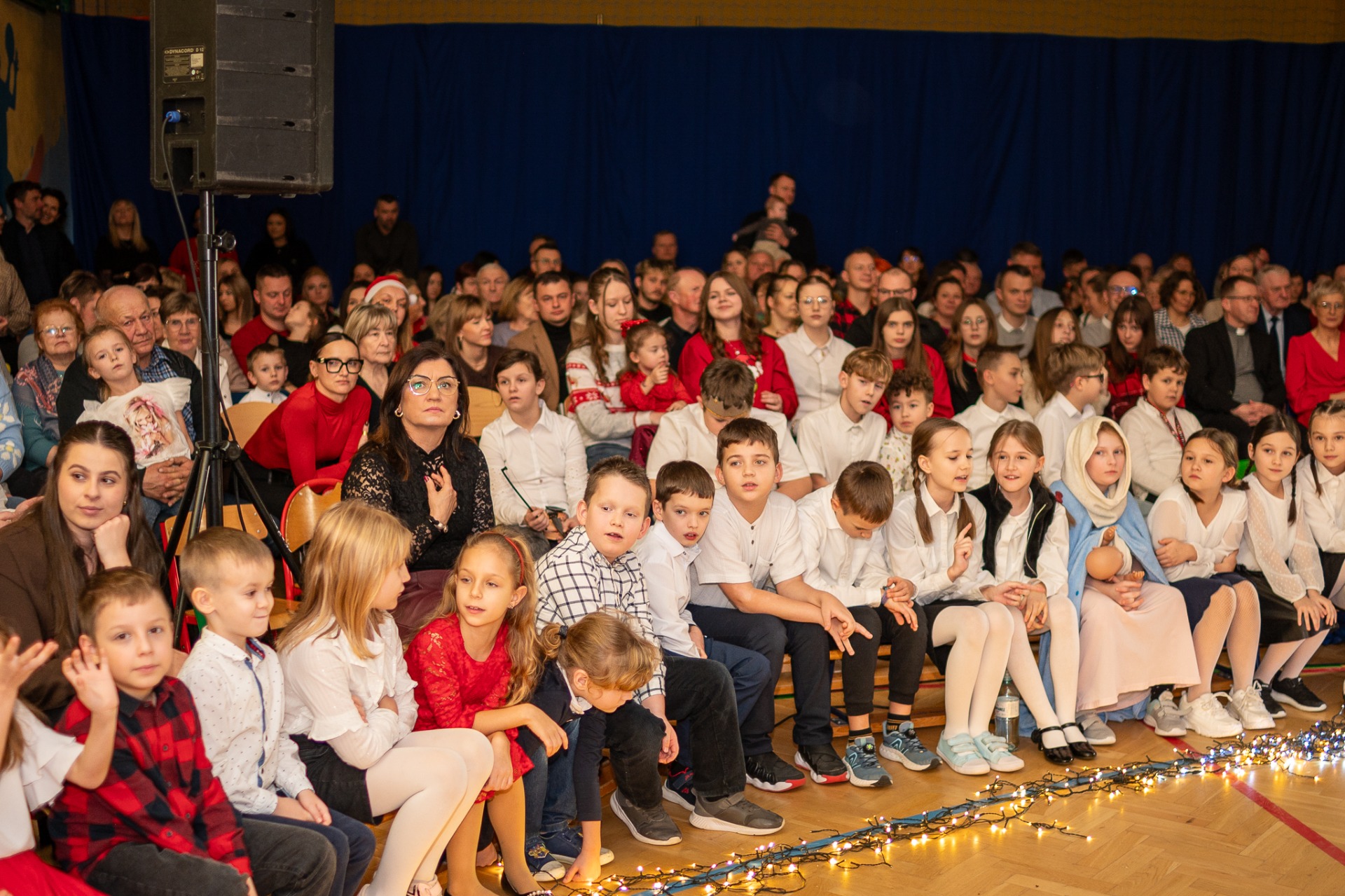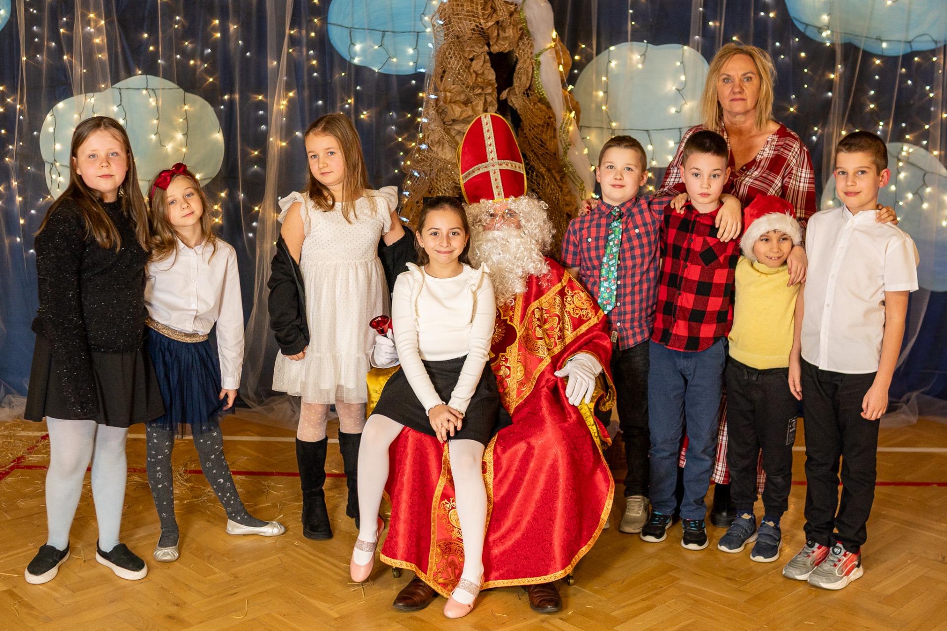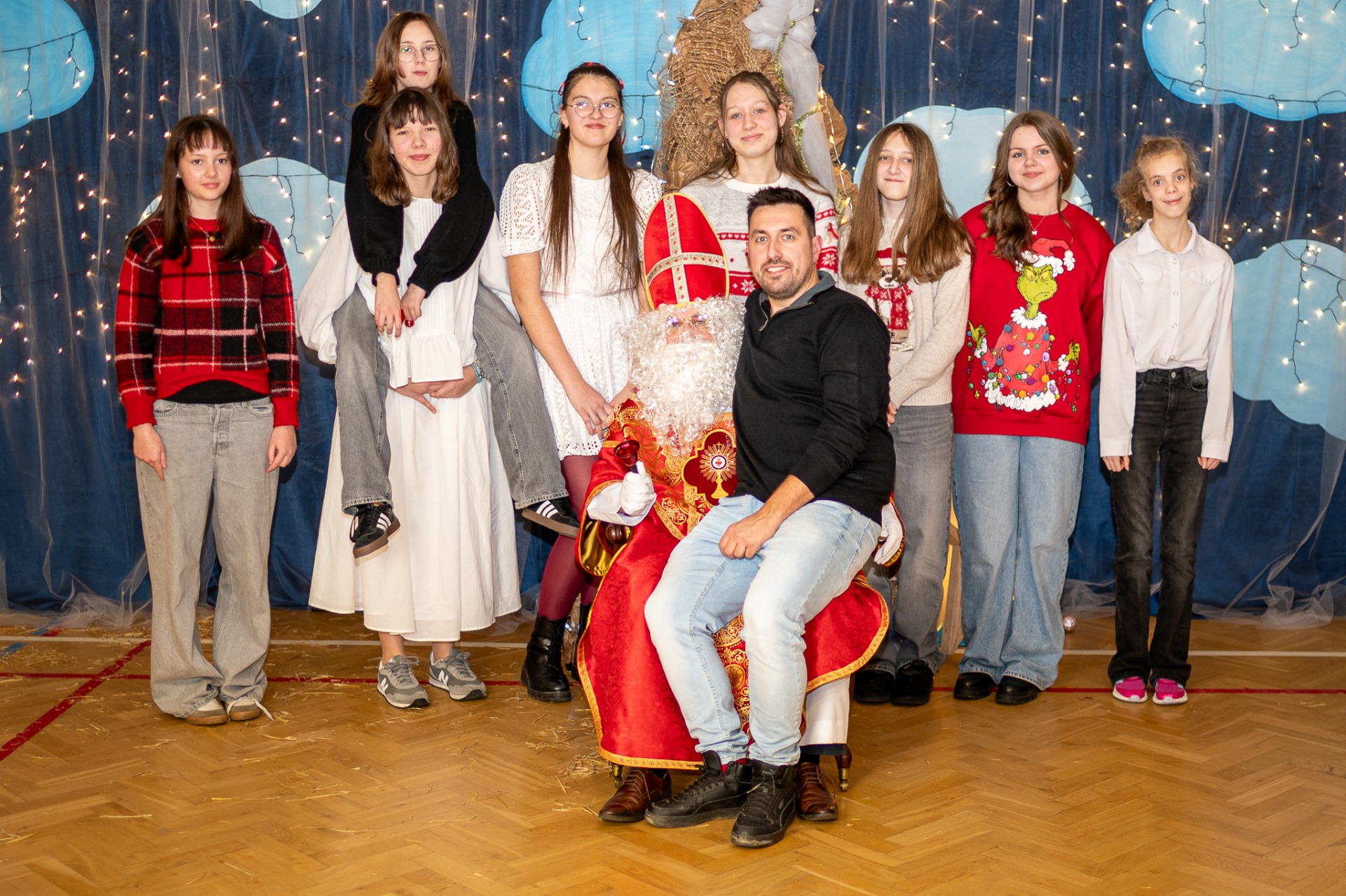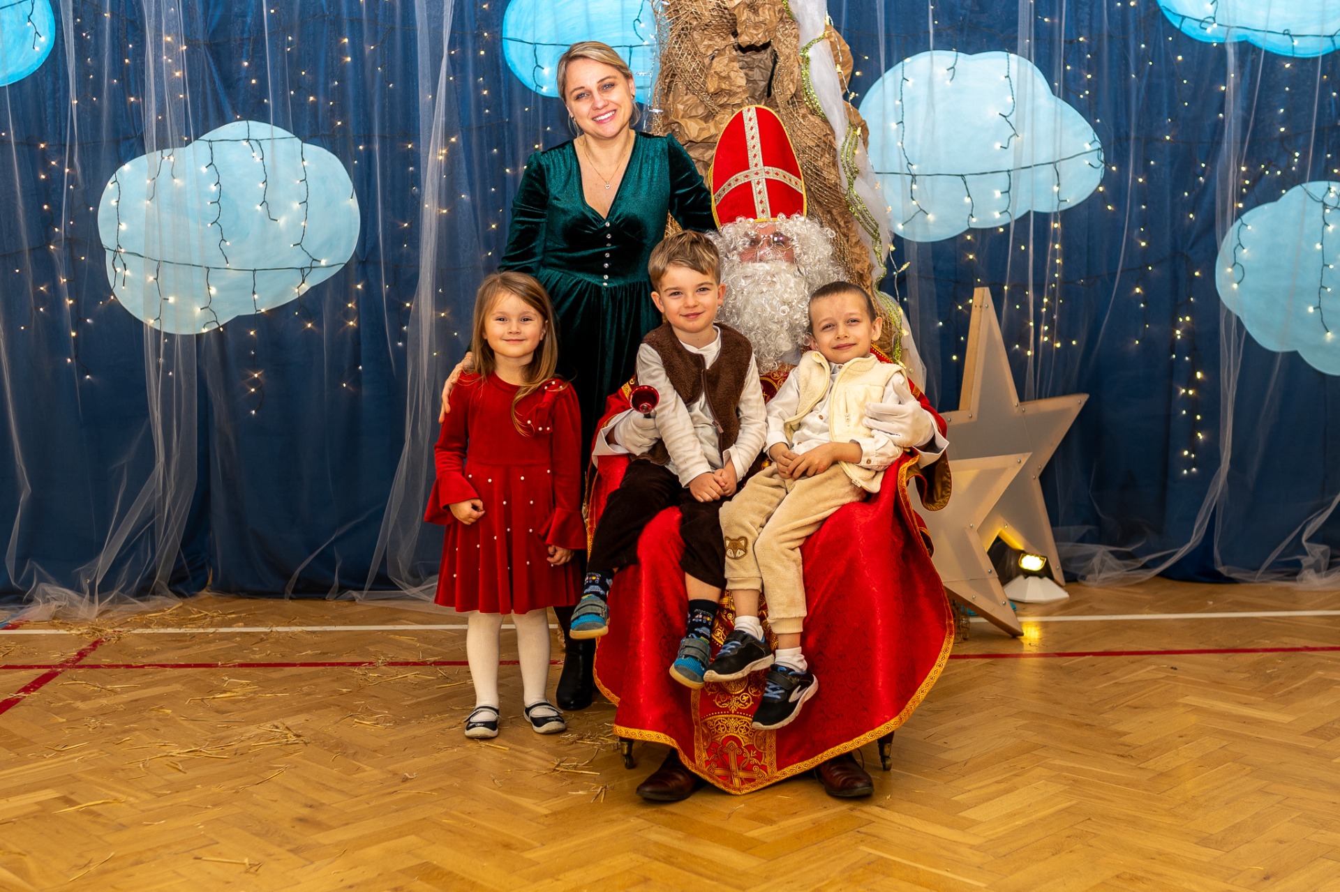 Centralnym punktem wieczoru były Jasełka, przygotowane przez szkolną grupę teatralną. Młodzi aktorzy zaprezentowali się z ogromnym zaangażowaniem, a ich występ został nagrodzony gromkimi brawami. Niezwykłe wrażenie zrobił również szkolny chór, który wspaniale wykonał nieznane wcześniej widowni pastorałki, wprowadzając wszystkich w nastrojowy, refleksyjny klimat. Podczas wieczoru każda klasa oraz przedszkolaki zaprezentowali przygotowaną kolędę lub pastorałkę. Różnorodność wykonań, dziecięca radość i szczerość występów sprawiły, że na widowni nie brakowało wzruszeń i uśmiechów. Ogromną atrakcją dla najmłodszych – i nie tylko – była wizyta prawdziwego św. Mikołaja. W specjalnie przygotowanym pokoju św. Mikołaja każdy mógł zrobić pamiątkowe zdjęcie: indywidualne, rodzinne lub z przyjaciółmi. Nie zabrakło także czegoś dla ciała – rodzice przygotowali pyszny, świąteczny poczęstunek, który dopełnił ten wyjątkowy wieczór i sprzyjał dalszym rozmowom oraz wspólnemu spędzaniu czasu.