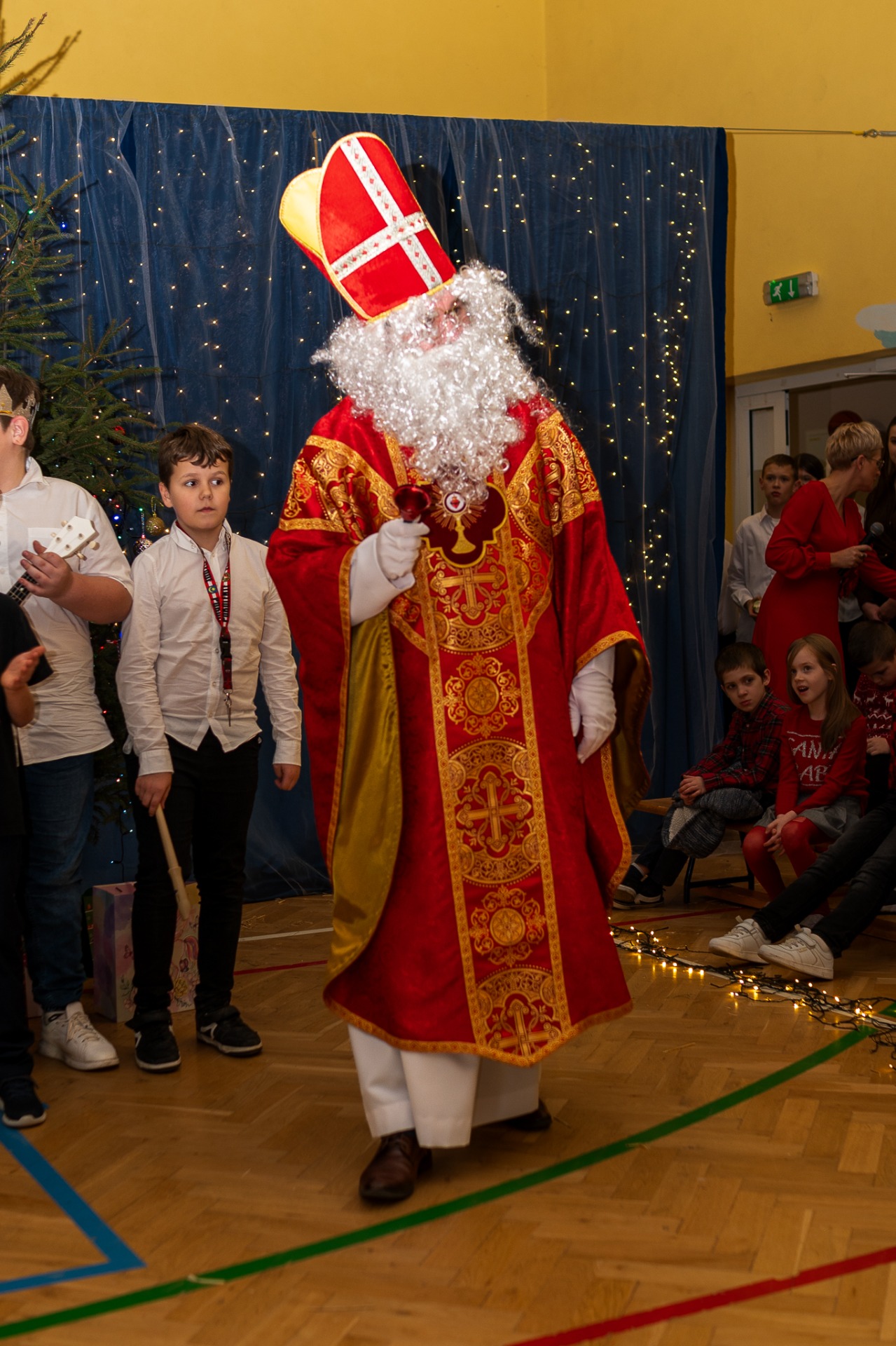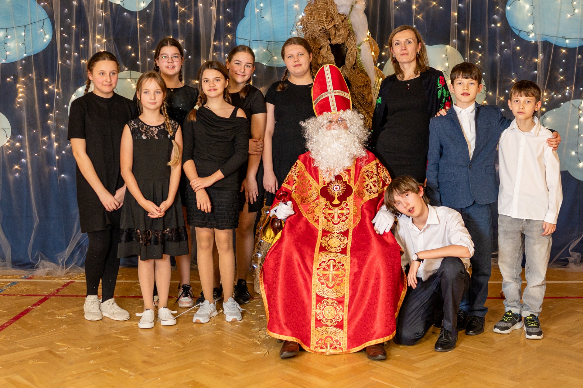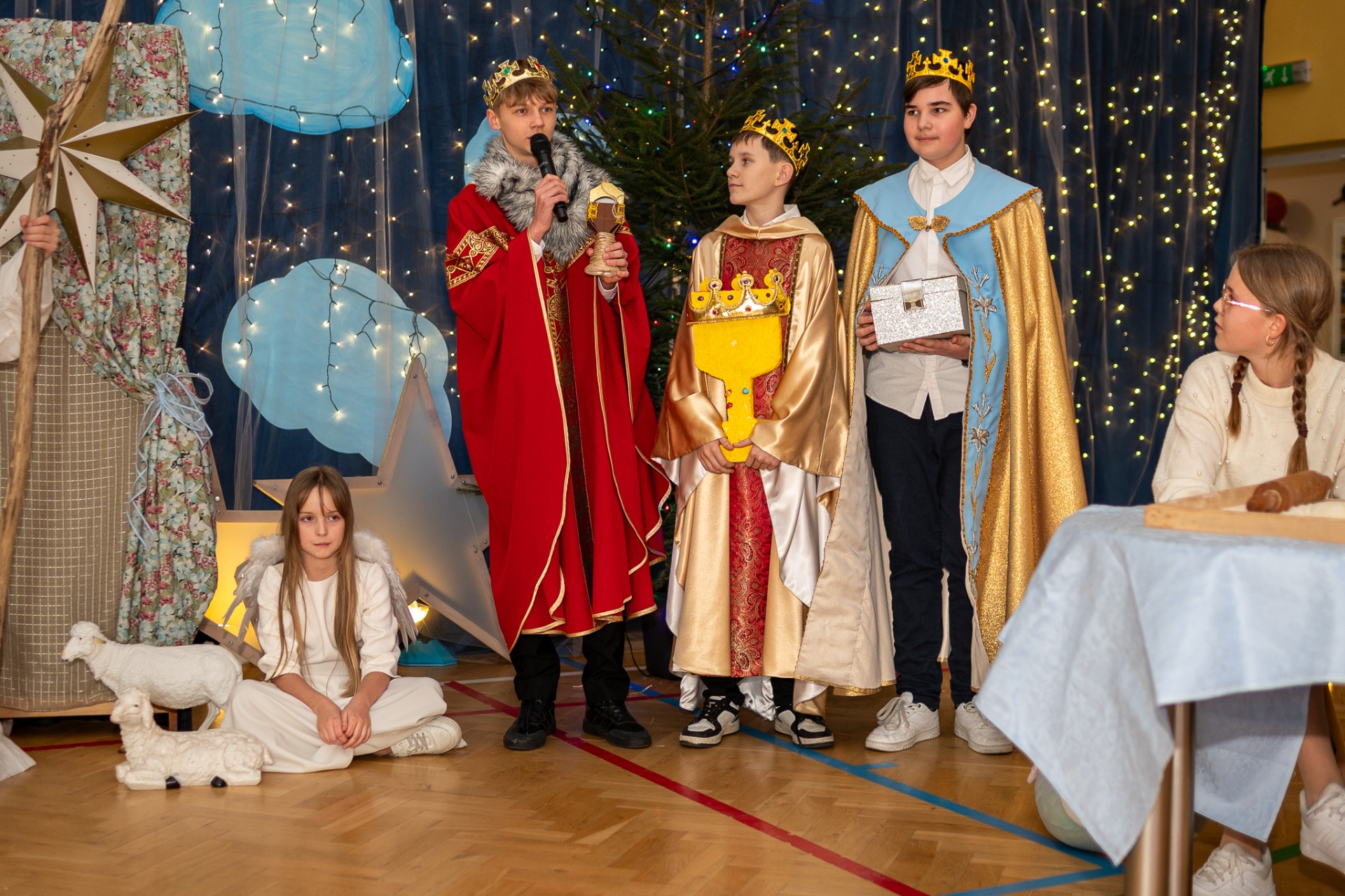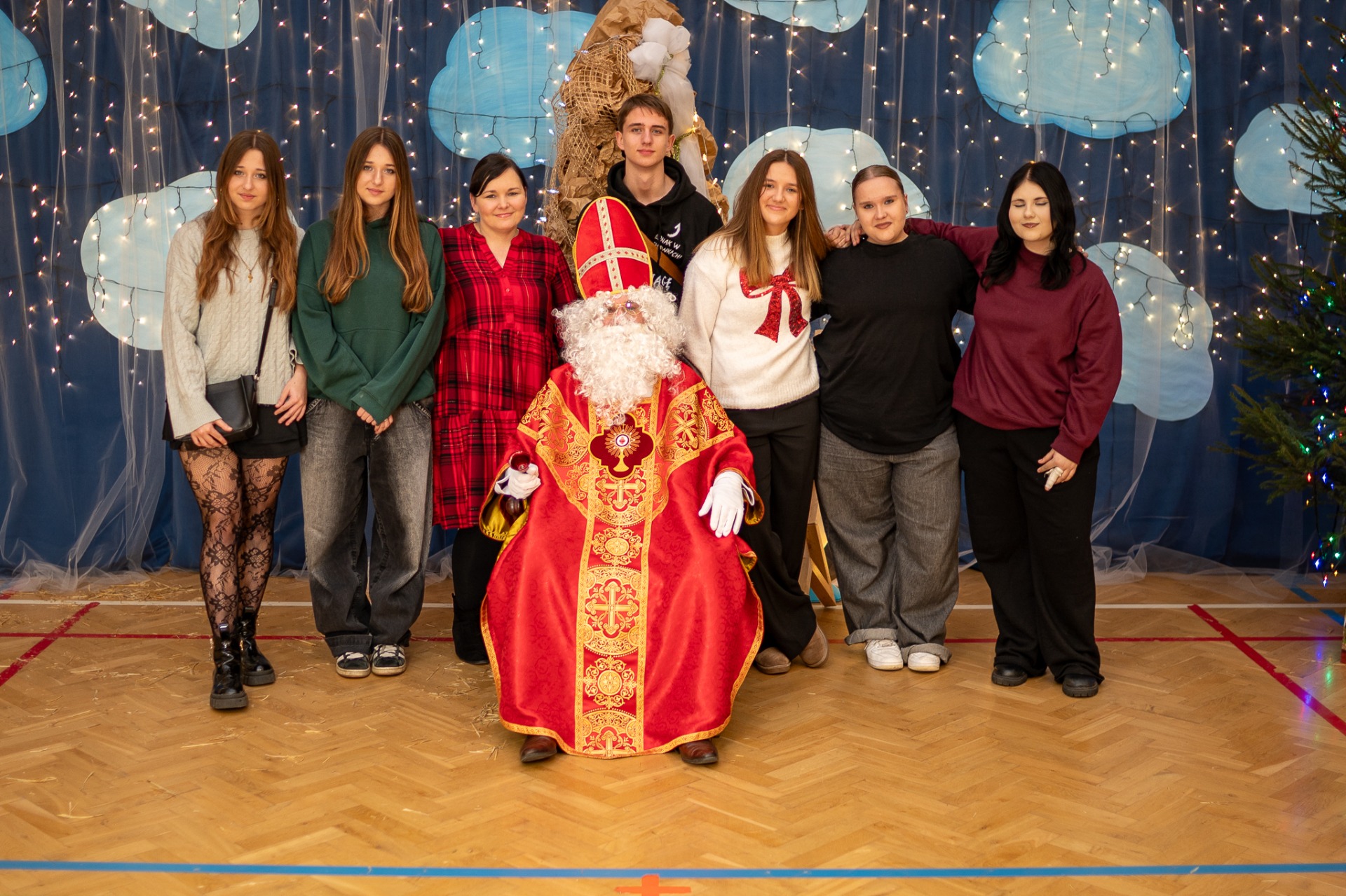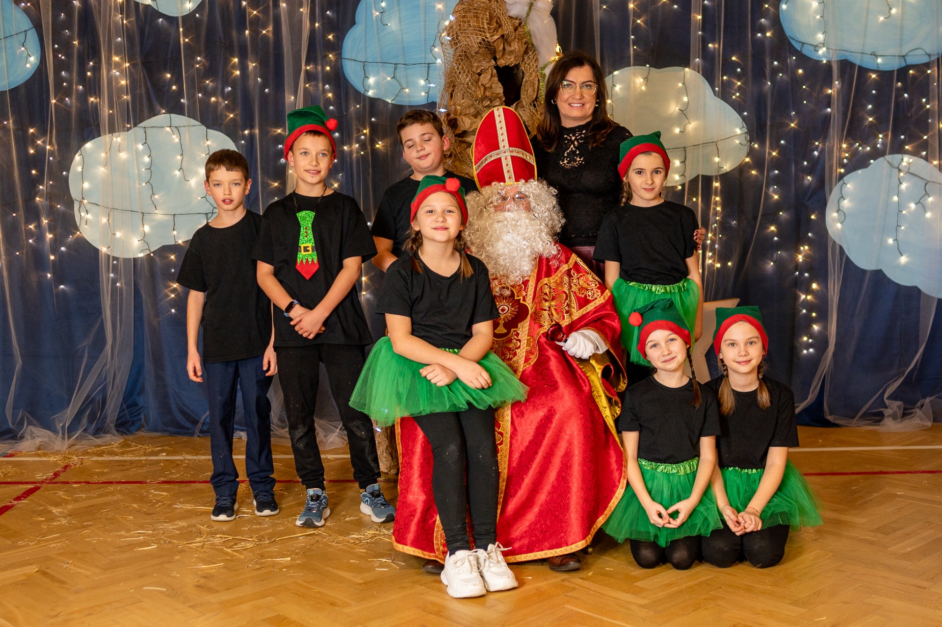 Centralnym punktem wieczoru były Jasełka, przygotowane przez szkolną grupę teatralną. Młodzi aktorzy zaprezentowali się z ogromnym zaangażowaniem, a ich występ został nagrodzony gromkimi brawami. Niezwykłe wrażenie zrobił również szkolny chór, który wspaniale wykonał nieznane wcześniej widowni pastorałki, wprowadzając wszystkich w nastrojowy, refleksyjny klimat. Podczas wieczoru każda klasa oraz przedszkolaki zaprezentowali przygotowaną kolędę lub pastorałkę. Różnorodność wykonań, dziecięca radość i szczerość występów sprawiły, że na widowni nie brakowało wzruszeń i uśmiechów. Ogromną atrakcją dla najmłodszych – i nie tylko – była wizyta prawdziwego św. Mikołaja. W specjalnie przygotowanym pokoju św. Mikołaja każdy mógł zrobić pamiątkowe zdjęcie: indywidualne, rodzinne lub z przyjaciółmi. Nie zabrakło także czegoś dla ciała – rodzice przygotowali pyszny, świąteczny poczęstunek, który dopełnił ten wyjątkowy wieczór i sprzyjał dalszym rozmowom oraz wspólnemu spędzaniu czasu.