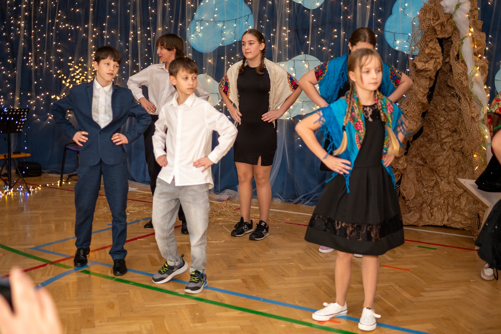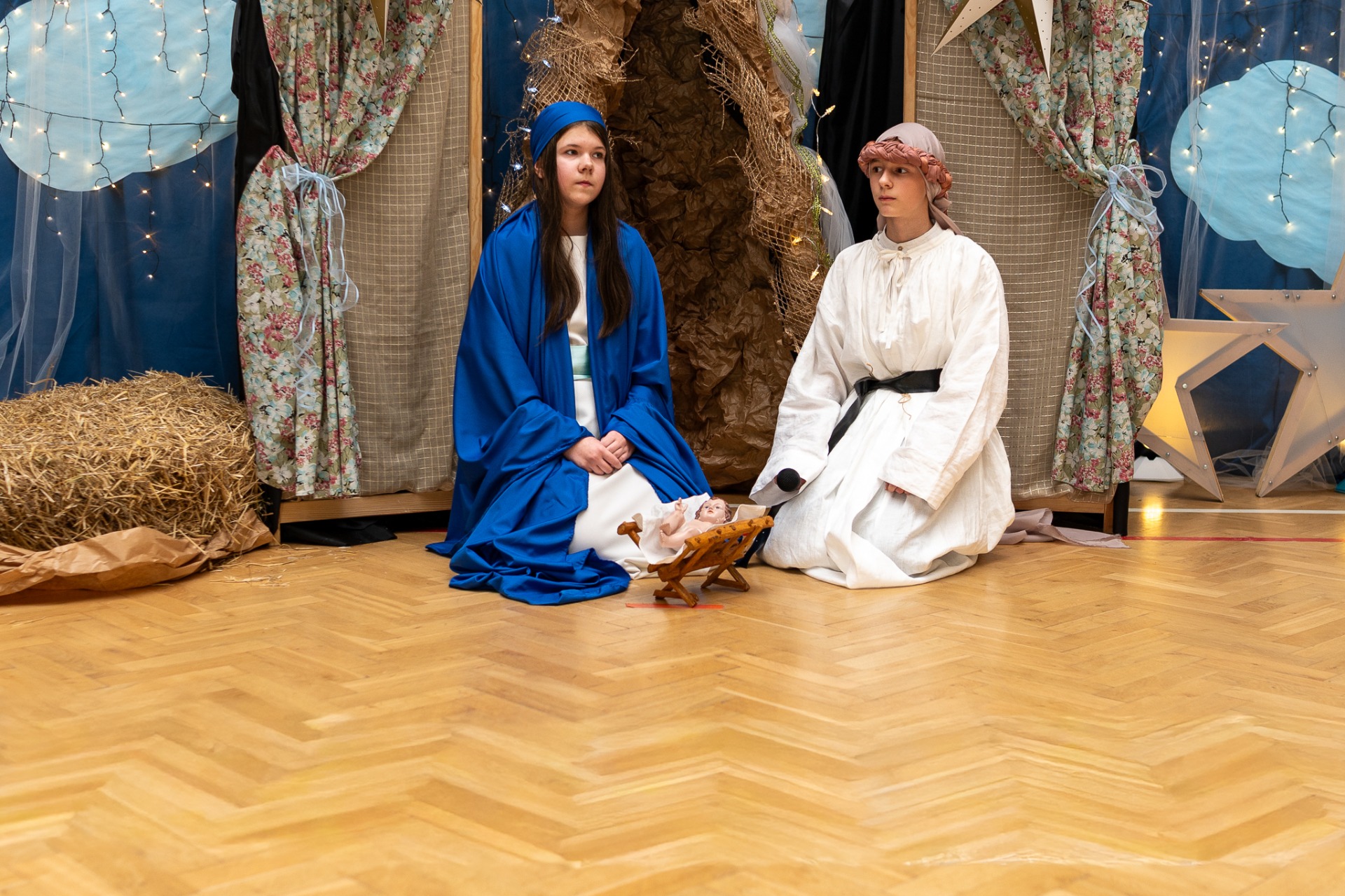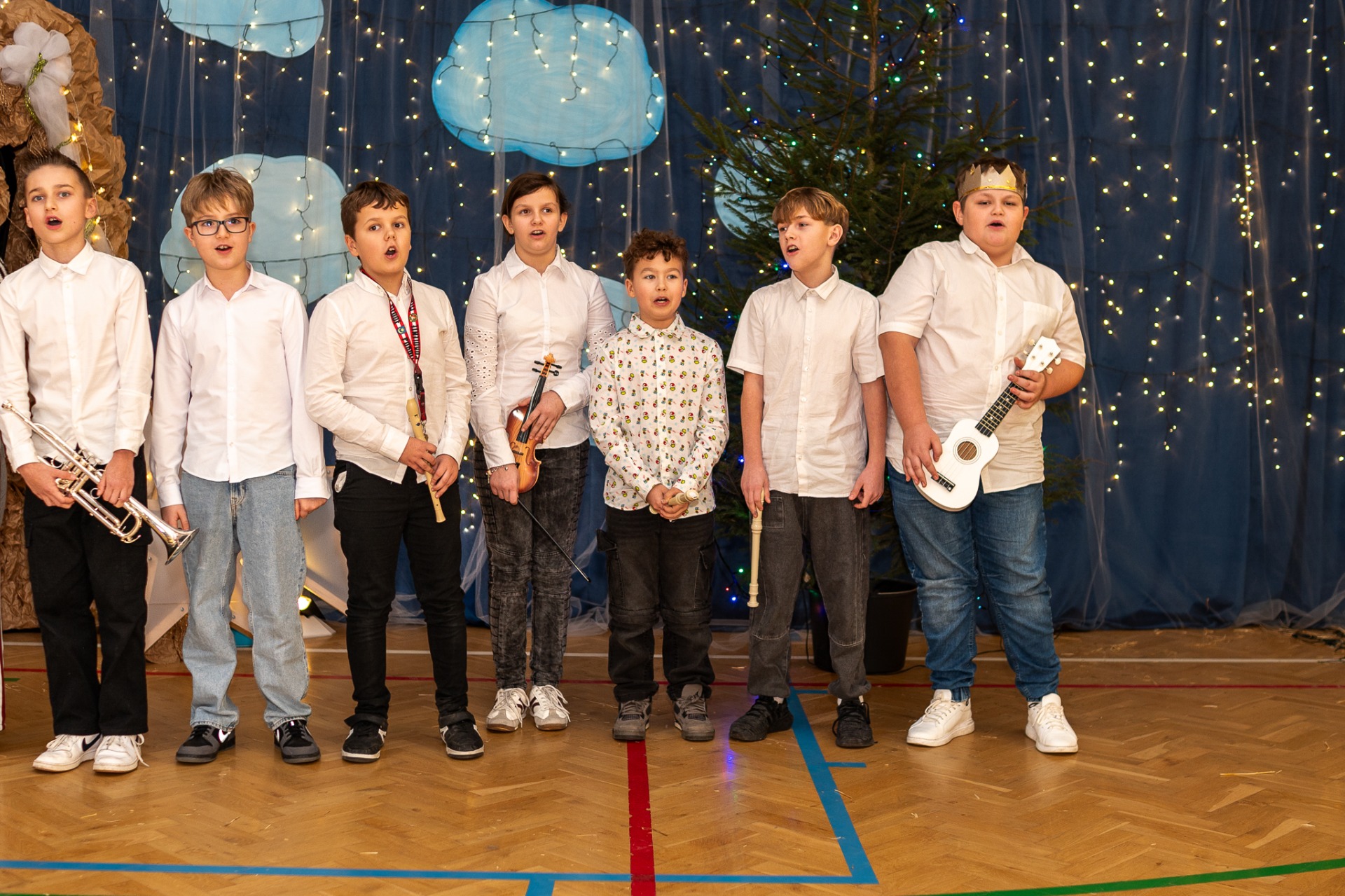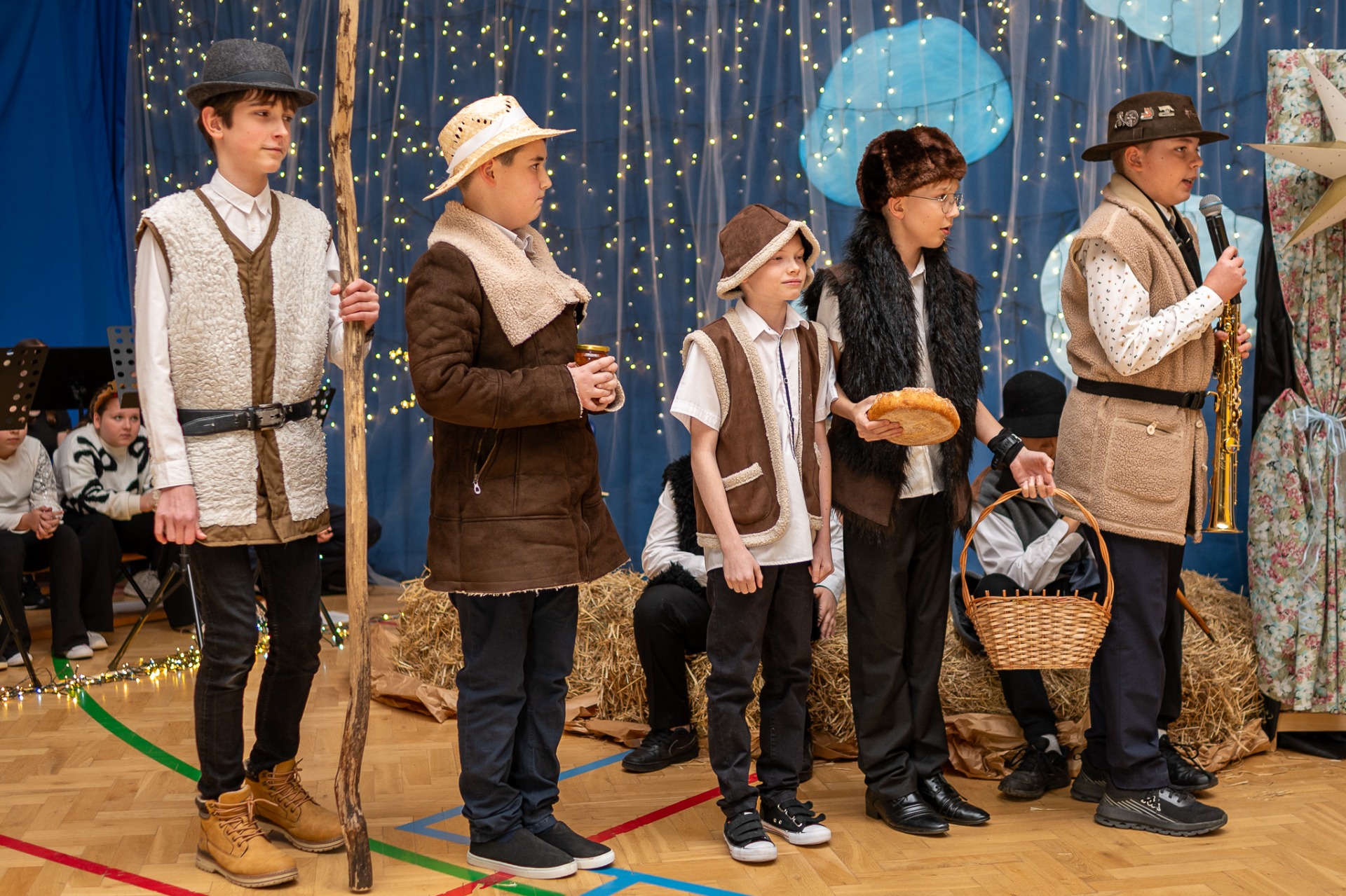 Centralnym punktem wieczoru były Jasełka, przygotowane przez szkolną grupę teatralną. Młodzi aktorzy zaprezentowali się z ogromnym zaangażowaniem, a ich występ został nagrodzony gromkimi brawami. Niezwykłe wrażenie zrobił również szkolny chór, który wspaniale wykonał nieznane wcześniej widowni pastorałki, wprowadzając wszystkich w nastrojowy, refleksyjny klimat. Podczas wieczoru każda klasa oraz przedszkolaki zaprezentowali przygotowaną kolędę lub pastorałkę. Różnorodność wykonań, dziecięca radość i szczerość występów sprawiły, że na widowni nie brakowało wzruszeń i uśmiechów. Ogromną atrakcją dla najmłodszych – i nie tylko – była wizyta prawdziwego św. Mikołaja. W specjalnie przygotowanym pokoju św. Mikołaja każdy mógł zrobić pamiątkowe zdjęcie: indywidualne, rodzinne lub z przyjaciółmi. Nie zabrakło także czegoś dla ciała – rodzice przygotowali pyszny, świąteczny poczęstunek, który dopełnił ten wyjątkowy wieczór i sprzyjał dalszym rozmowom oraz wspólnemu spędzaniu czasu.