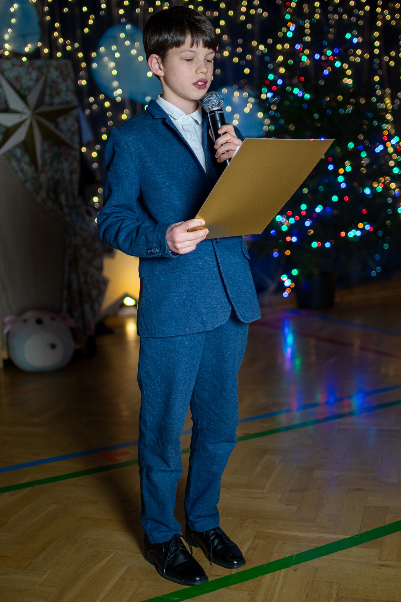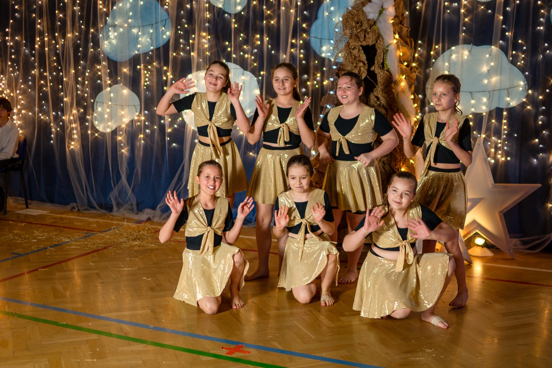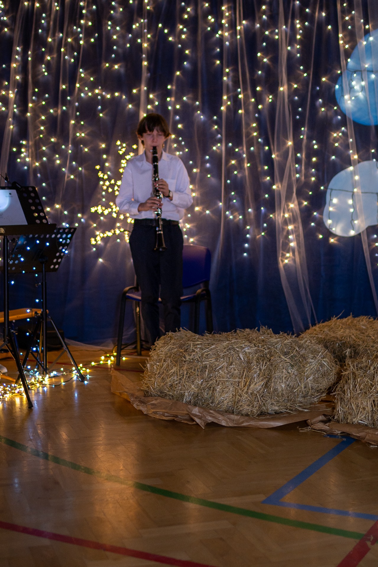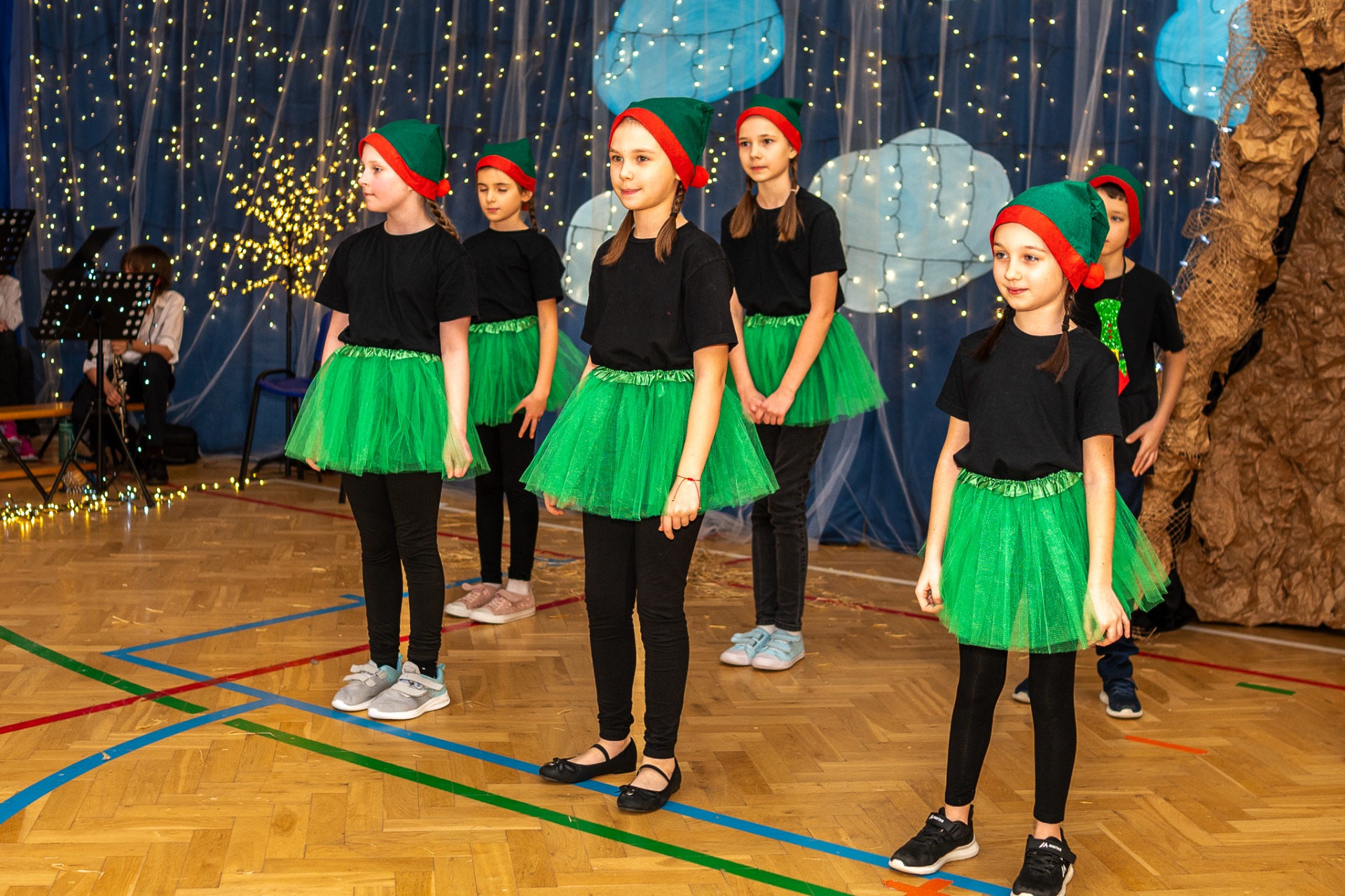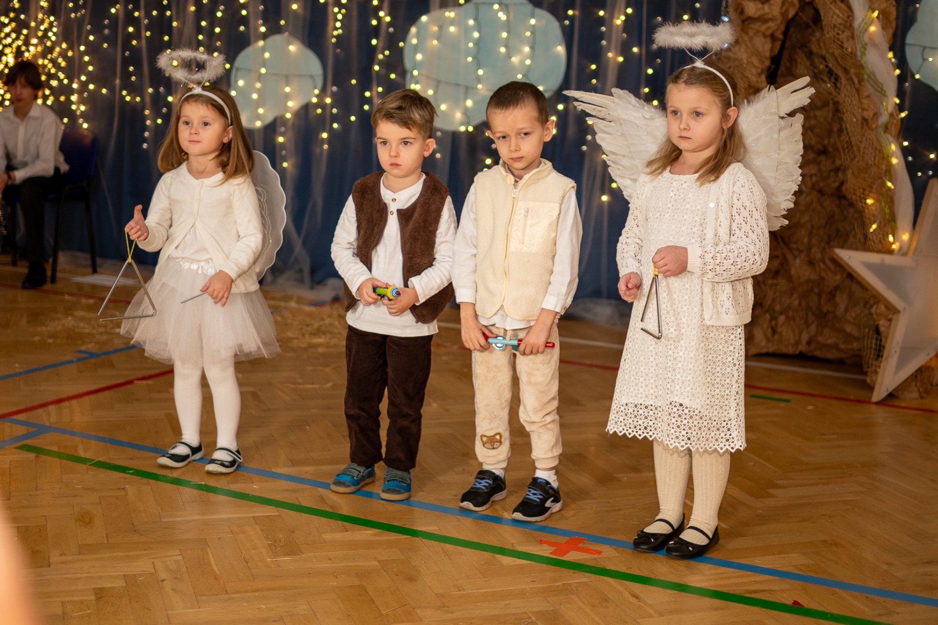 Centralnym punktem wieczoru były Jasełka, przygotowane przez szkolną grupę teatralną. Młodzi aktorzy zaprezentowali się z ogromnym zaangażowaniem, a ich występ został nagrodzony gromkimi brawami. Niezwykłe wrażenie zrobił również szkolny chór, który wspaniale wykonał nieznane wcześniej widowni pastorałki, wprowadzając wszystkich w nastrojowy, refleksyjny klimat. Podczas wieczoru każda klasa oraz przedszkolaki zaprezentowali przygotowaną kolędę lub pastorałkę. Różnorodność wykonań, dziecięca radość i szczerość występów sprawiły, że na widowni nie brakowało wzruszeń i uśmiechów. Ogromną atrakcją dla najmłodszych – i nie tylko – była wizyta prawdziwego św. Mikołaja. W specjalnie przygotowanym pokoju św. Mikołaja każdy mógł zrobić pamiątkowe zdjęcie: indywidualne, rodzinne lub z przyjaciółmi. Nie zabrakło także czegoś dla ciała – rodzice przygotowali pyszny, świąteczny poczęstunek, który dopełnił ten wyjątkowy wieczór i sprzyjał dalszym rozmowom oraz wspólnemu spędzaniu czasu.