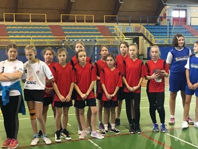 Piłka ręczna. Drużyna dziewcząt pierwsza...